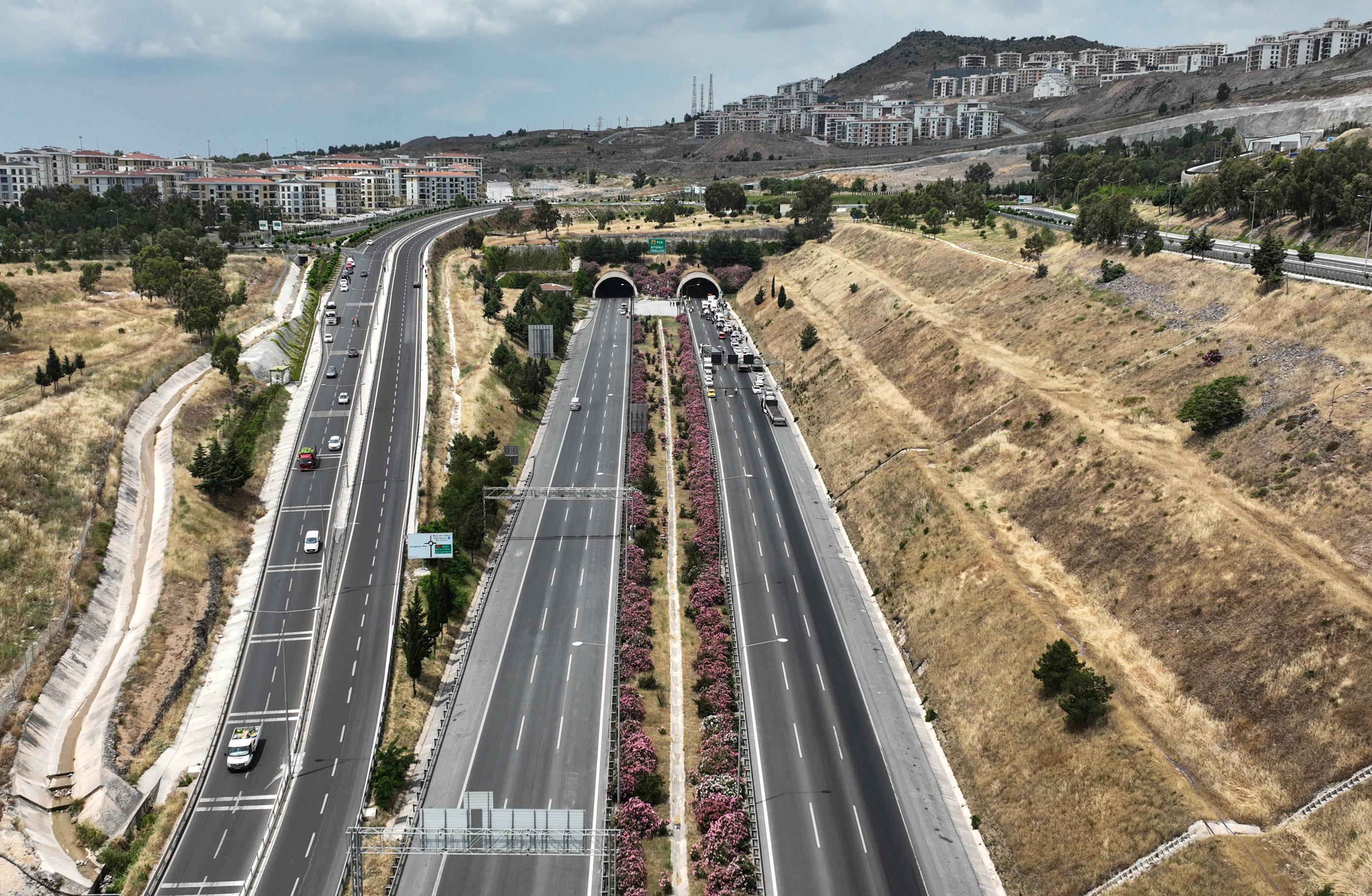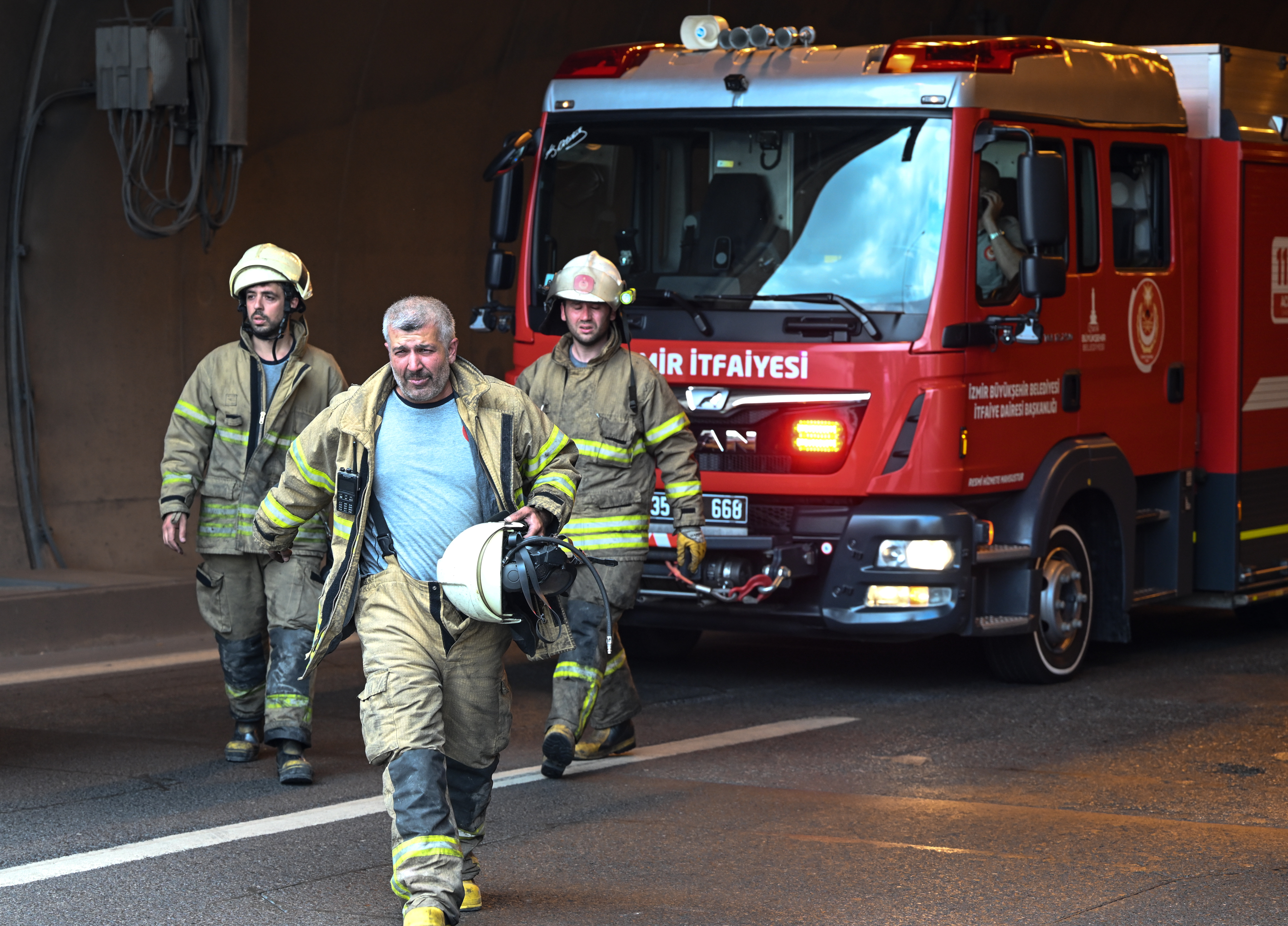 İzmir'de Bayraklı Tüneli'nde seyir halindeki TIR'da yangın çıktı. Söndürme çalışmaları sürerken, tünel çift yönlü araç trafiğine kapatıldı.