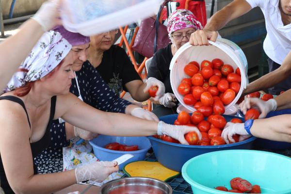 Menemen'in Çukurköy ve Foça'nın Gerenköy mahallelerinden temin edilen 1, 5 ton domates, kooperatif üyelerince kaynatılıp, 2 bin kavanoza doldurulmaya başlandı. 80 üyenin katıldığı ilk mesaide, az sayıdaki erkek üyelerle birlikte taşıma, kesme, kıyma makinesinden geçirme, kaynatma, kavanozlara doldurma ve vakumlama işlemleri el birliğiyle yapıldı. Acıkanlar karınlarını yine gönüllü kadın üyelerin yaptığı pişi ve çay ile doyurdu.