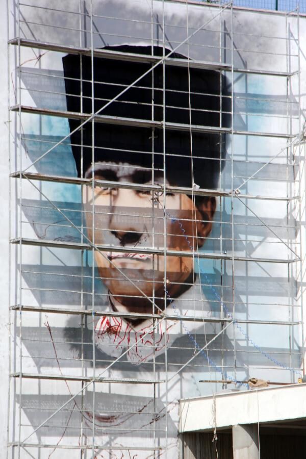 Yapımı süren dev portre kentte yaşayan vatandaşlar tarafından beğeni ile karşılandı.