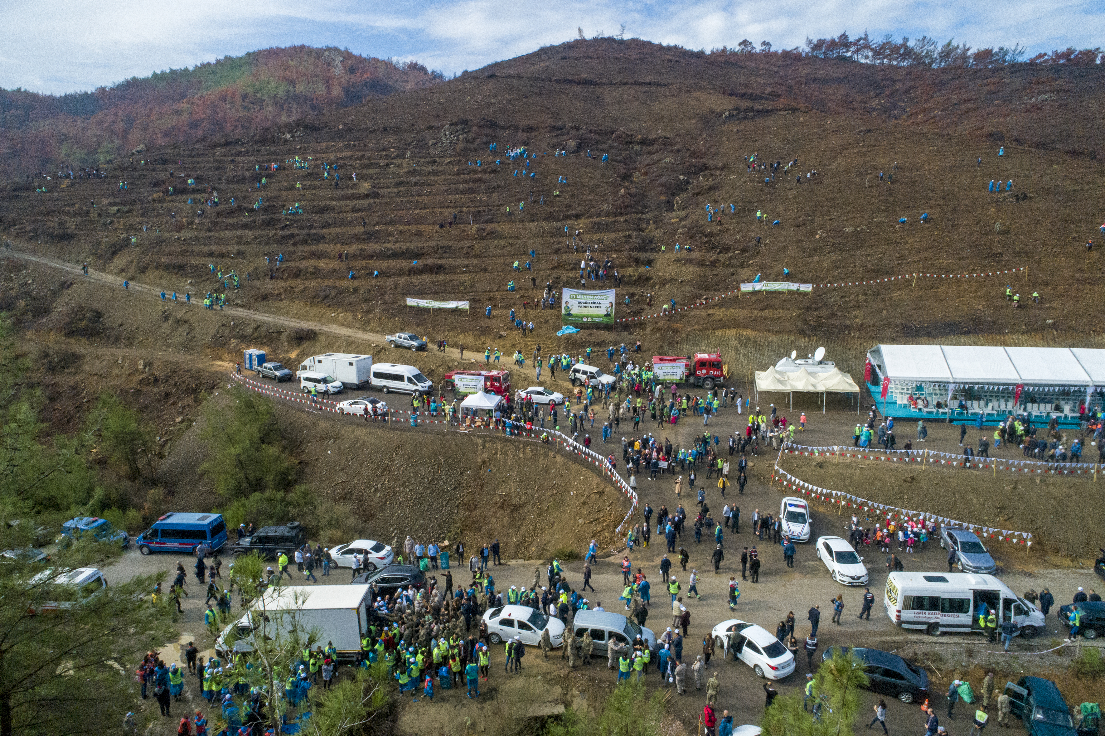 Cumhurbaşkanı Recep Tayyip Erdoğan'ın ilan ettiği "Milli Ağaçlandırma Günü" kapsamında İzmir’in Menderes ilçesine bağlı Orhanlı Mahallesindeki ağaçlandırma sahasında fidan dikme etkinliği gerçekleştirildi.