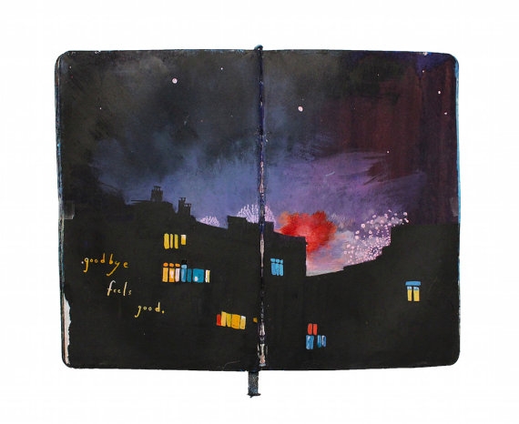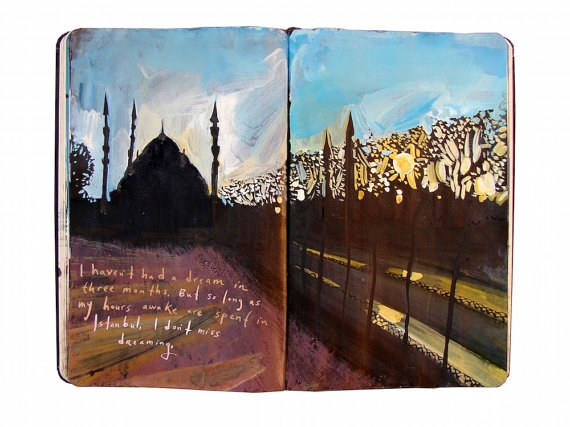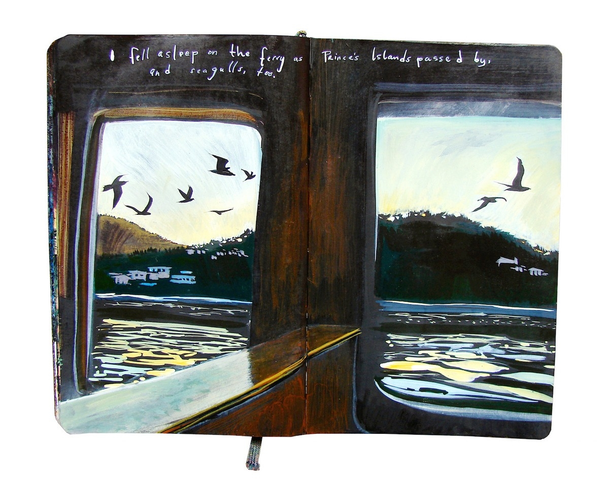 Daha sonra Dunaway seyahat maceralarını not defterlerine akrilik boyayla işlemeye karar verdi ve ortaya harika eserler çıktı.