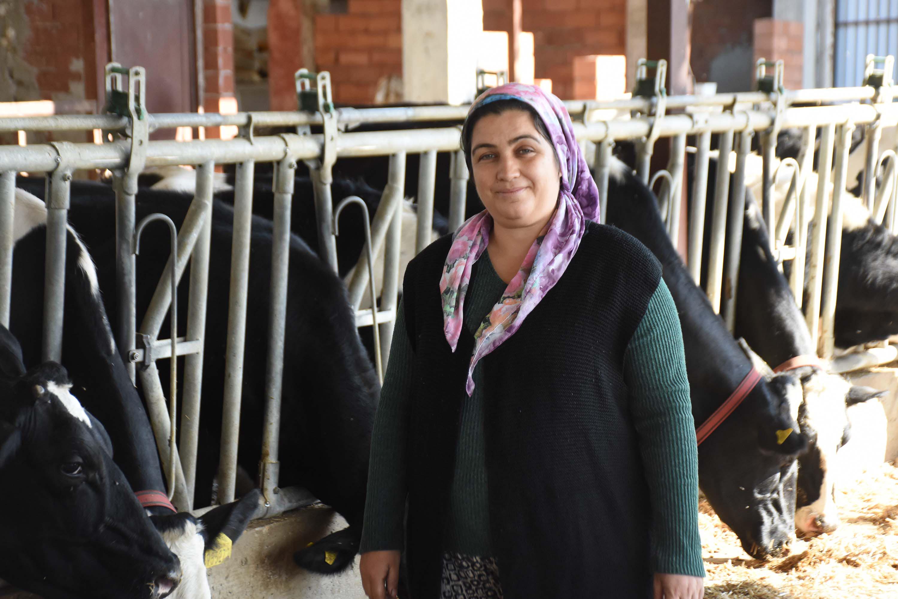 Tire ilçesinde yaşayan Esin Sipahi, 20 yıl önce anneannesinin düğünde hediye ettiği keçiyle hayvancılığa başladı. Keçi sayısı arttıktan sonra sürüsünü satıp, aldığı 10 tane inek ile büyükbaş hayvancılığa ve süt üretimine başlayan Sipahi, 20 yılda 26 sağmal inek, 24 buzağı, 5 gebe düve ile büyükbaş hayvan sayısını 55'e çıkardı.