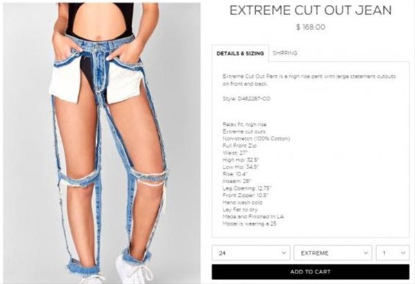 Yırtık kot pantolon modasının yaygınlaşmasıyla moda markaları farklı modeller çıkarmak için birbirleriyle yarışıyor. Ancak Los Angeles merkezli Carmar Denim'in son kot pantolon modeli sosyal medyada alay konusu oldu.