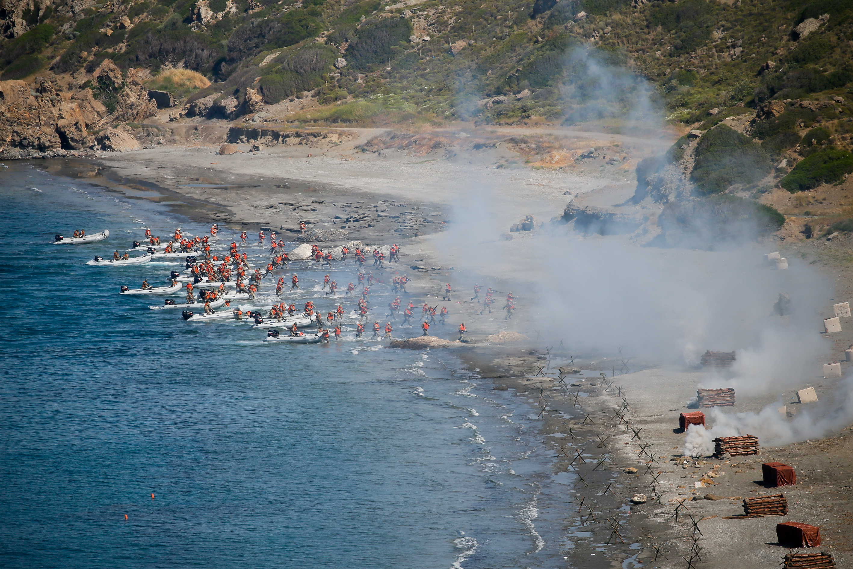 Amfibi aldatma harekatı ve amfibi keşif harekatının ardından taarruz helikopterleri inme bölgesinde tespit edilen hedeflere ateş altına aldı. Hava hücum harekatı sırasında silahlı insansız hava araçları da atış yaptı. Bölgeye inen birlikler düşman tanklarını TOW-2 tanksavar silah ile imha etti.