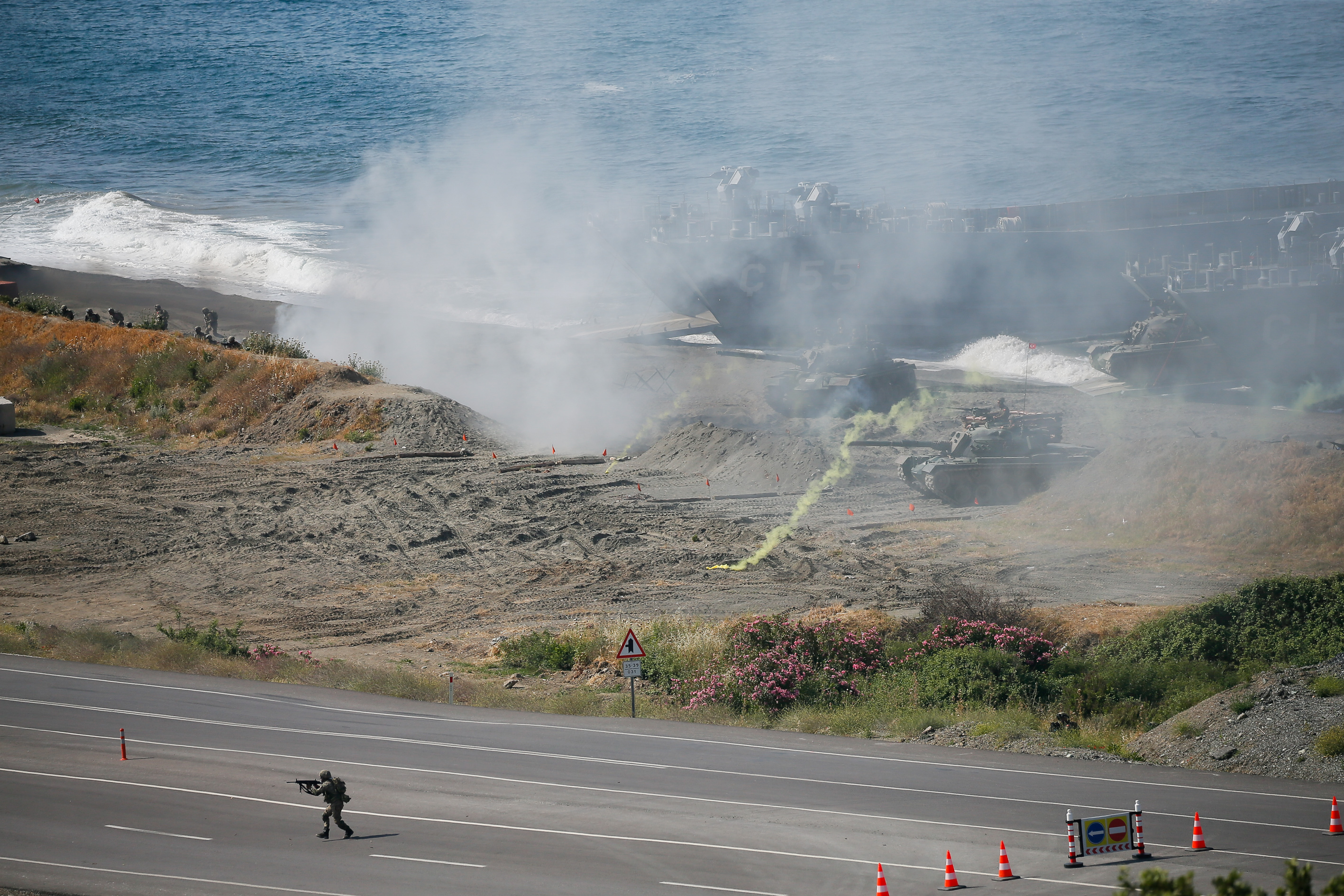 Amfibi yükleme/bindirme yapan askeri unsurların hava taarruzuna maruz kalması ve tespit edilen hava hedeflerinin hava savunma silahları ile ateş altına alınmasının ardında tatbikatın gece faaliyetlerinin yapıldığı birinci icra günü sona erdi.