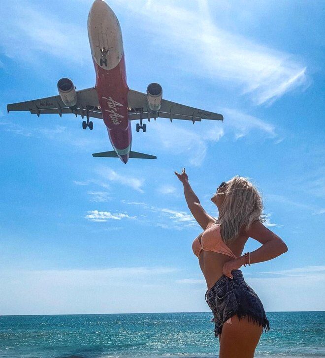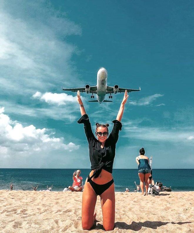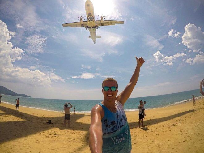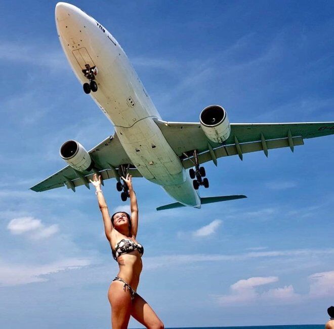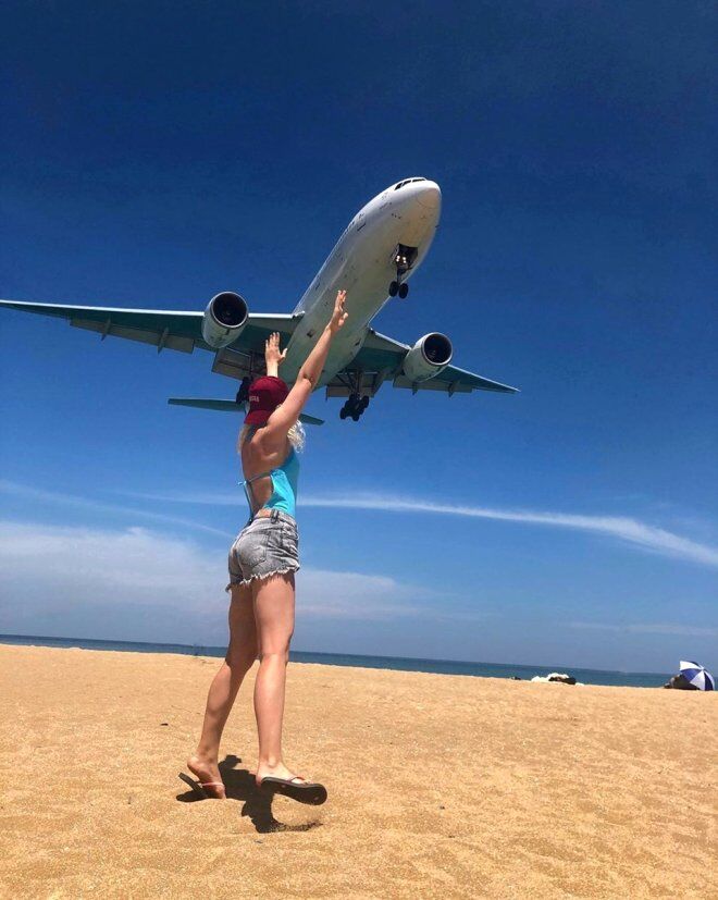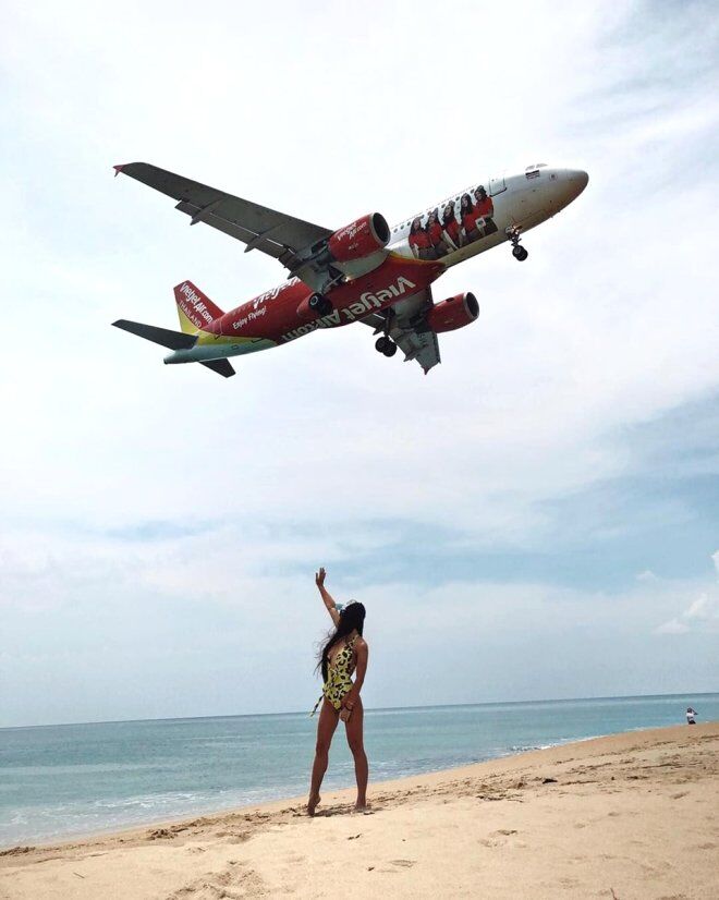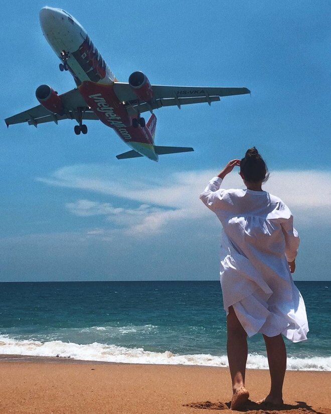 Tayland'da Mai Khao sahiline uğrayan turistlerin en sevdiği aktivitelerden biri de kuşkusuz sahile çok yakın geçen uçaklarla fotoğraf çektirmek.