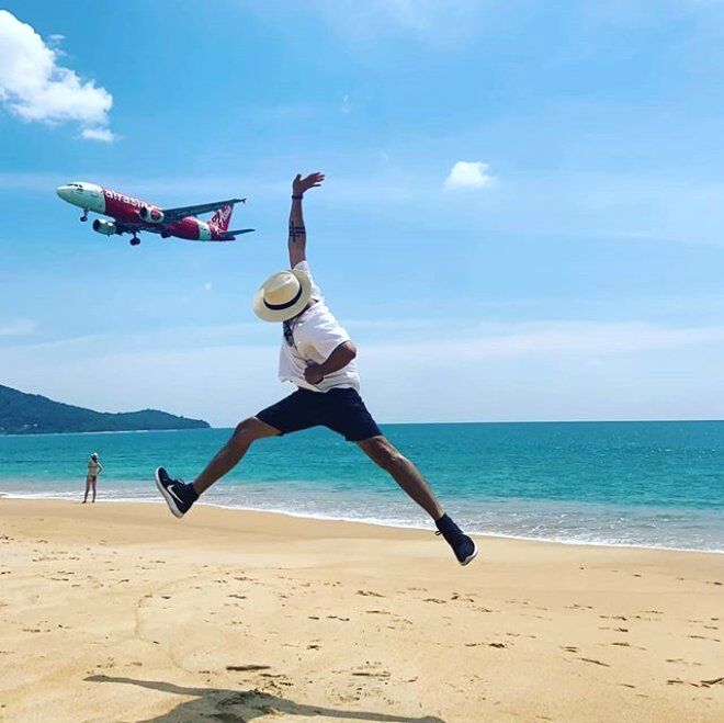 Phuket Uluslararası Havalimanı'na inen uçaklar sahile çok yakın geçerken, turistler bu anları ölümsüzleştirerek sosyal medyada paylaşıyor.