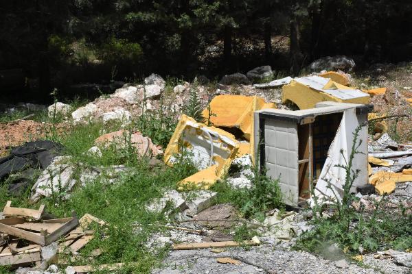 Oksijen deposu olarak bilinen ve vatandaşların piknik yapmak için kullandığı çam ağaçlarıyla örtülü alanda eski koltuktan lastiğe, suntadan tahta kasaya kadar çok sayıda atık dikkat çekti.