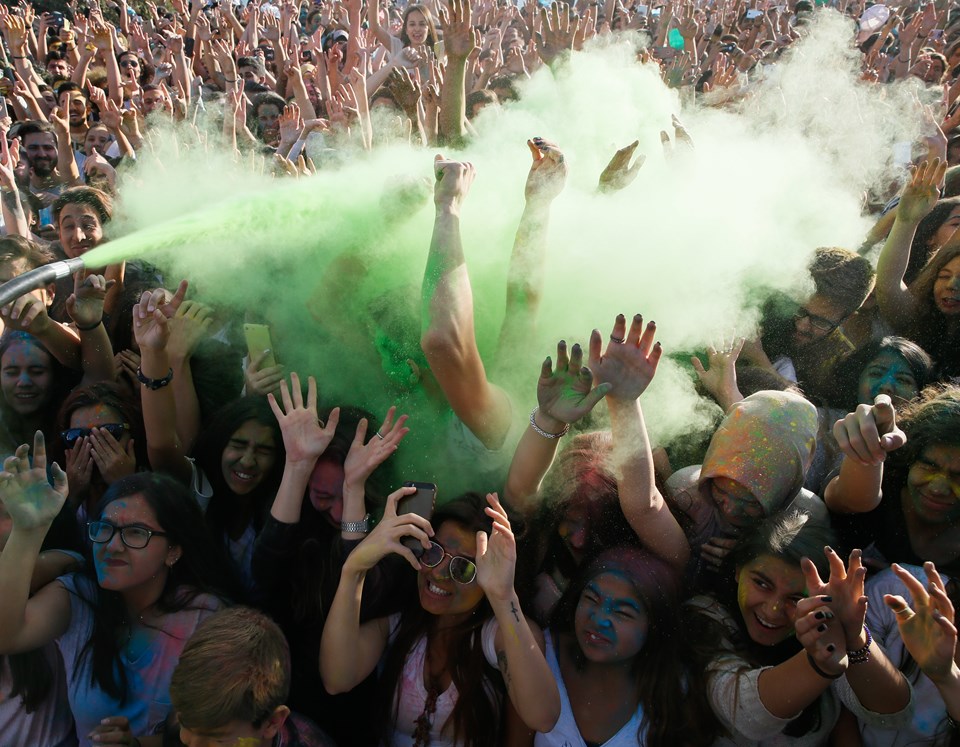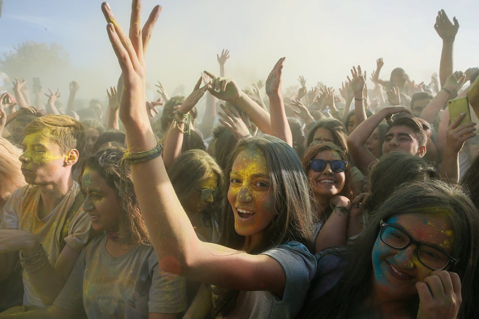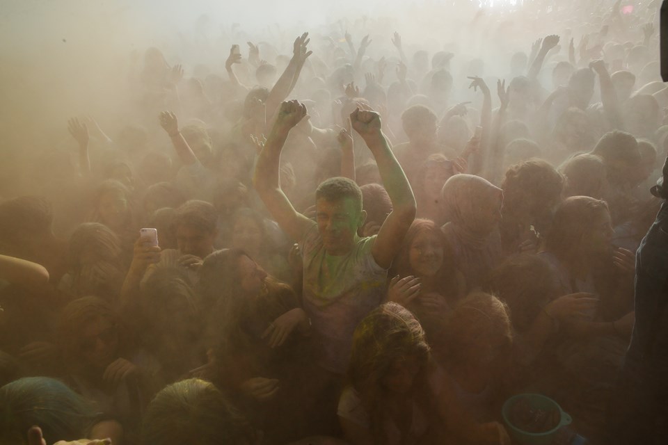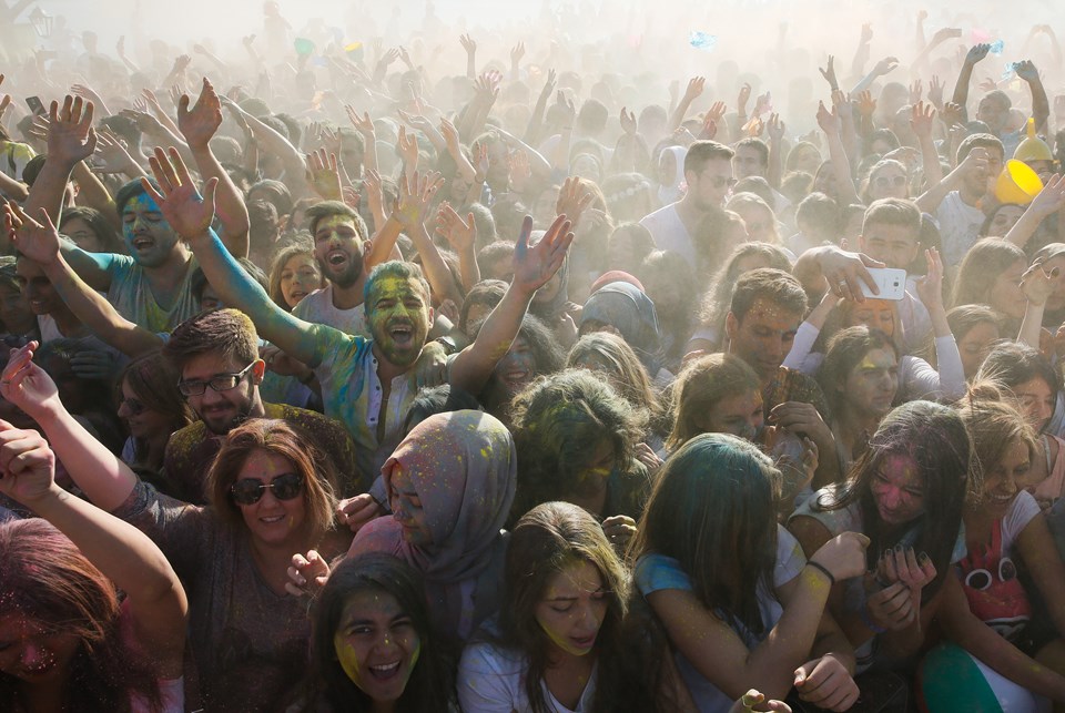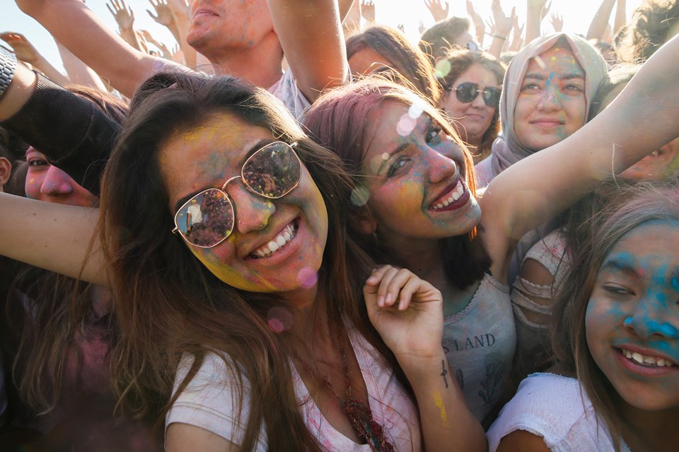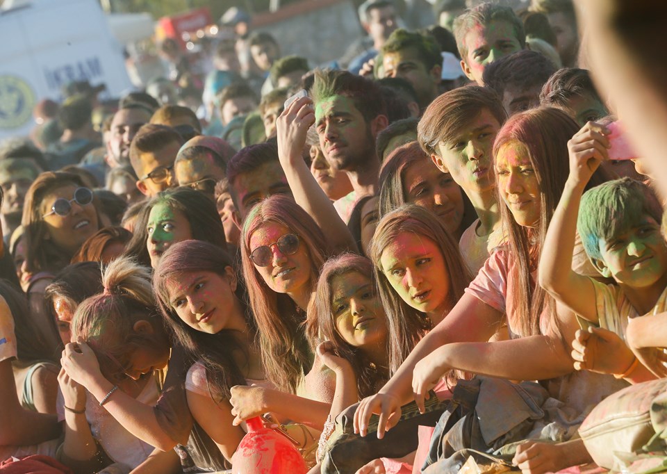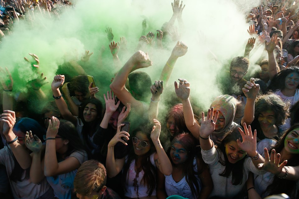 Buca Belediyesi ve bir radyo kanalının iş birliğiyle düzenlenen festivale katılanlar müzik eşliğinde dans ederek, birbirlerine toz boya attı.