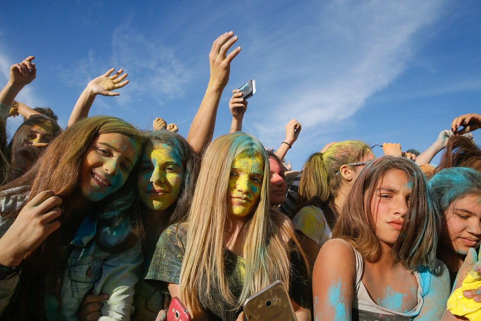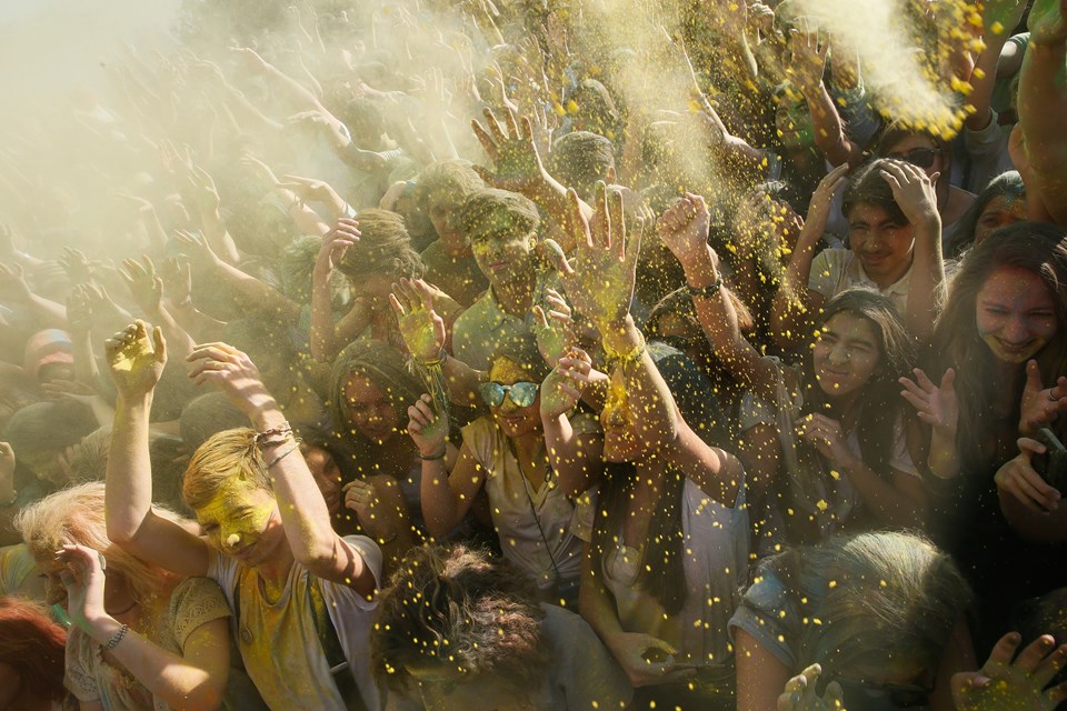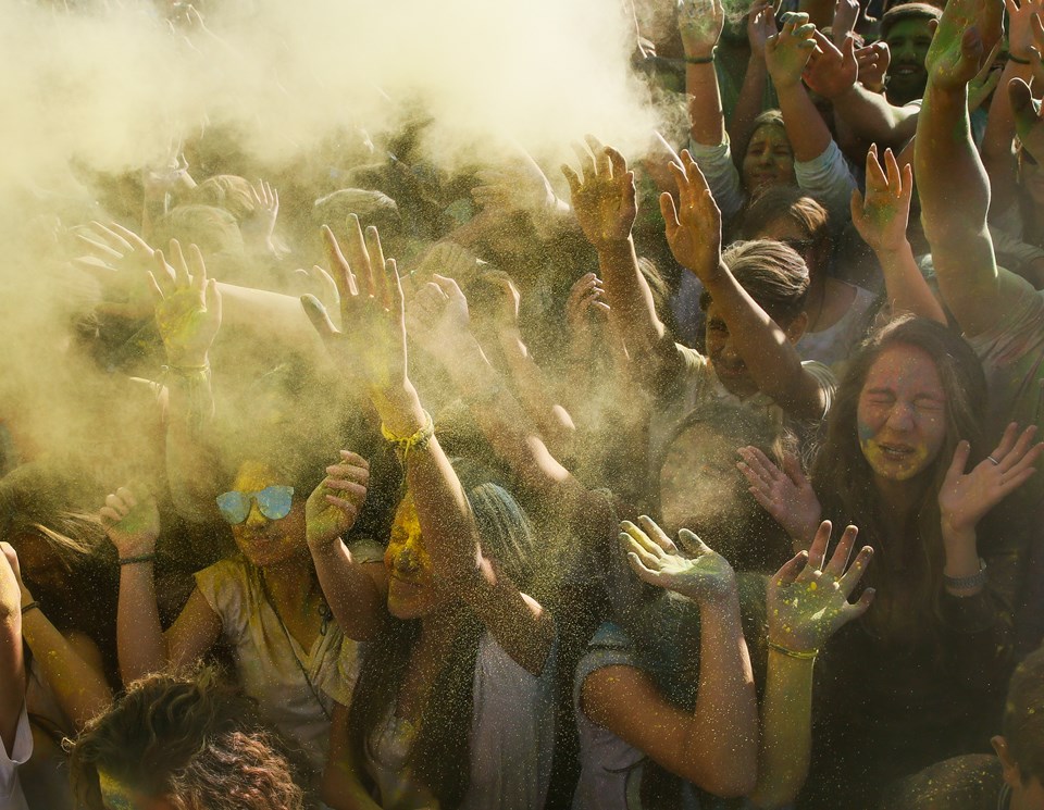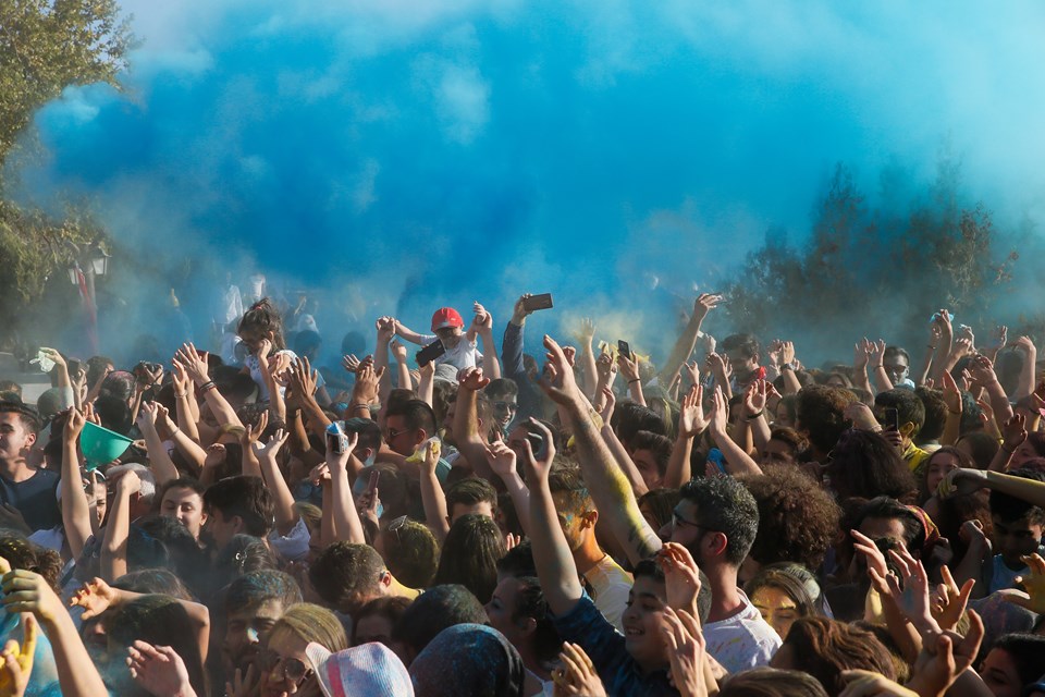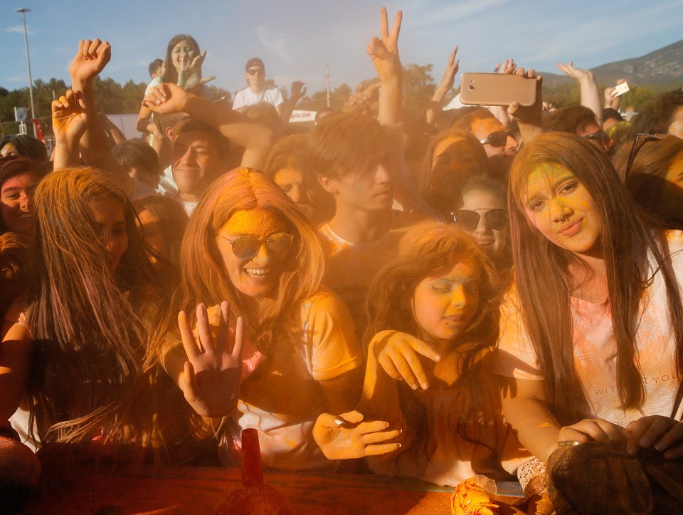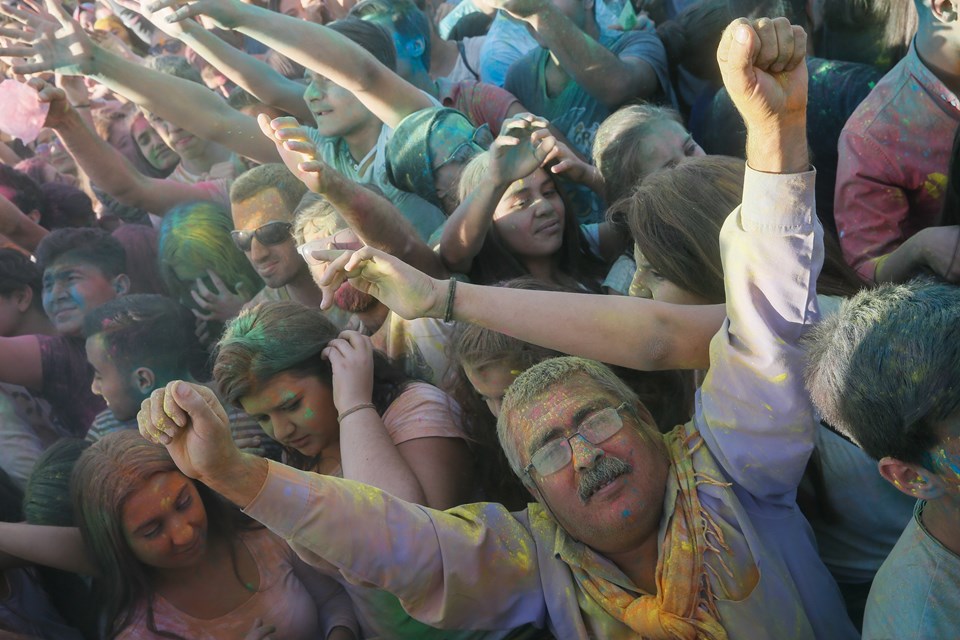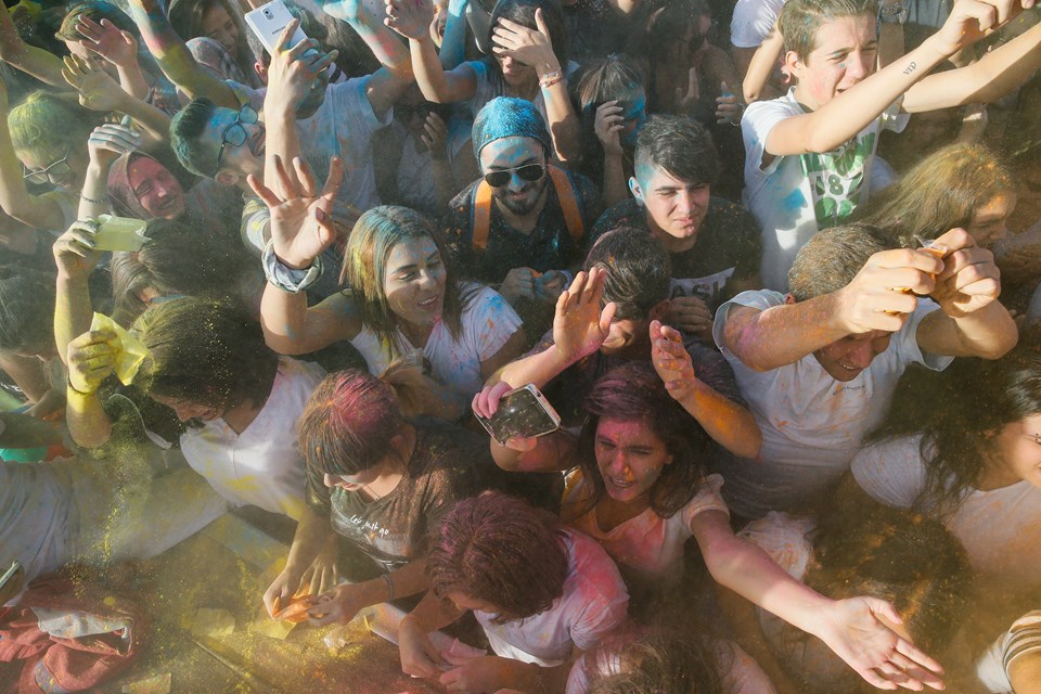 Buca Belediyesi ve bir radyo kanalının iş birliğiyle düzenlenen festivale katılanlar müzik eşliğinde dans ederek, birbirlerine toz boya attı.