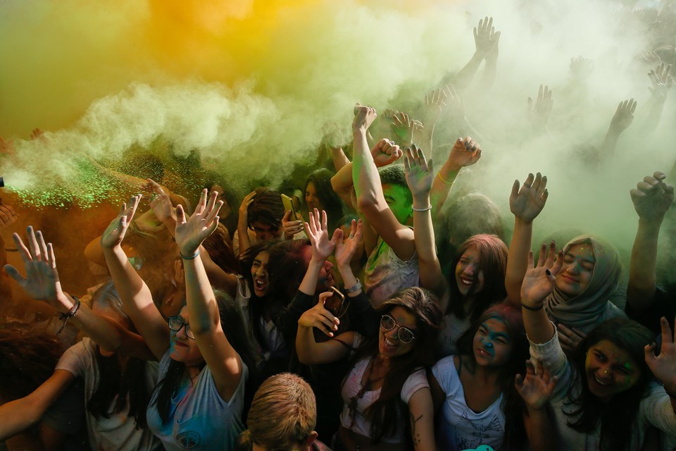 Konuşmaların ardından müzik eşliğinde eğlenen katılımcılar, birbirlerine gökkuşağının renklerini temsil eden toz boyalar serpti.