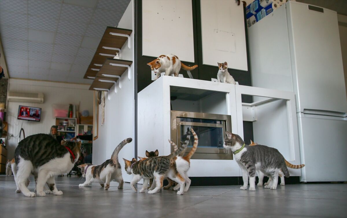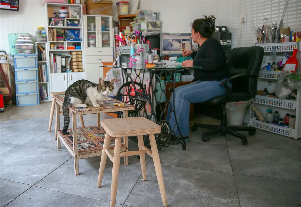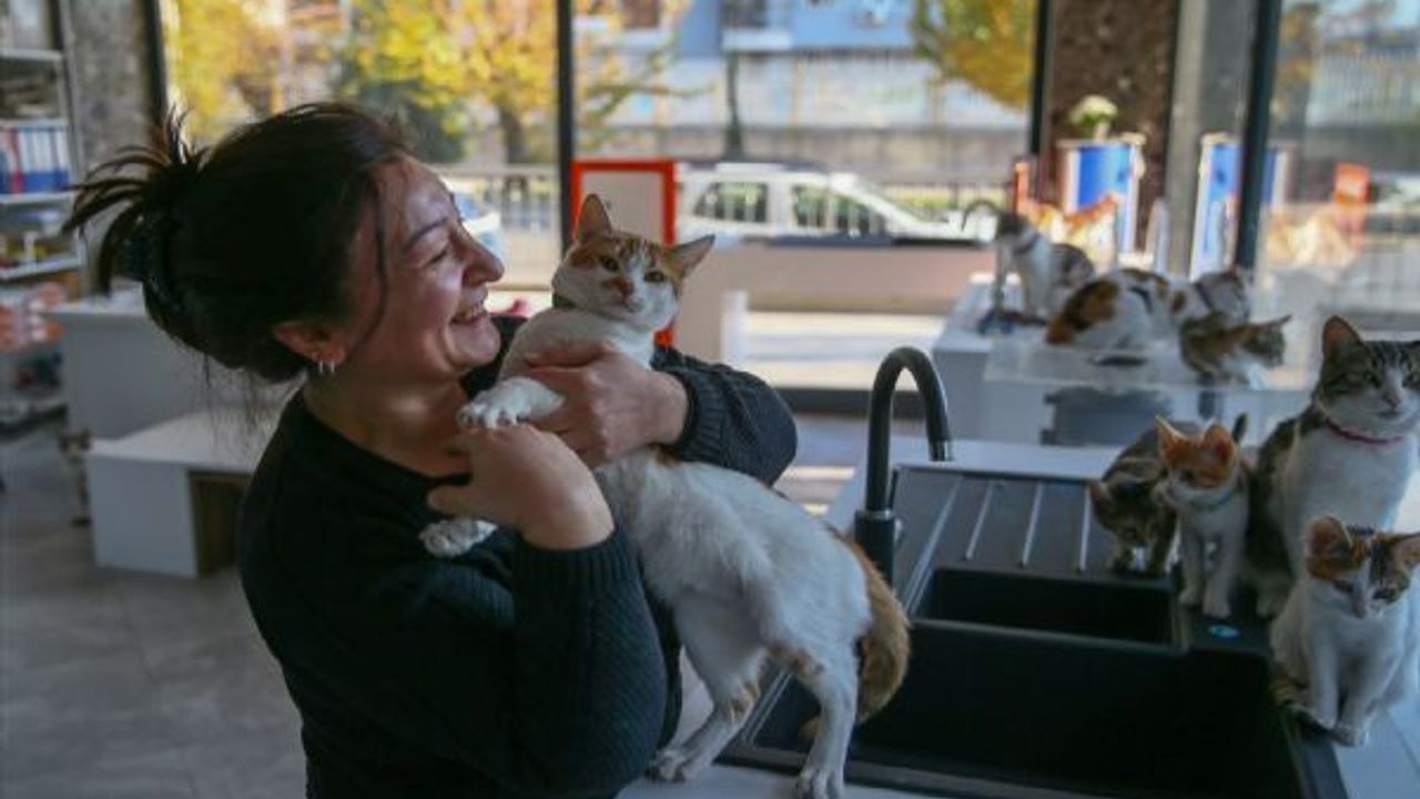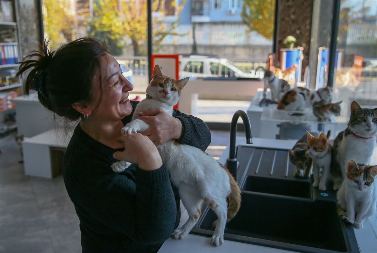 İzmir'in Buca ilçesinde lavabo, batarya gibi ürünleri satan Fatma ve Murat Yıldırım çifti, sahiplendikleri 12 kediye mağazalarında bakıyor.