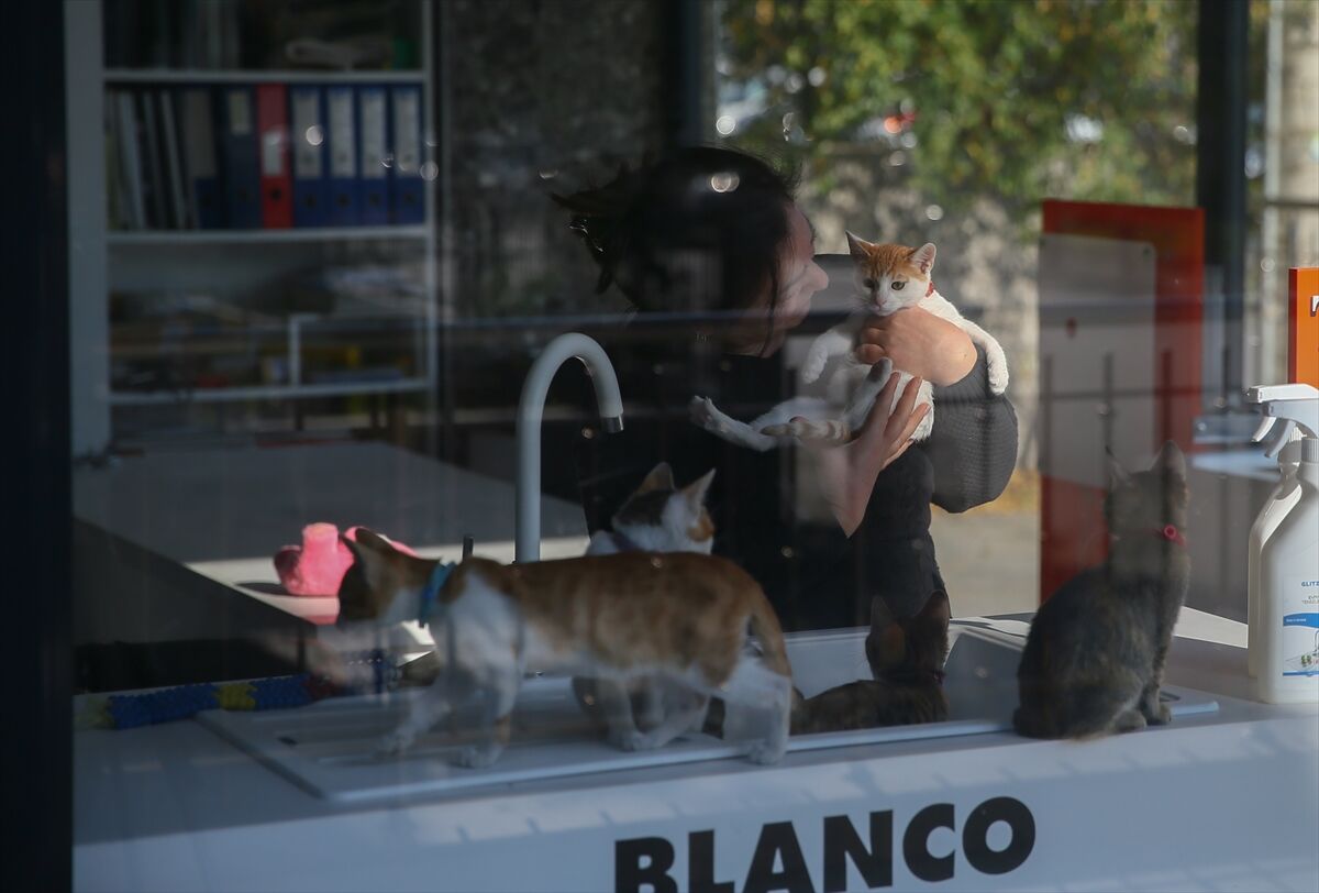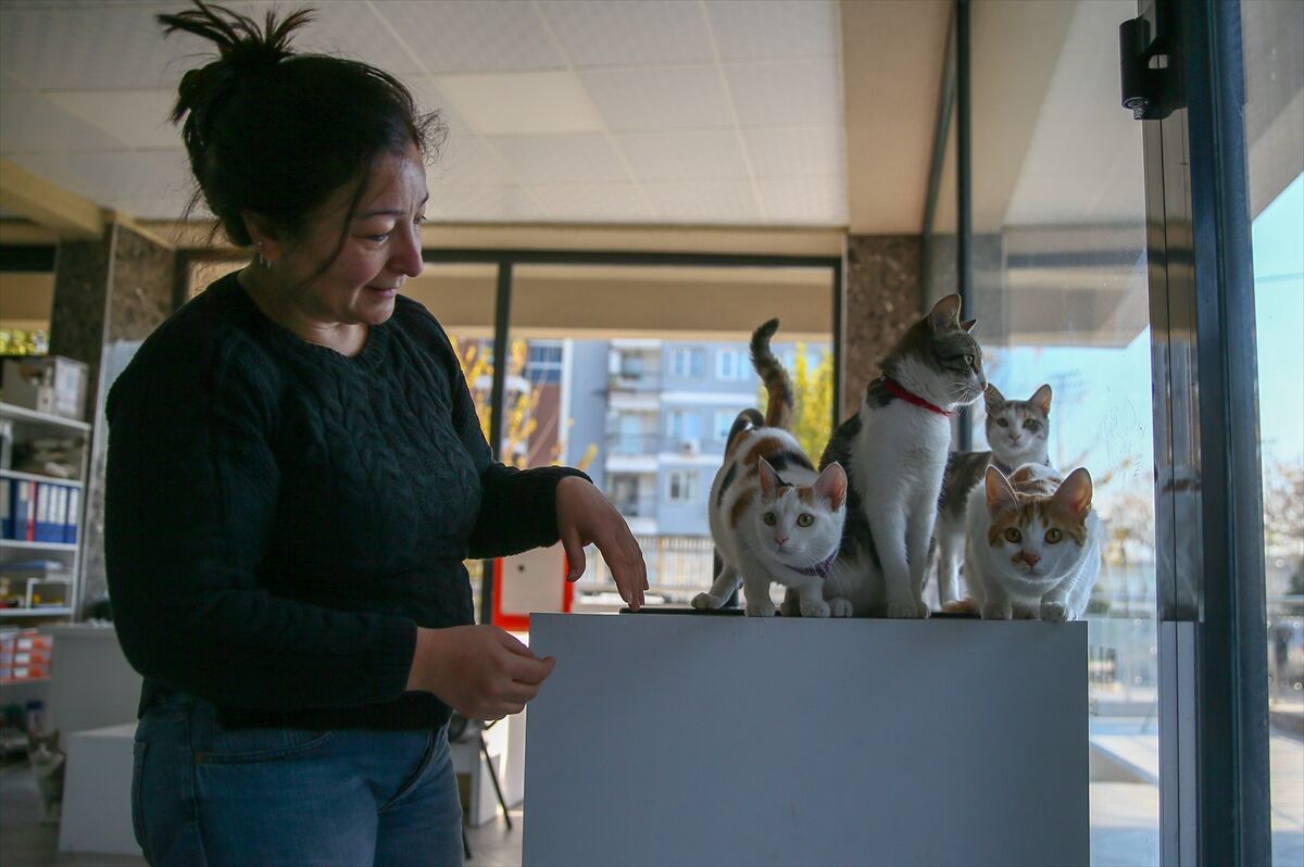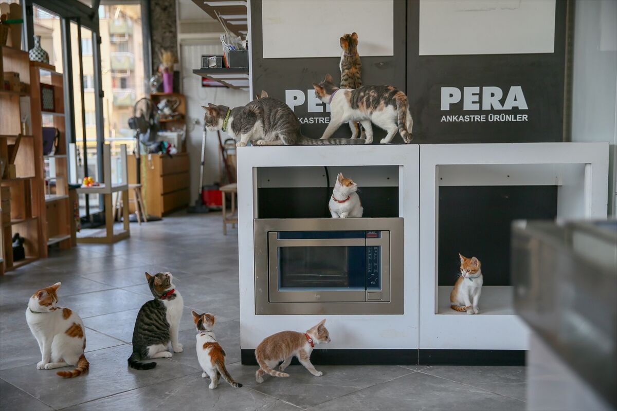 Dükkanın camekanından görülebilen kedilerin hayvanseverlerin ilgisini çektiğini anlatan Yıldırım, şöyle konuştu: