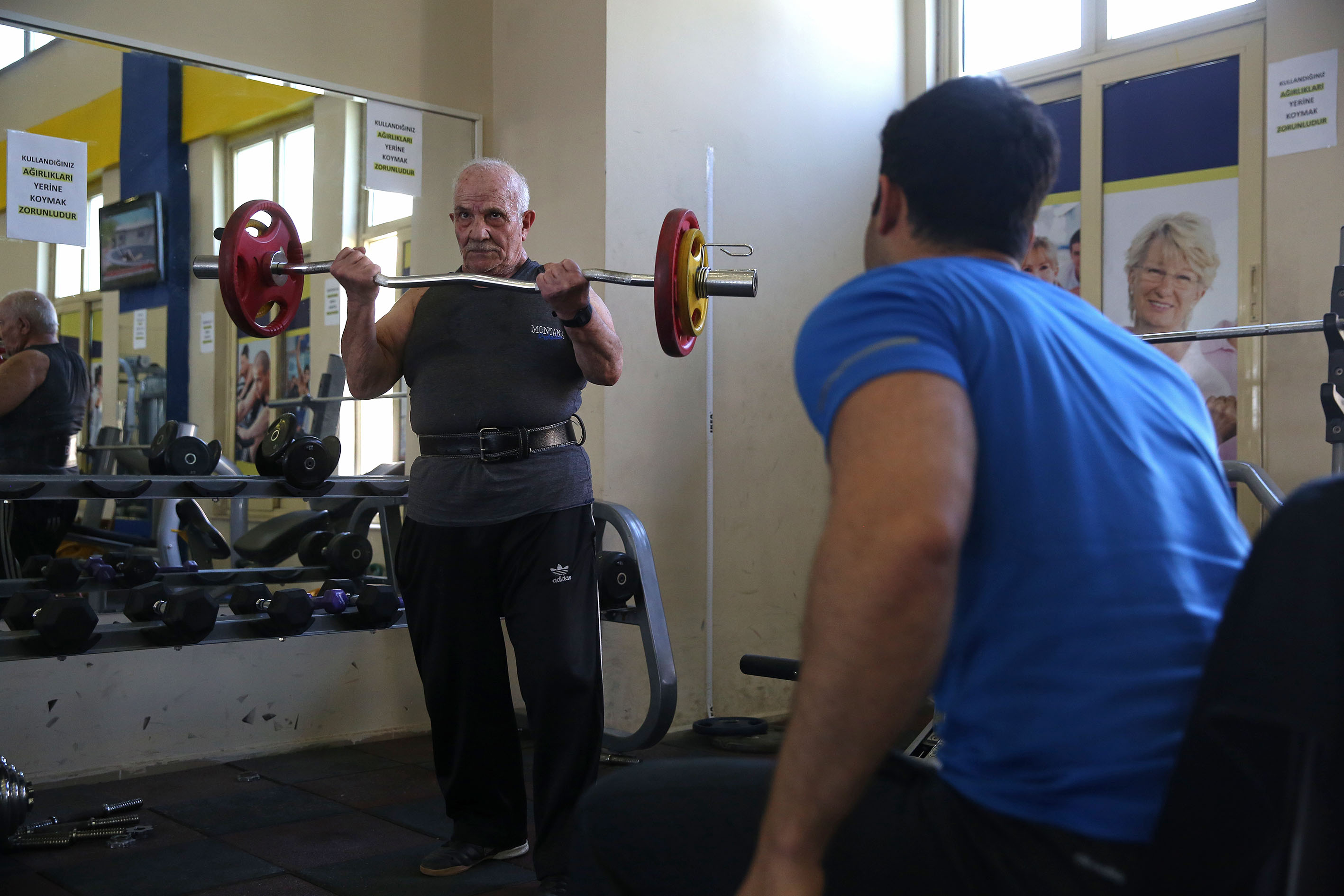 Buca’da 27 yıldan beri vücut geliştirme sporu yapan 84 yaşındaki İsmet Öztoker, güçlü fiziği ve atletik yapısıyla görenleri hayretler içerisinde bırakıyor.