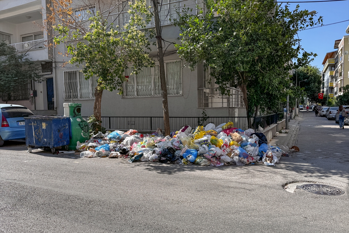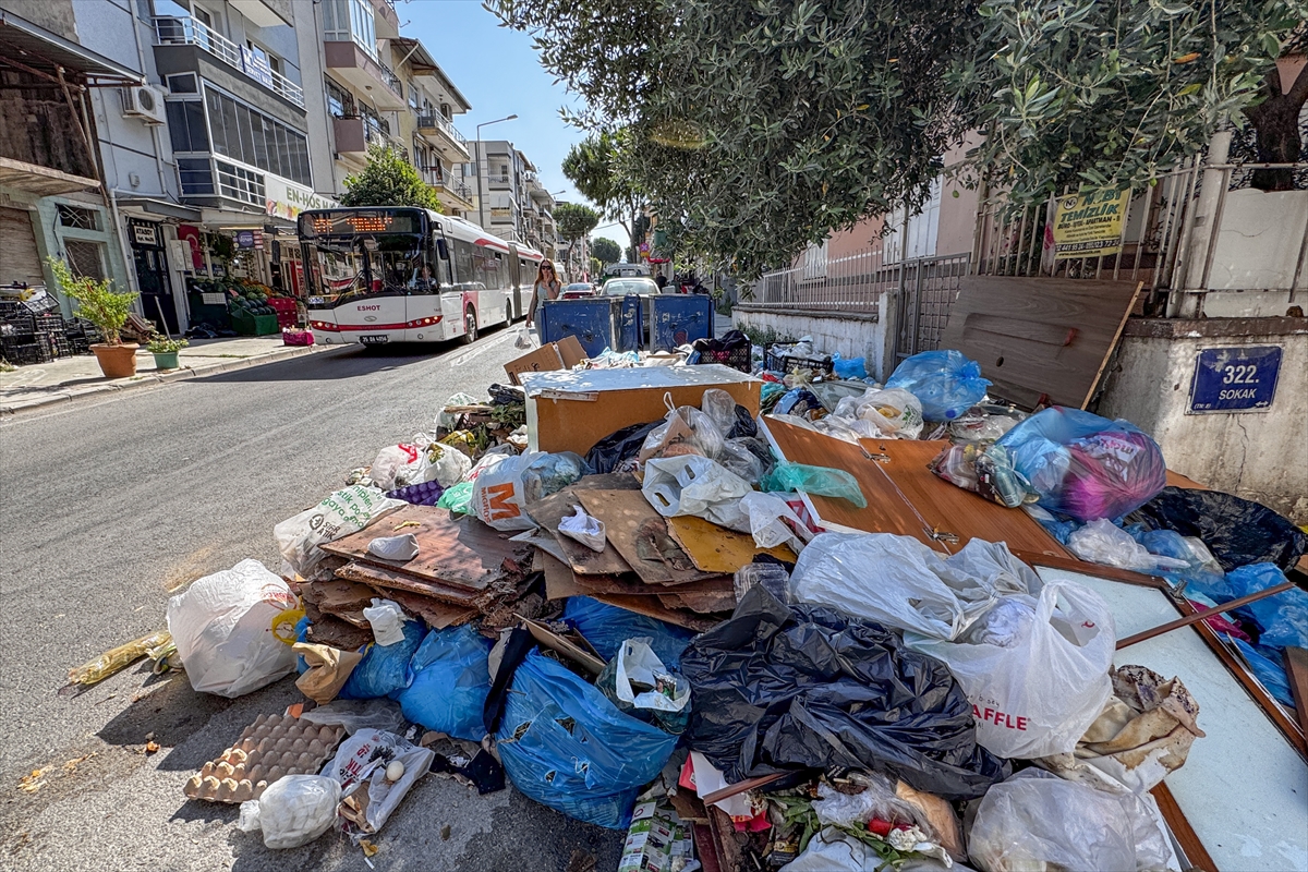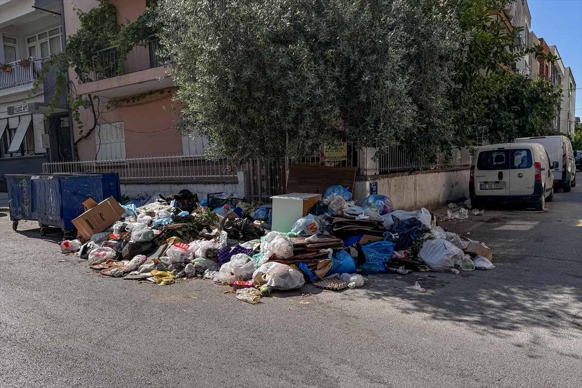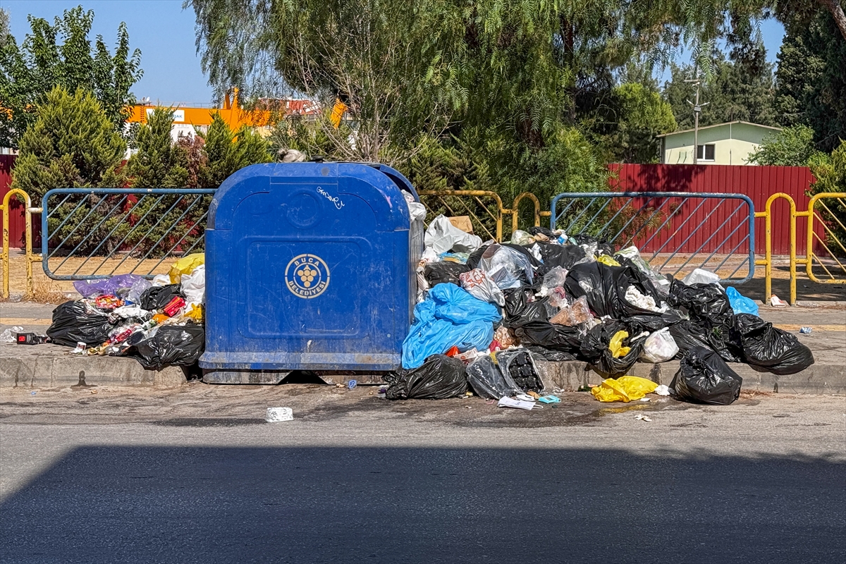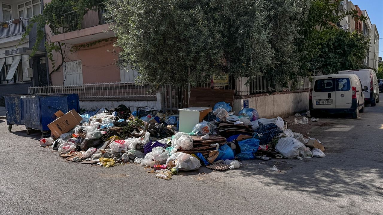 İzmir'in Buca ilçesinde belediye işçilerinin grevi nedeniyle biriken çöp yığınları ve kötü koku tepkilere neden oluyor.