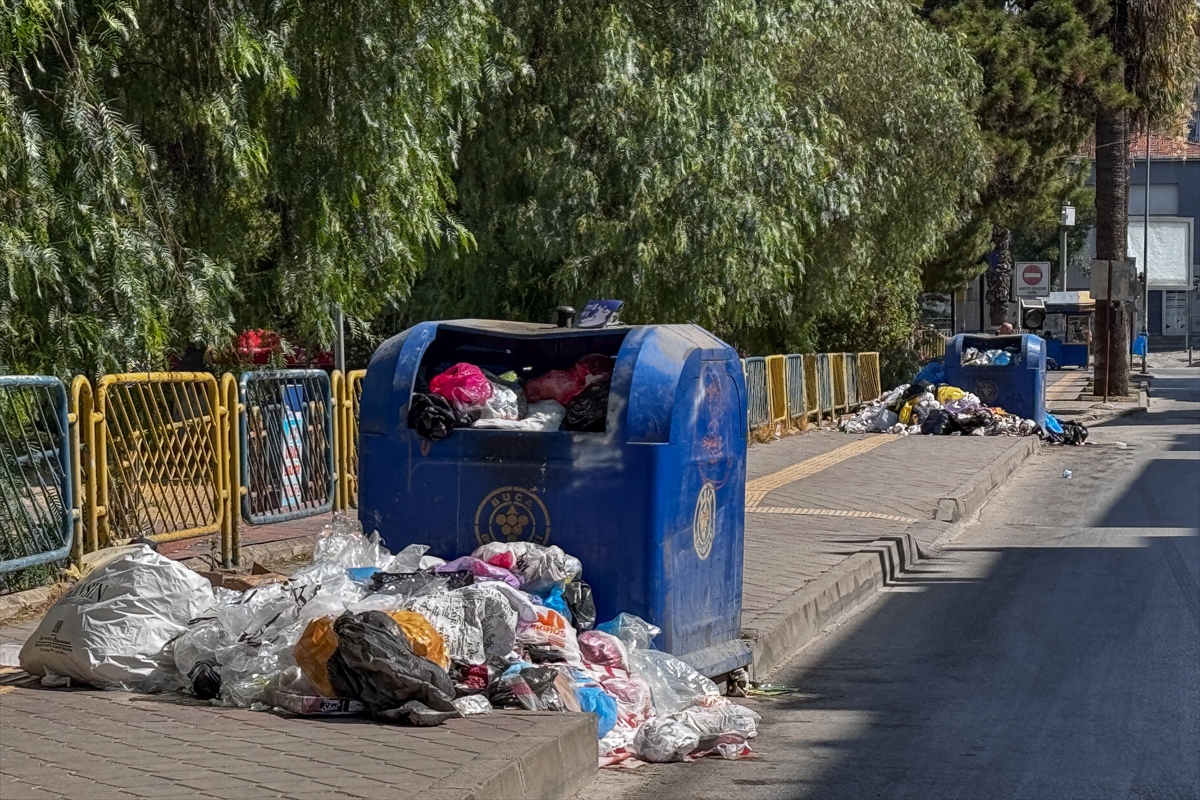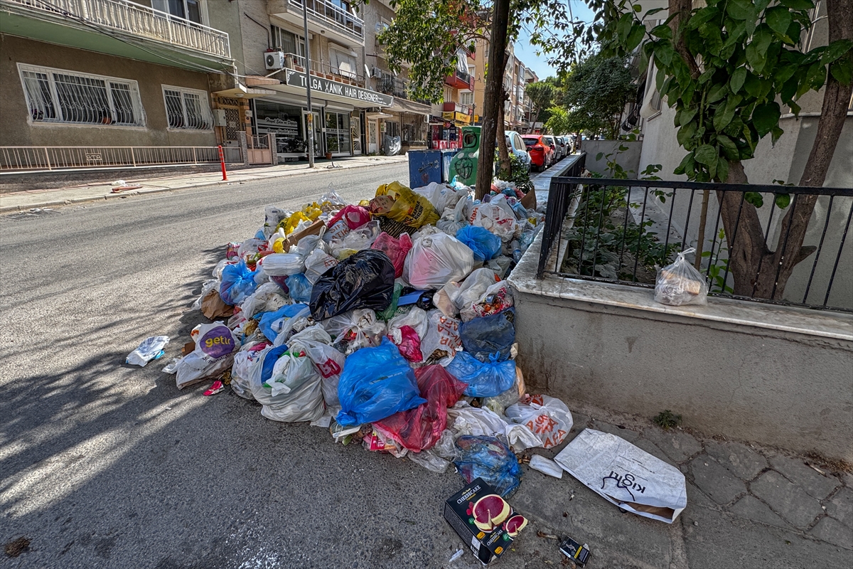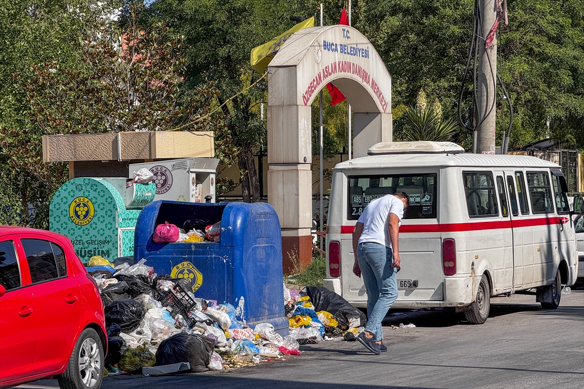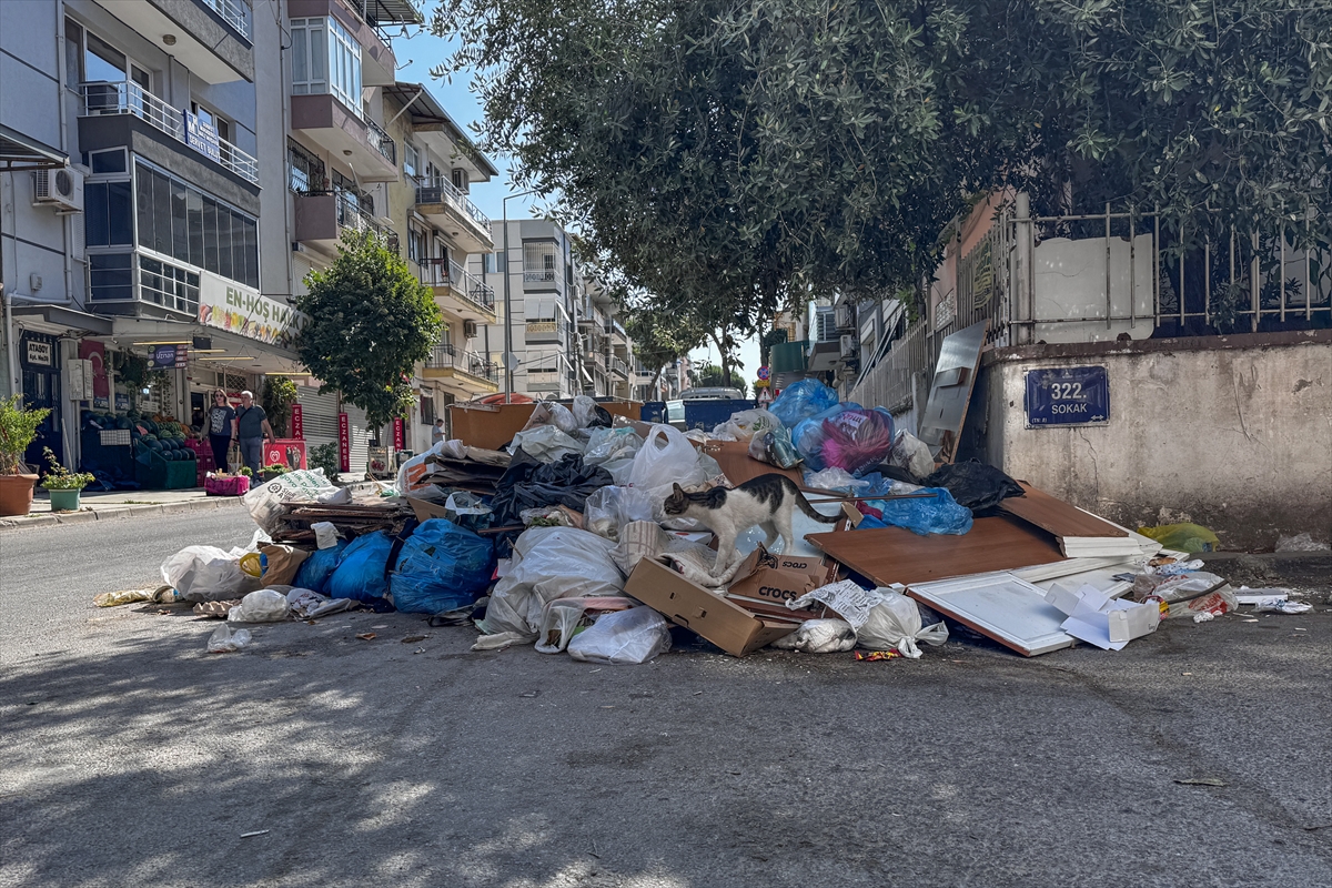 İzmir'in Buca ilçesinde belediye işçilerinin grevi nedeniyle biriken çöp yığınları ve kötü koku tepkilere neden oluyor.