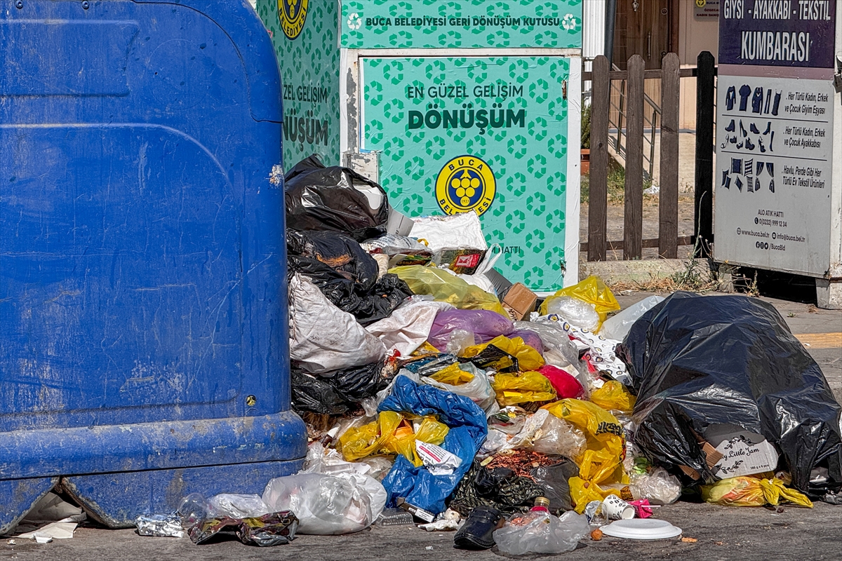 Grevin 5'inci gününde temizlik hizmetlerinde görevli işçilerin iş bırakması nedeniyle Buca'nın bazı sokaklarında çöp yığınları ve kötü koku oluştu.