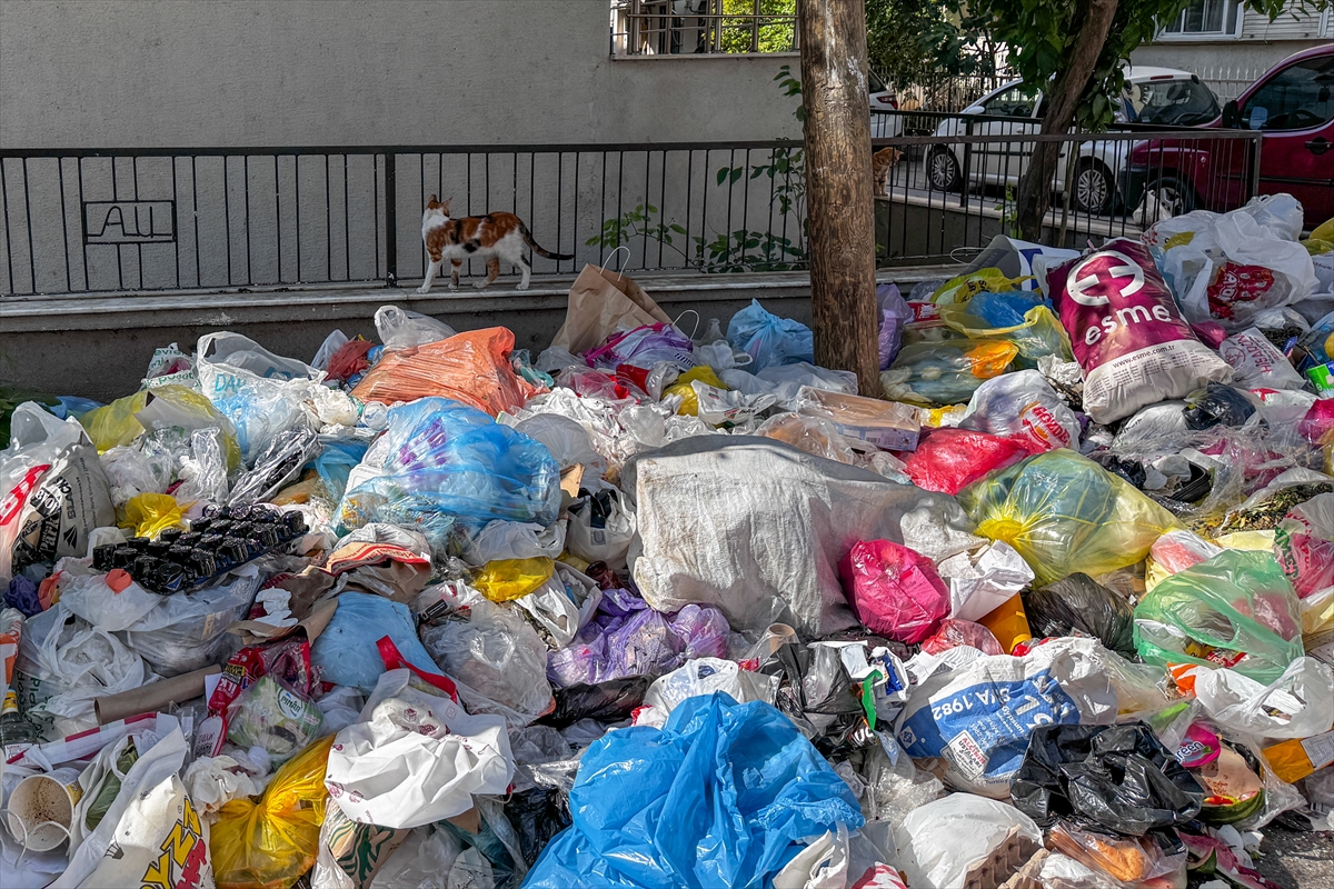 Biriken çöplerin kaldırım ve yollara taştığı görüldü.