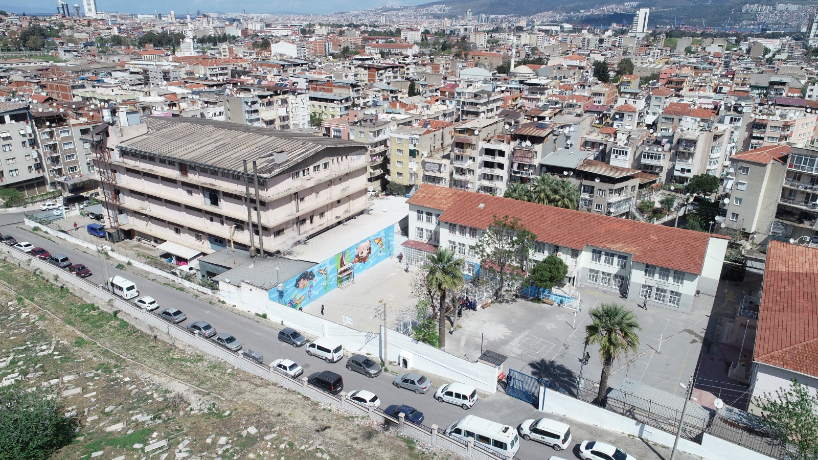 İzmir Büyükşehir Belediyesi, 23 Nisan Ulusal Egemenlik ve Çocuk Bayramı etkinlikleri kapsamında Konak'taki Mimar Sinan İlkokulu ve Mimar Sinan Ortaokulu'nun duvarına denizi taşıyor.