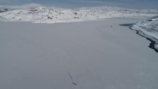 Sivas'ta son günlerde etkili olan soğuk hava ve kar yağışı nedeniyle 4 Eylül Barajı'nın yüzeyi buz tuttu.