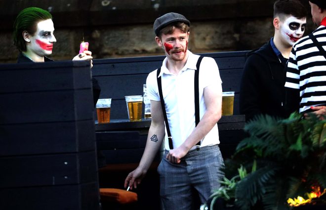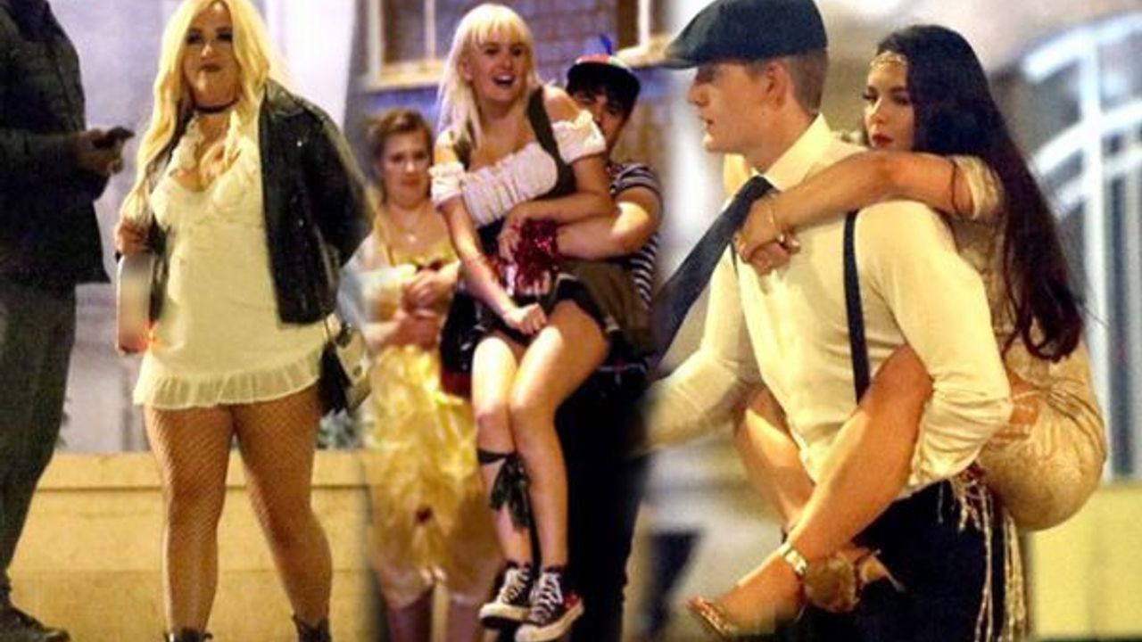İngiltere'nin Leed şehrinde Cadılar Bayramı kutlamalarına erken başlayan öğrenciler, alkolün dozunu kaçırınca ortalığı dağıttılar.
