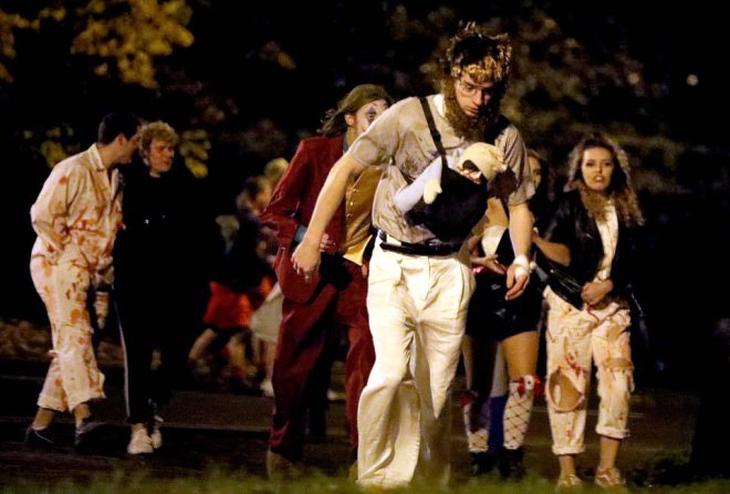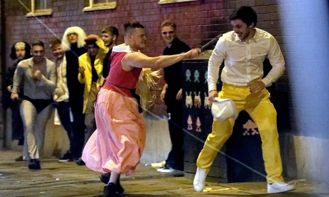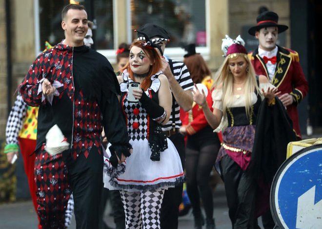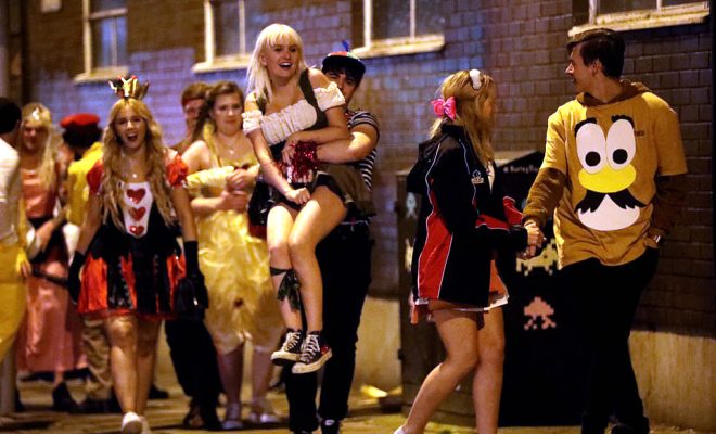 Kutlamalar için farklı kostümler giyen öğrenciler, gece kulüplerinde eğlendikten sonra sabaha karşı sokaklara aktılar.