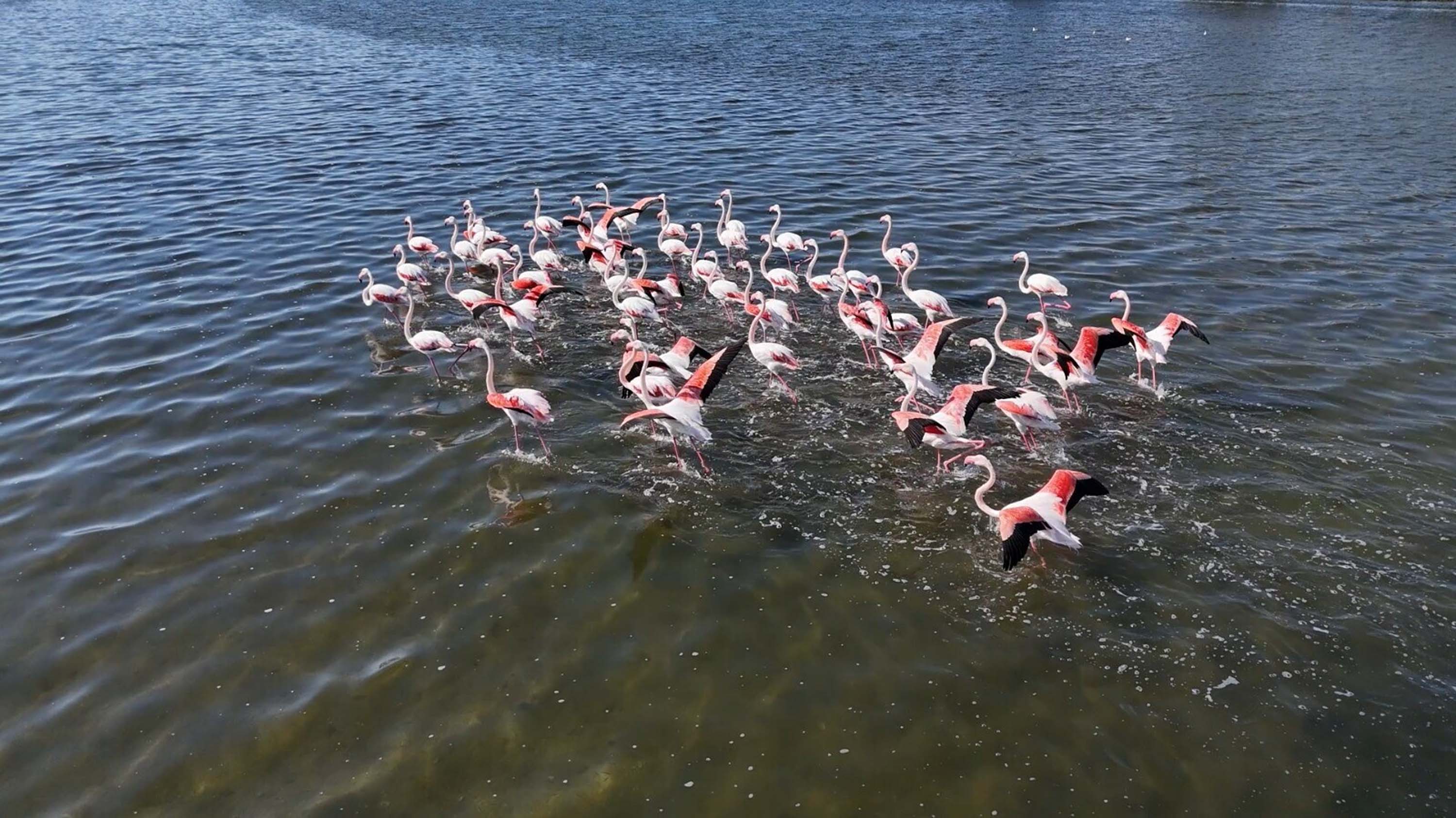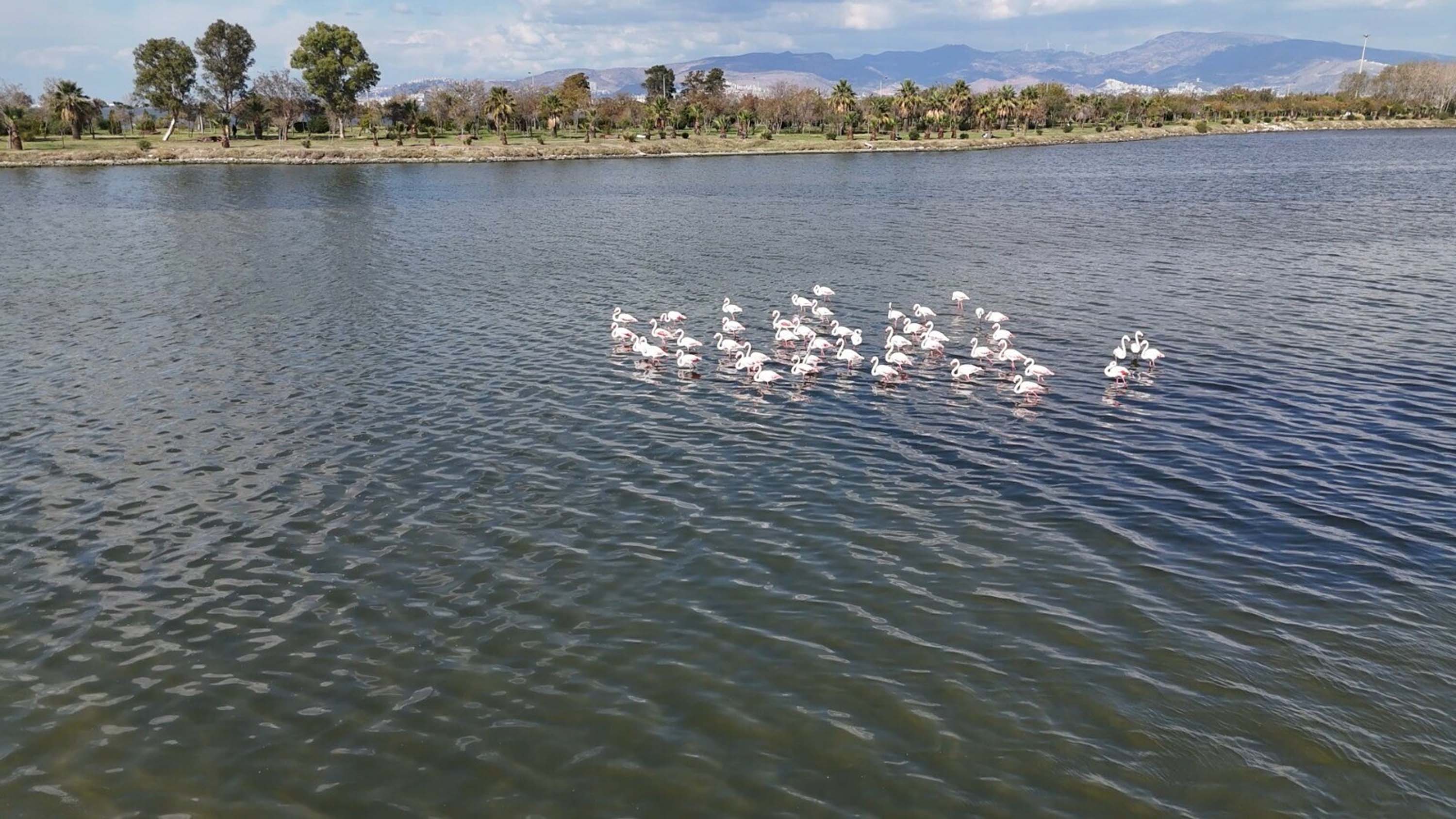 Hava sıcaklıklarının mevsim normallerinde seyretmesiyle lagündeki flamingolar görsel şölen oluşturdu.
