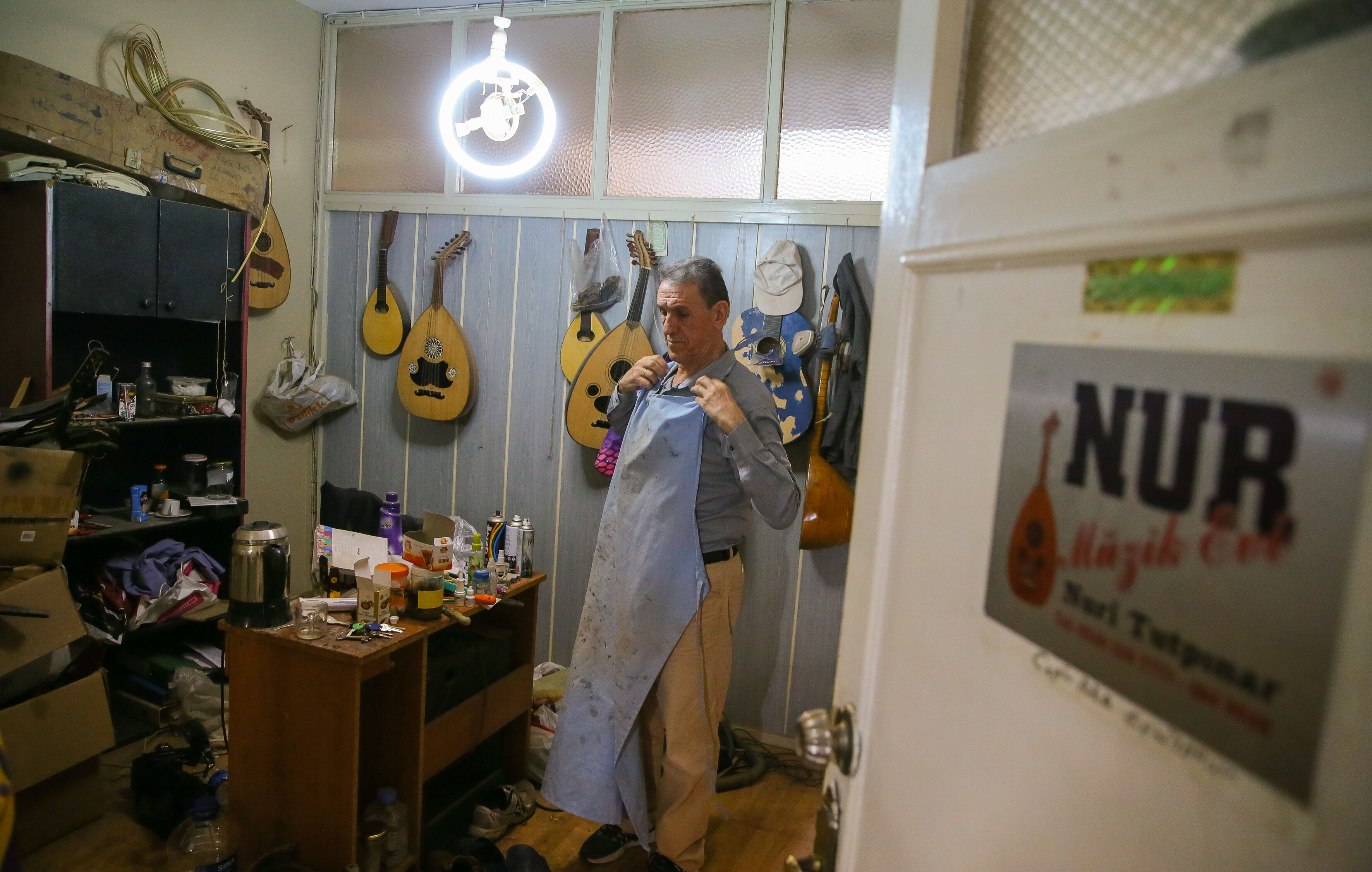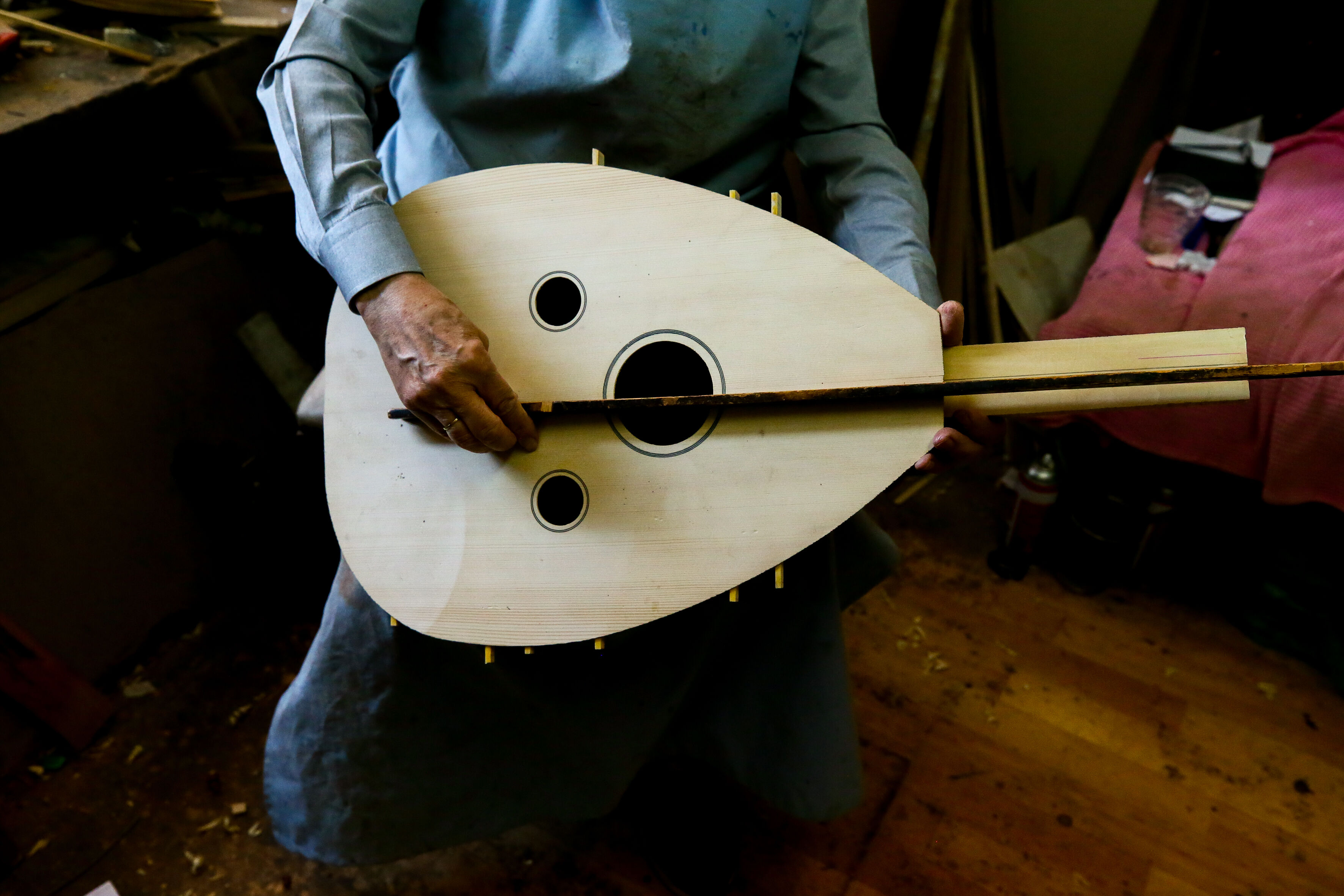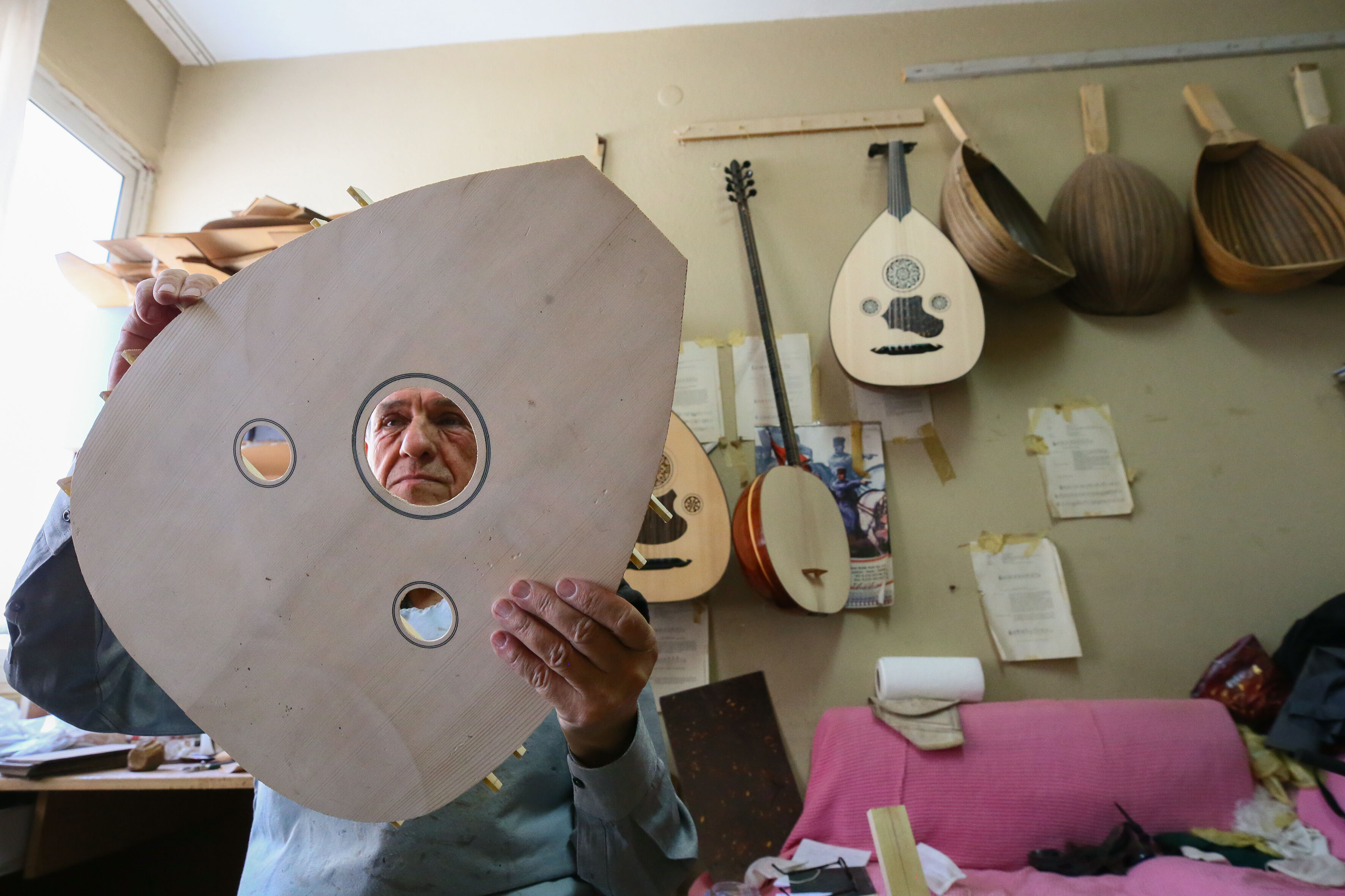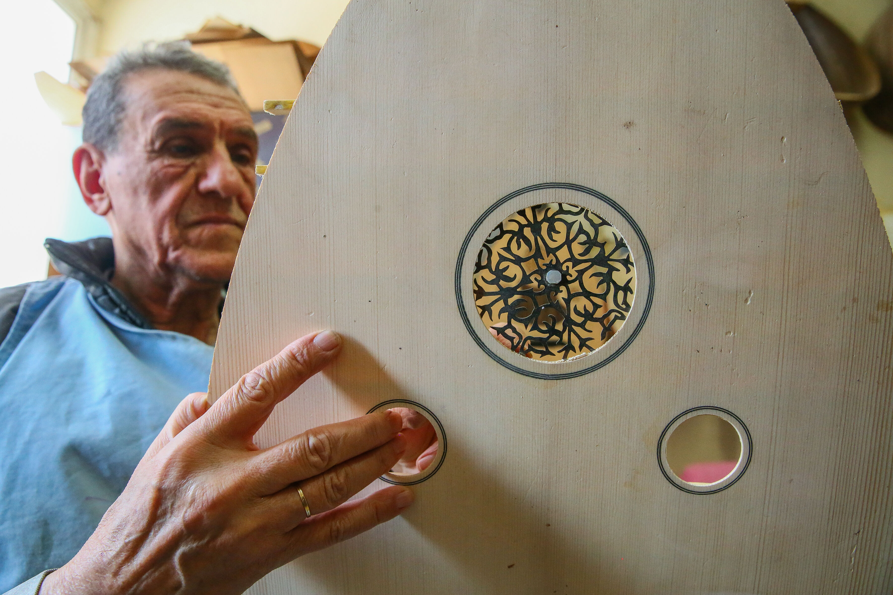 İzmir'de 63 yıldır el yapımı Türk müziği enstrümanları imal eden 72 yaşındaki Nuri Tutpınar, ilerleyen yaşına rağmen "cennetim" diye adlandırdığı atölyesinde ham ağaçları özenle işleyerek ud, tambur, lavtaya dönüştürüyor.