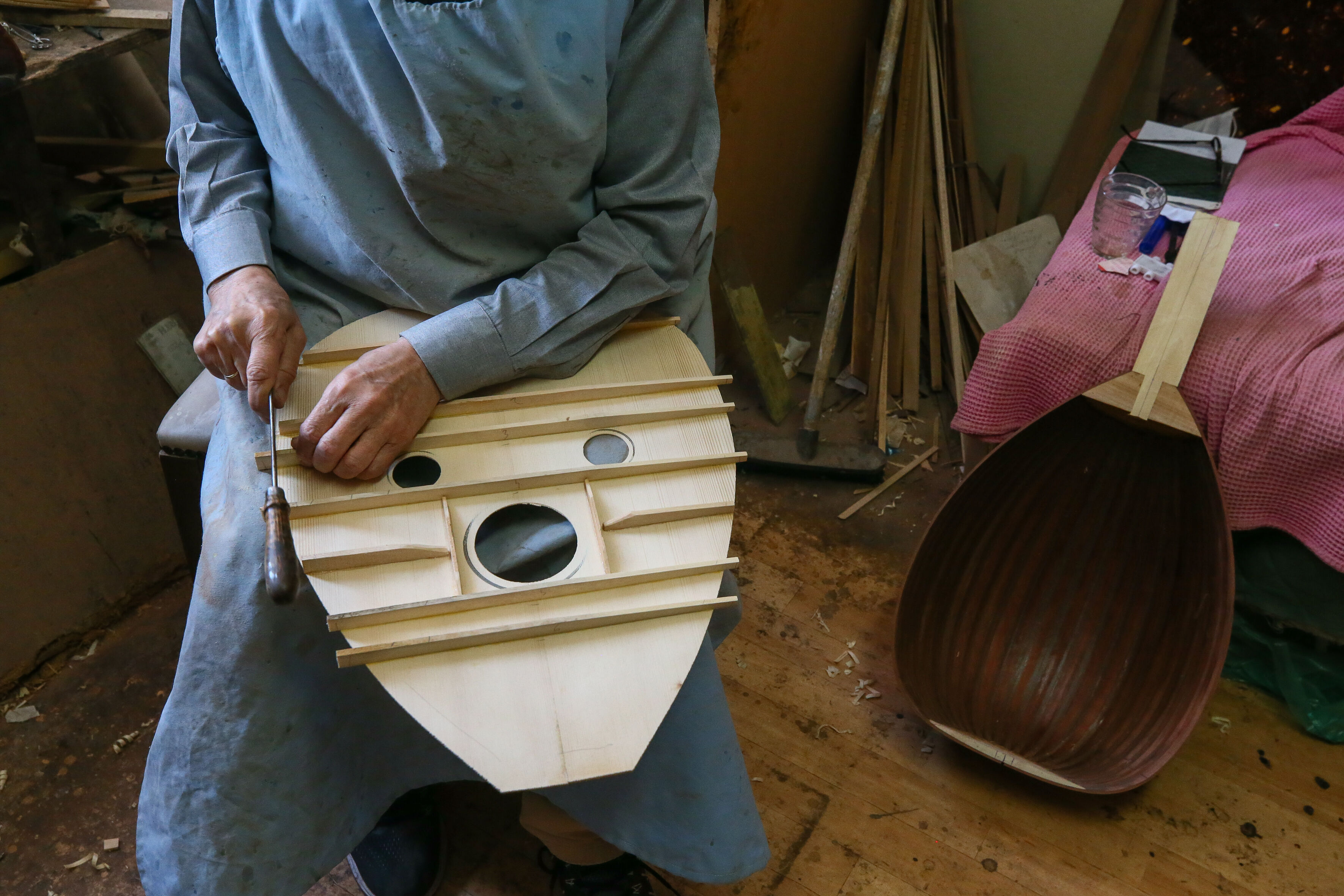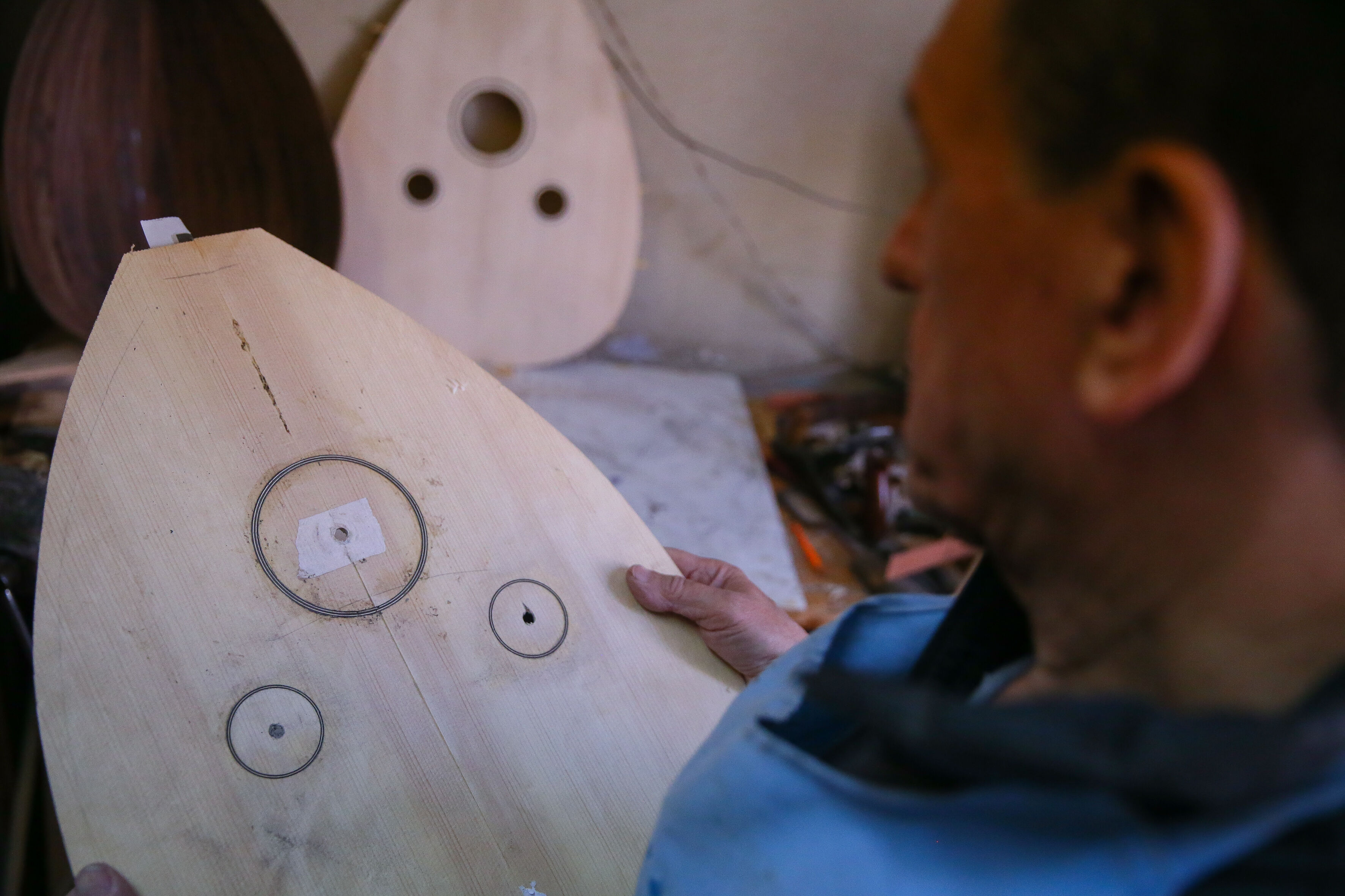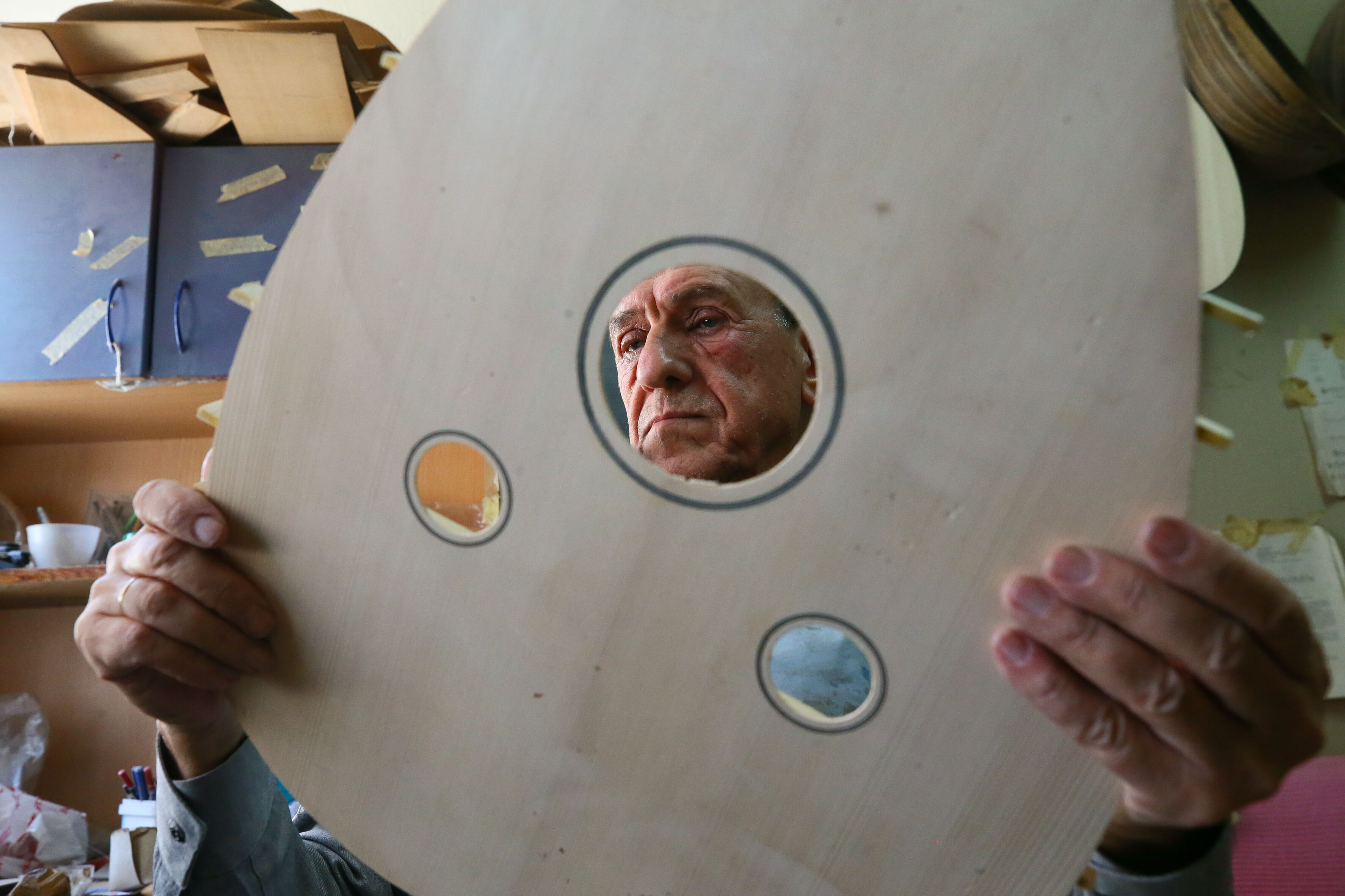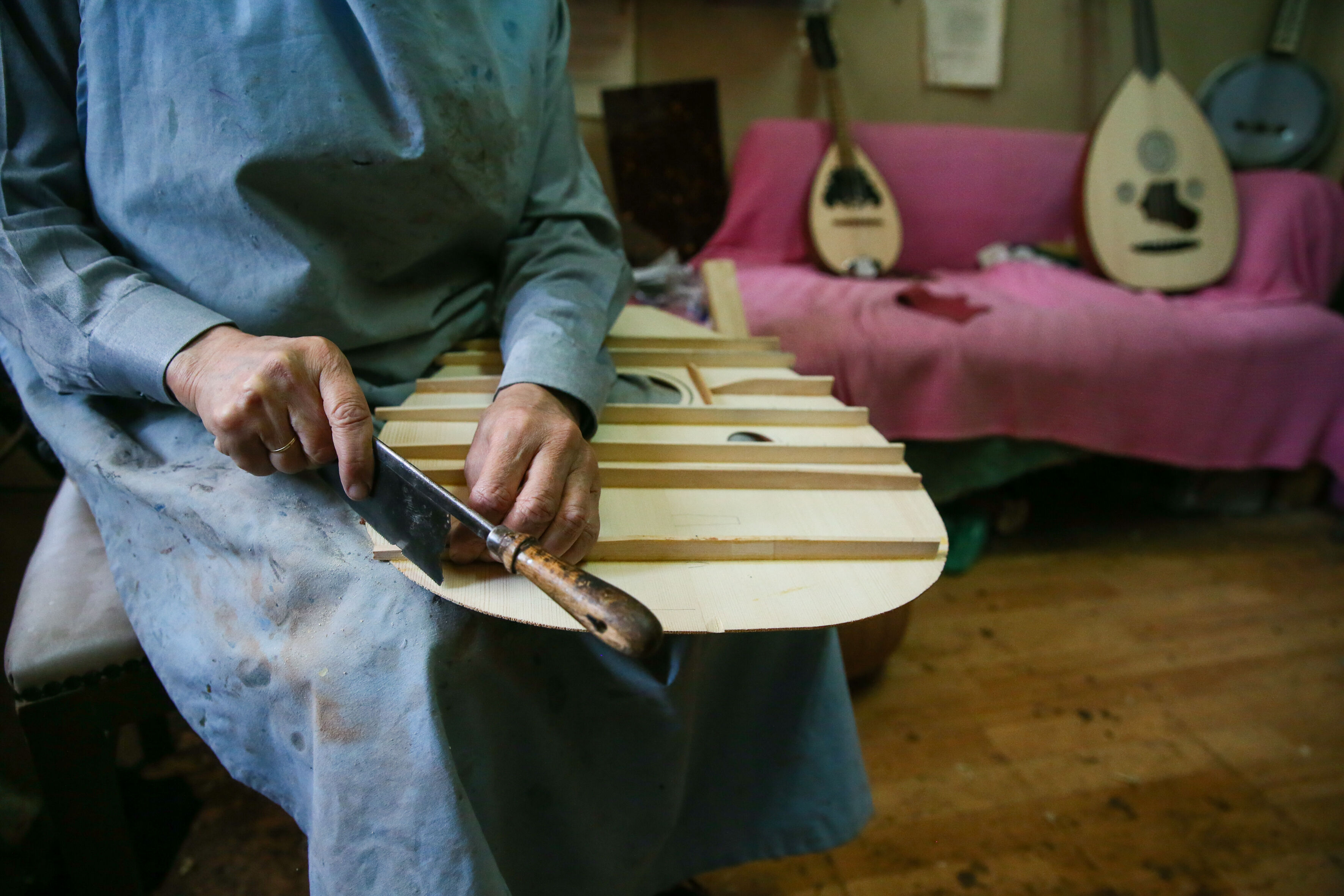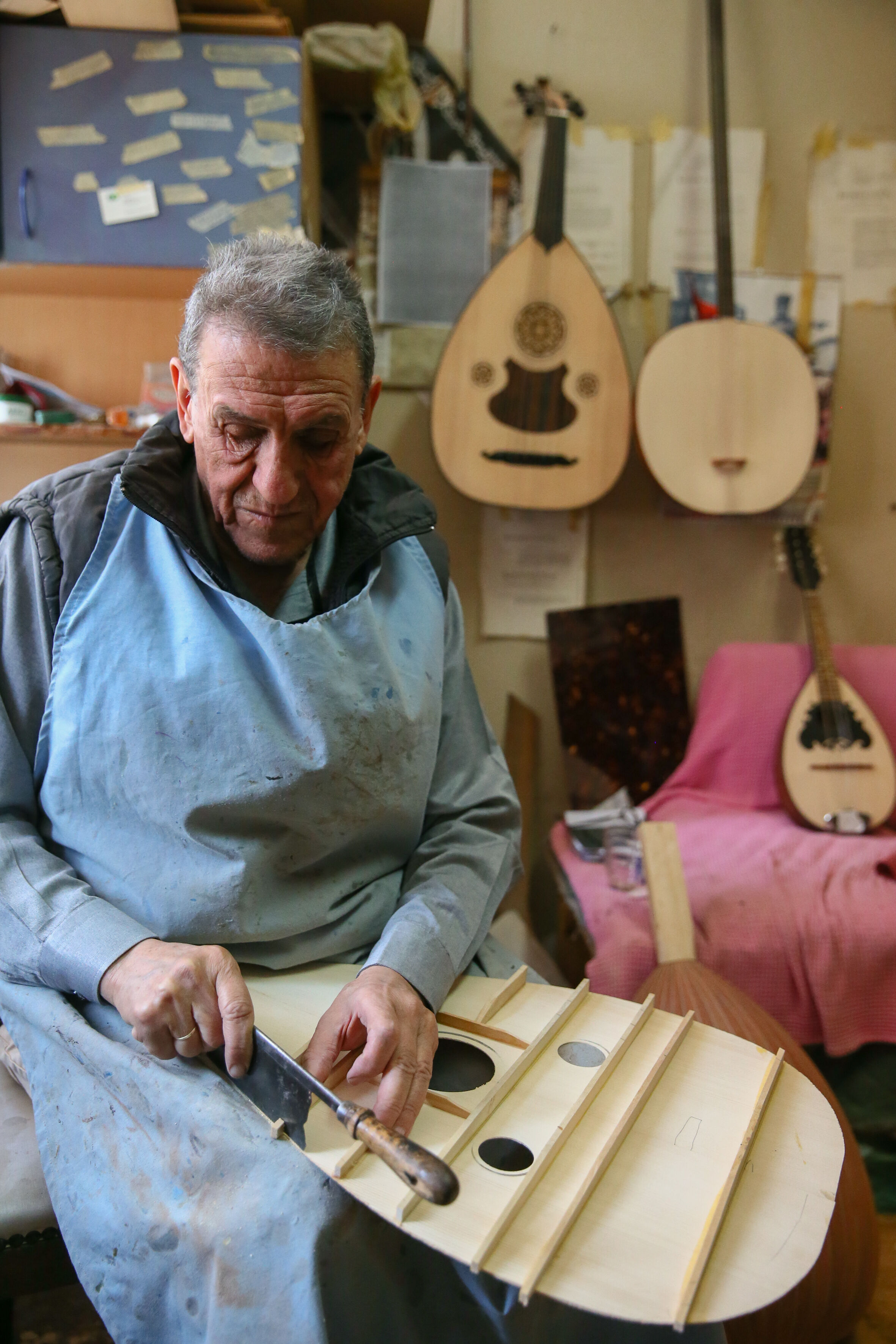İzmir'de 63 yıldır el yapımı Türk müziği enstrümanları imal eden 72 yaşındaki Nuri Tutpınar, ilerleyen yaşına rağmen "cennetim" diye adlandırdığı atölyesinde ham ağaçları özenle işleyerek ud, tambur, lavtaya dönüştürüyor.