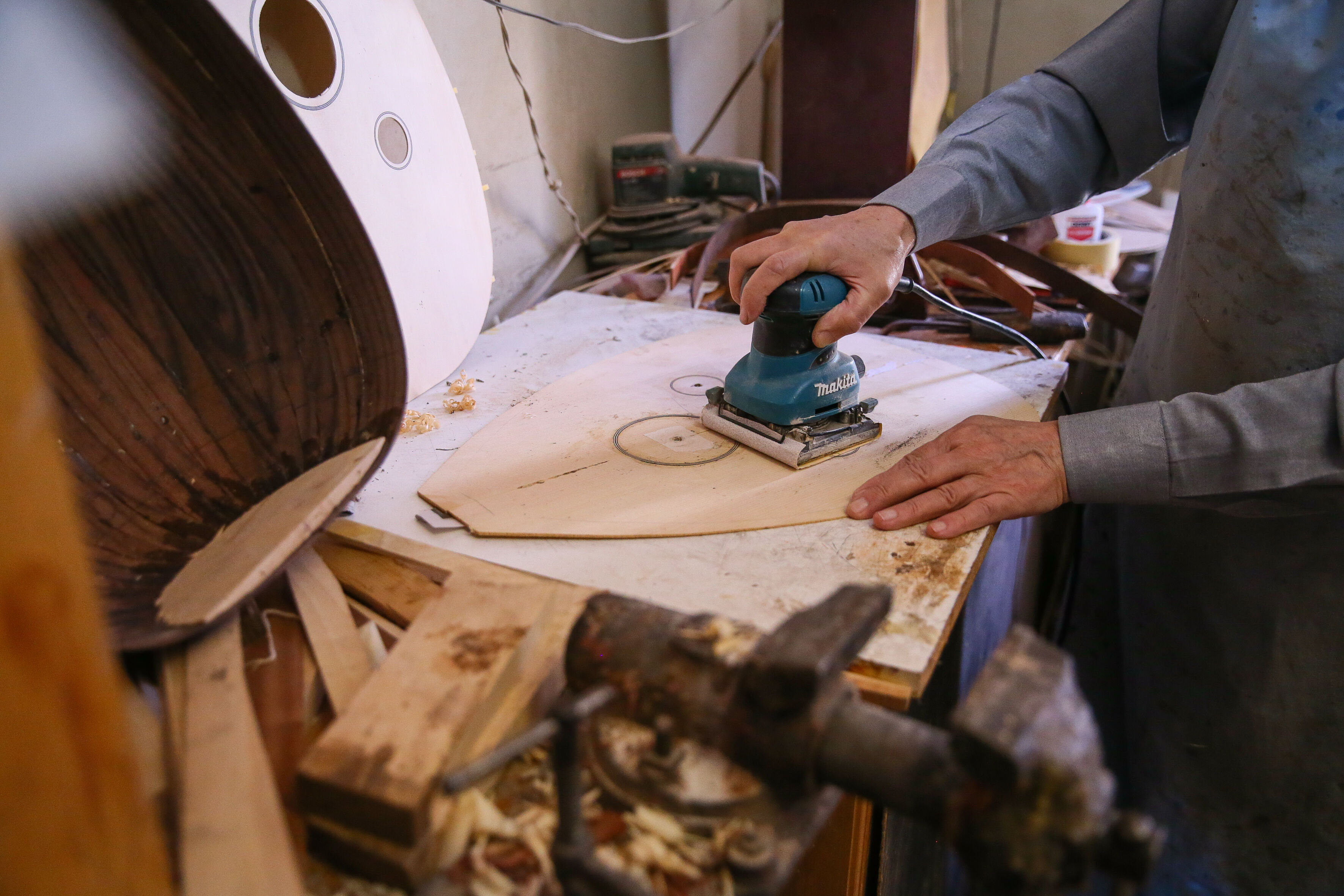 "Bismillah" diyerek iş yerinin kapısını açan Tutpınar, radyosunda çalan Türk sanat müziği eşliğinde önlüğünü giyip, her biri bir başka "büyülü ses" çıkaran çalgıları yapmak için ağaçlara şekil veriyor.