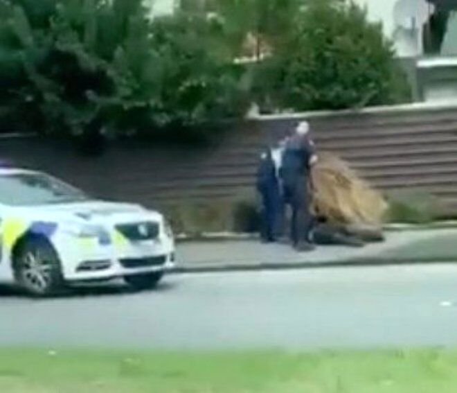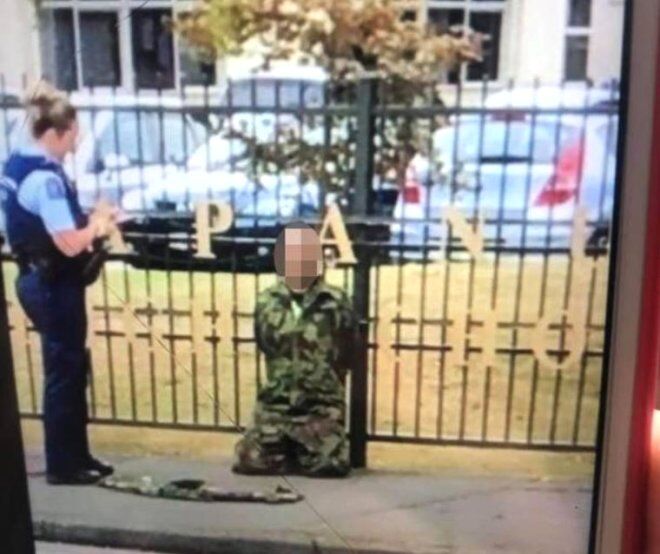 Saldırıyı düzenleyenlerden birisi askeri kıyafetle Papanui Lisesi dışında tutuklandı.