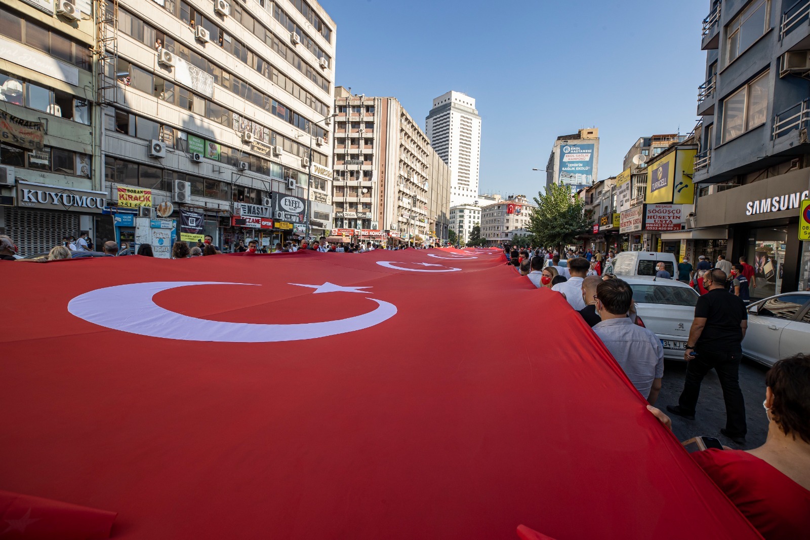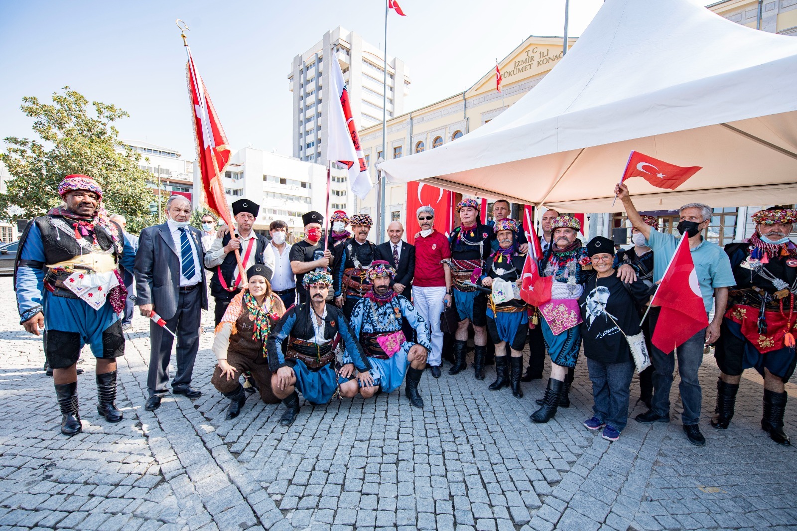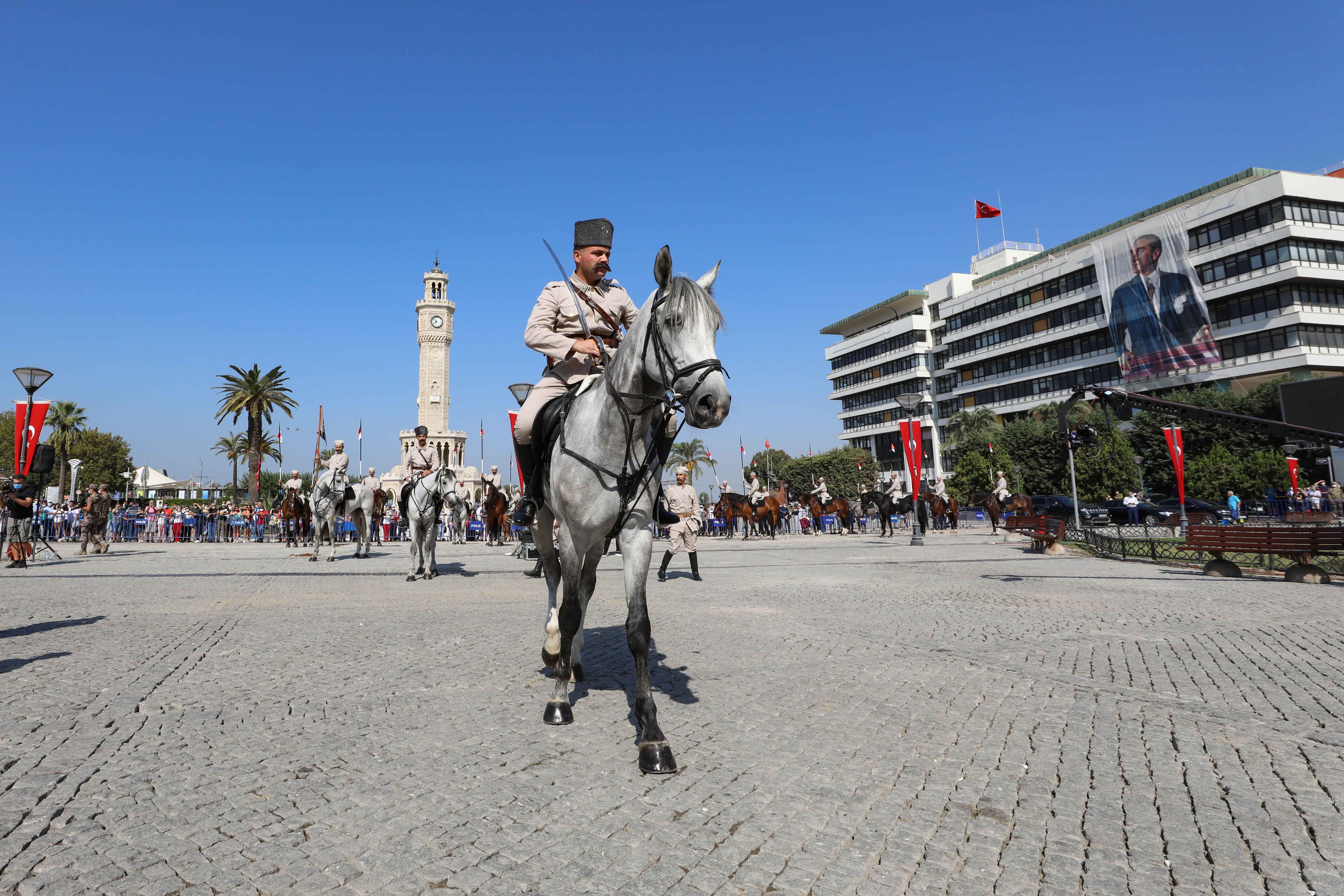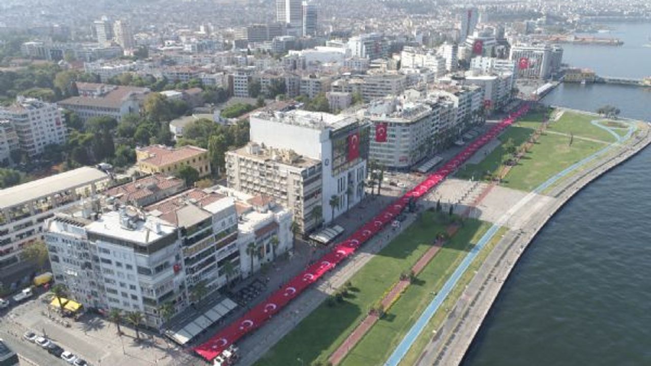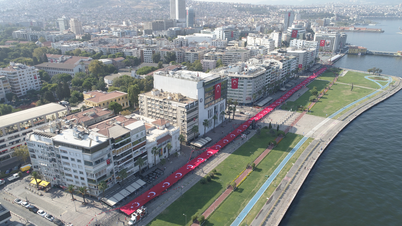 İzmir Büyükşehir Belediye Başkanı Tunç Soyer, 350 metre uzunluğundaki bayrağı taşıyan İzmirlilerle birlikte, Türk Ordusu’nun 9 Eylül 1922'de kente girdiği güzergâhı kullanarak Basmane Karakolu önünden Cumhuriyet Meydanı'na dek yürüdü.