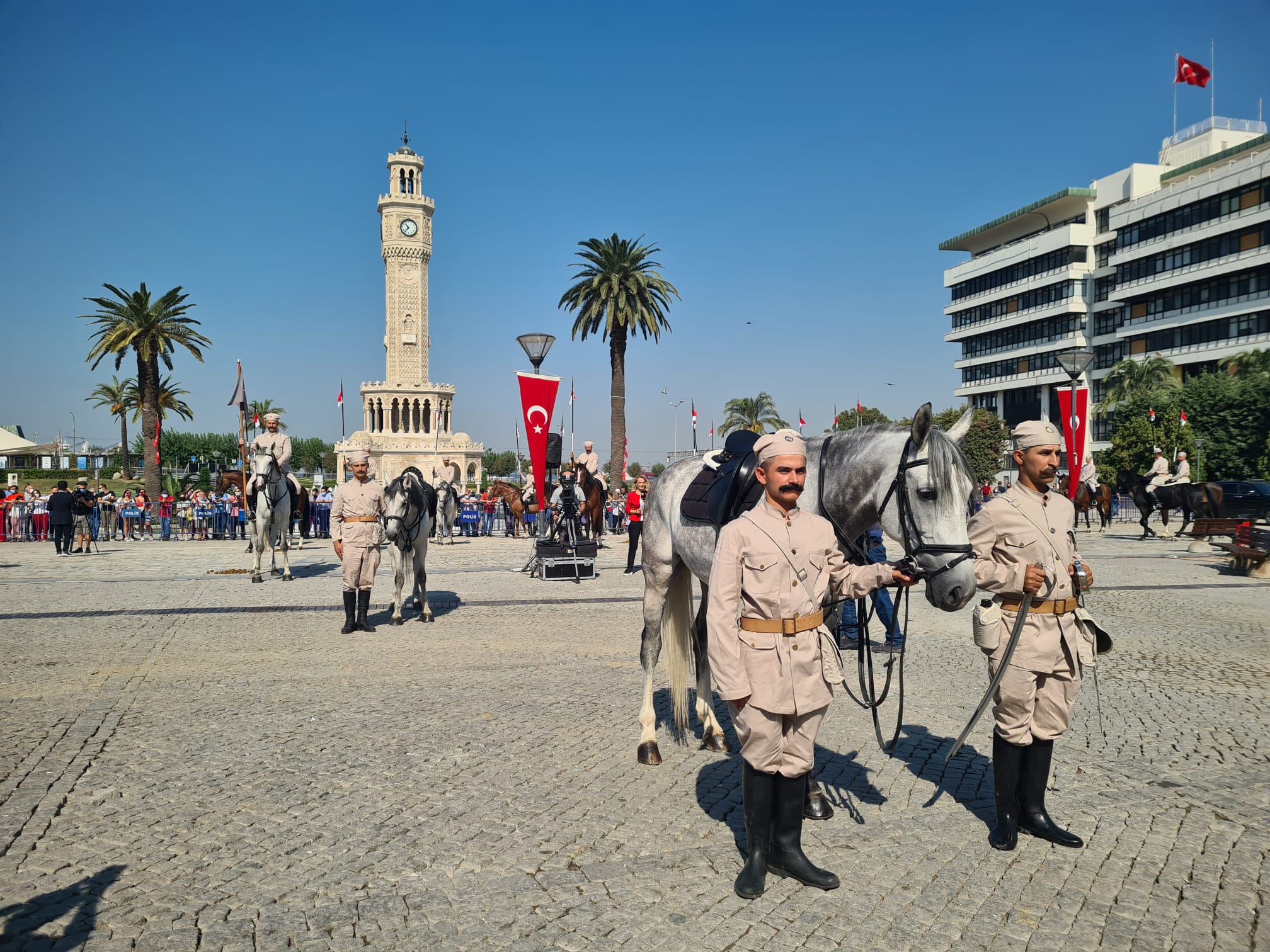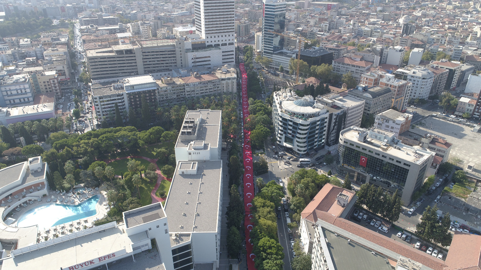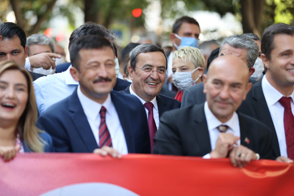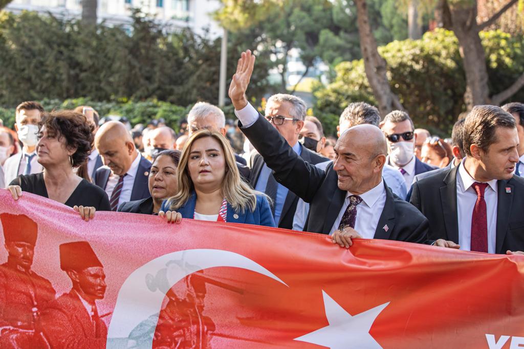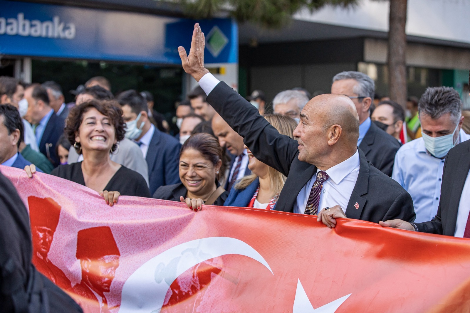 İzmir Büyükşehir Belediye Başkanı Tunç Soyer, 350 metre uzunluğundaki bayrağı taşıyan İzmirlilerle birlikte, Türk Ordusu’nun 9 Eylül 1922'de kente girdiği güzergâhı kullanarak Basmane Karakolu önünden Cumhuriyet Meydanı'na dek yürüdü.