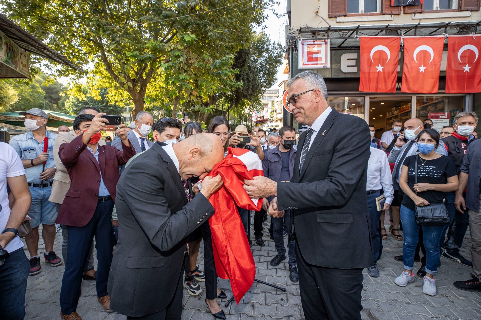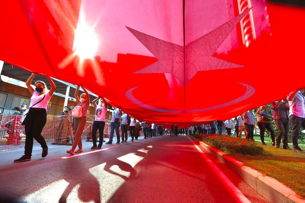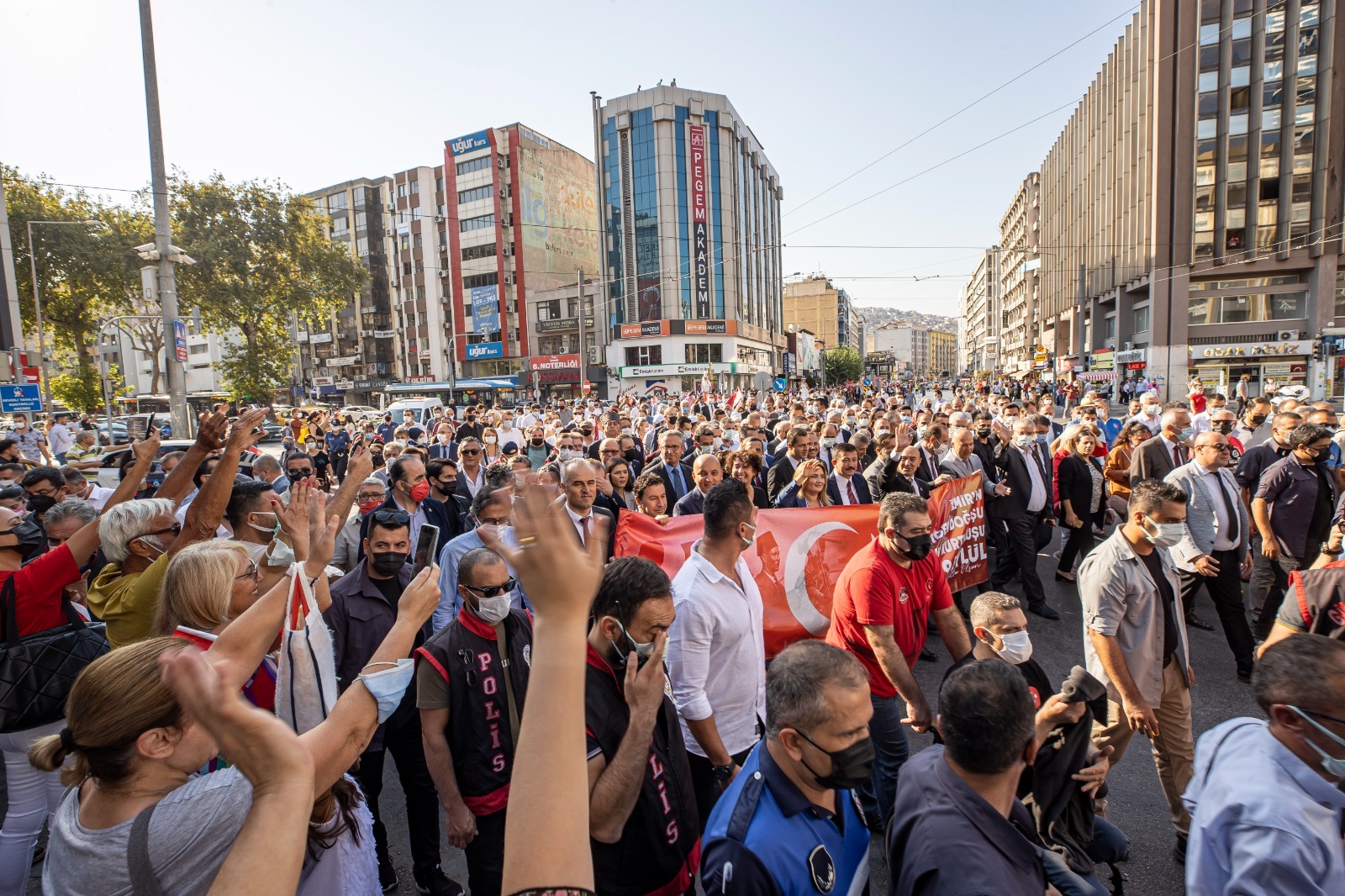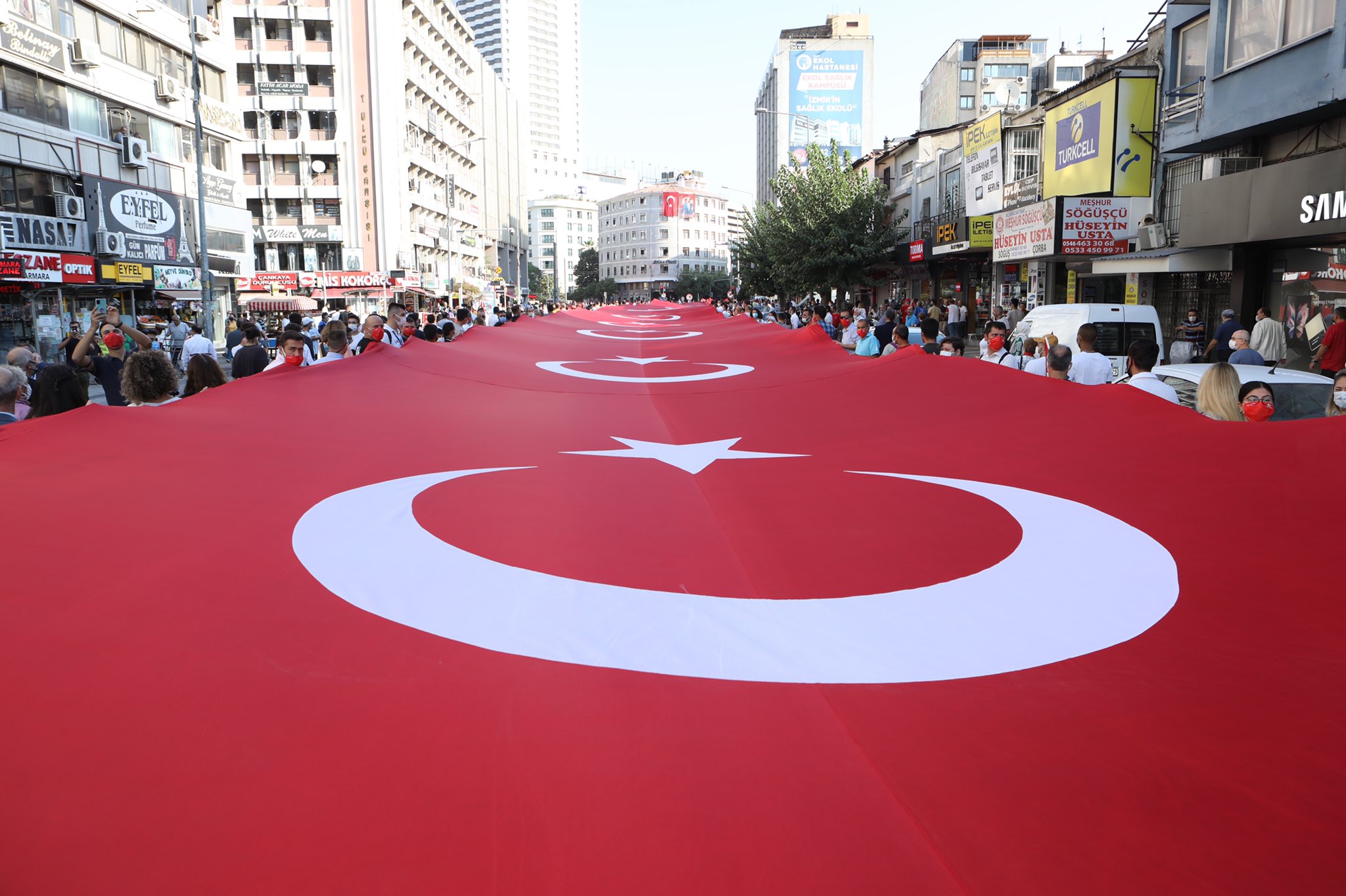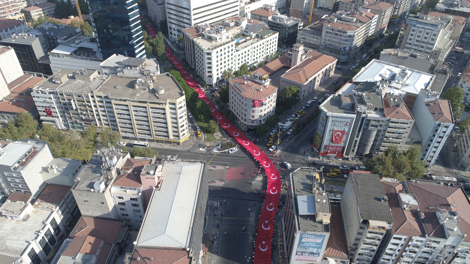 İzmir Büyükşehir Belediye Başkanı Tunç Soyer, 350 metre uzunluğundaki bayrağı taşıyan İzmirlilerle birlikte, Türk Ordusu’nun 9 Eylül 1922'de kente girdiği güzergâhı kullanarak Basmane Karakolu önünden Cumhuriyet Meydanı'na dek yürüdü.