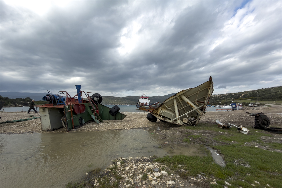 Geminin önce açıkta beklediğini daha sonra kıyıya yanaştığını aktaran Kiraz, "Paletli kepçe yardımıyla sahile çektiler. Buraya oksijen tüplerini getirdiler ve gemiyi parçalamaya başladılar. Tam olarak parçalanamadı ama tutanak tutunca bıraktılar. Geminin dörtte bir kısmı neredeyse söküldü." dedi.