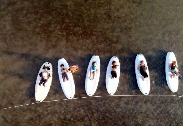 7 kişilik gruplar halinde sörf tahtalarının üzerinde denge kurarak, yoga hareketlerinin yapıldığı derslere katılanlar, huzur bulduklarını söylüyor. Aynı zamanda hamak üzerinde yapılan yer çekimsiz yogayı da deneyen eğitmenler, her yerde yoga yapmanın mümkün olduğunu söylüyor.