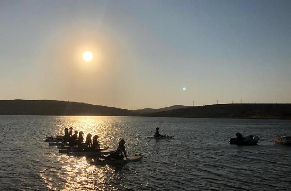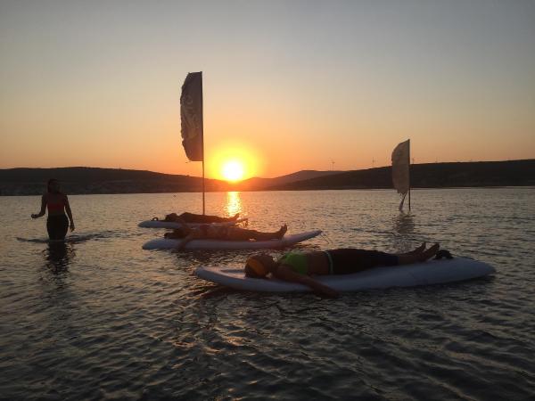 Yoga eğitmenliği yapan Görkem Şahin ve Meral Meriç, ABD'deki yoga eğitmenlerinden örnek alarak, Türkiye'de yoga sevenlerle deniz üzerinde yoga (supboard) ve yer çekimsiz (antigravity) yoga yaptırıyor. Her pazar gün batımında, Alaçatı'daki sörf okulunun önünde, denizde sörf tahtalarının üzerinde birkaç grupla yoga yapan eğitmenler, doğa ile iç içe ortamda rahatlıyor.