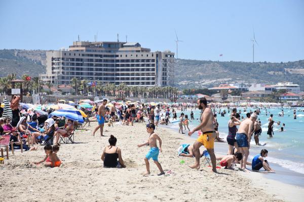 Kısıtlamaların sona ermesi ve yaklaşan Kurban Bayramı öncesi tatilciler ve turistler Çeşme’de yoğunluk oluşturdu. Yaklaşık bin 200 metre uzunluğuna sahip Ilıca Plajı sıcaktan bunalanların adresi oldu.