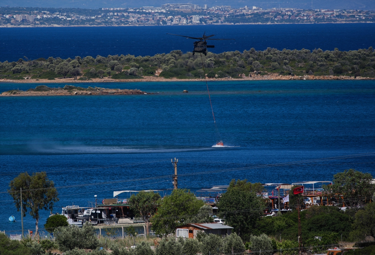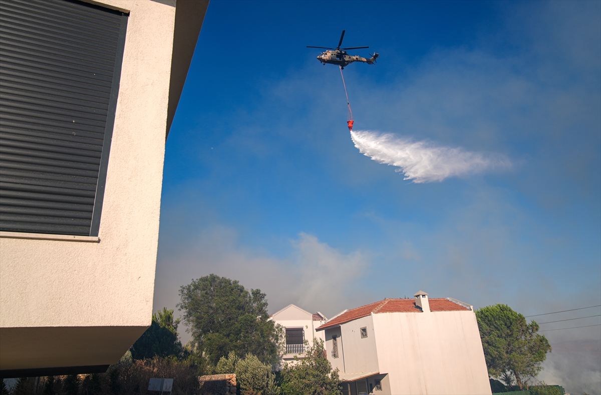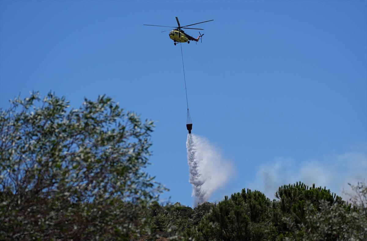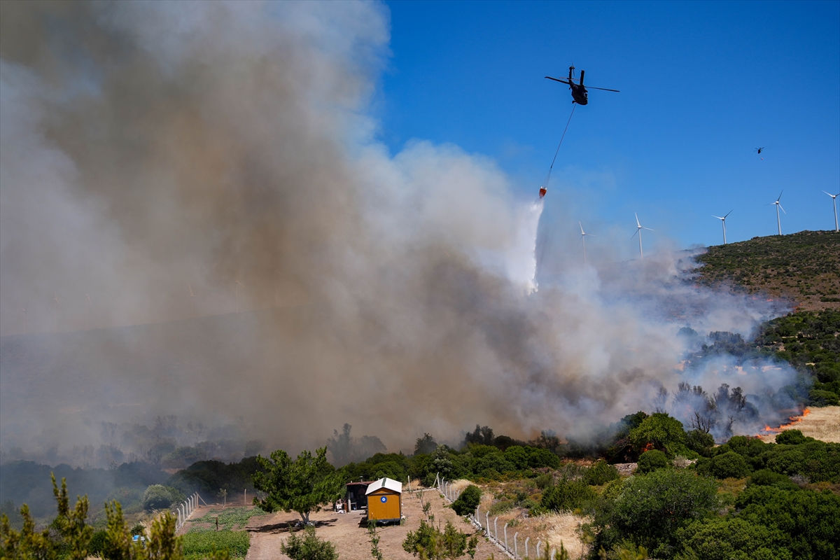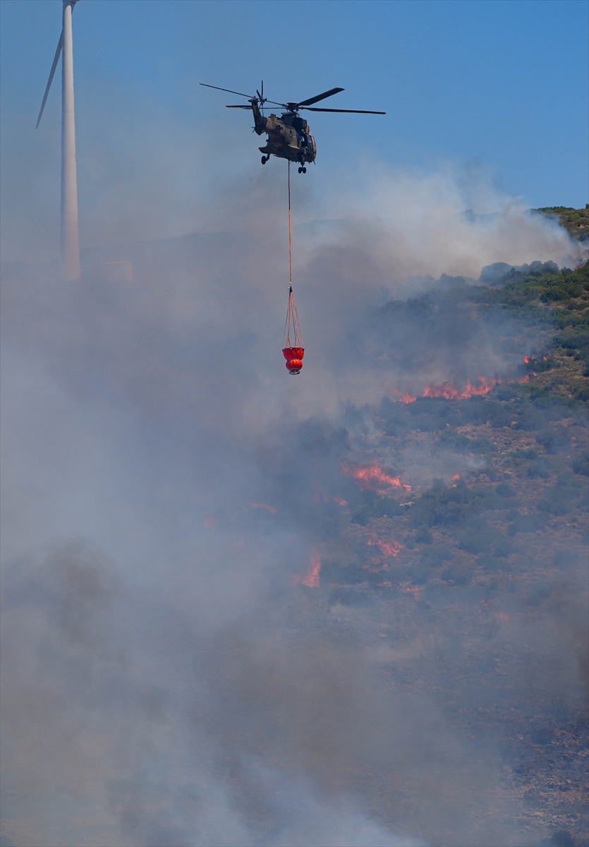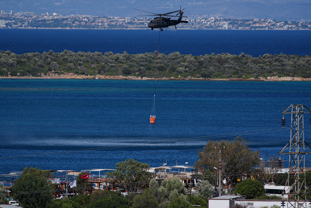 İzmir'in Çeşme ilçesinde çıkan orman yangınına ekiplerin havadan ve karadan müdahalesi devam ediyor.