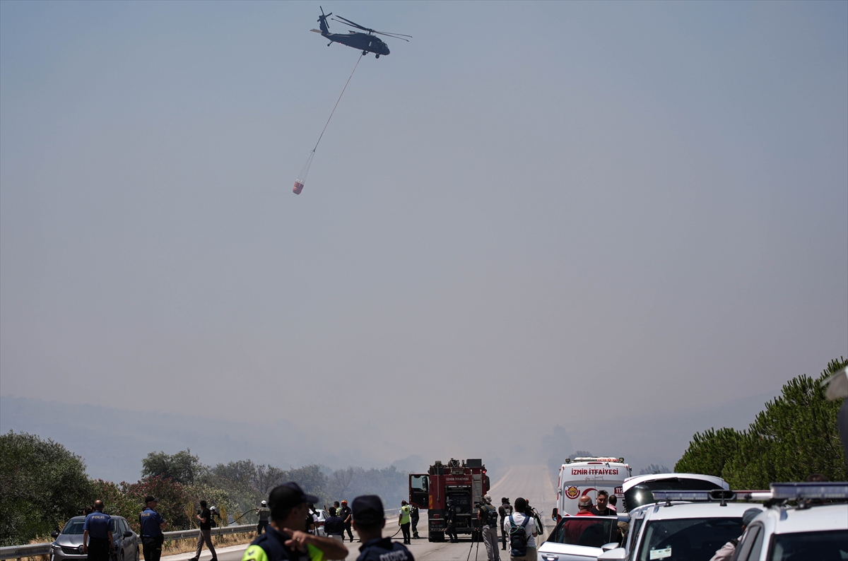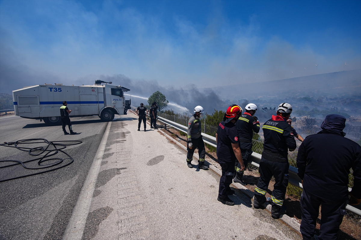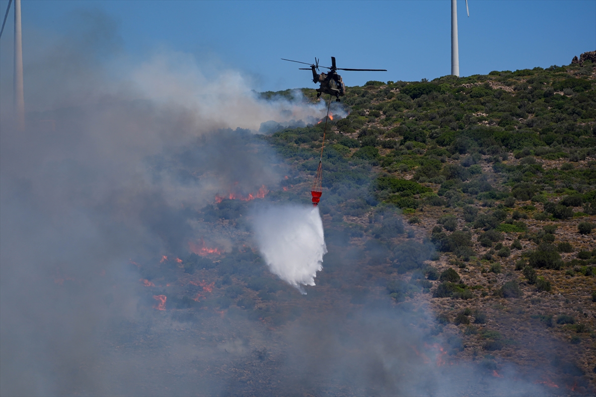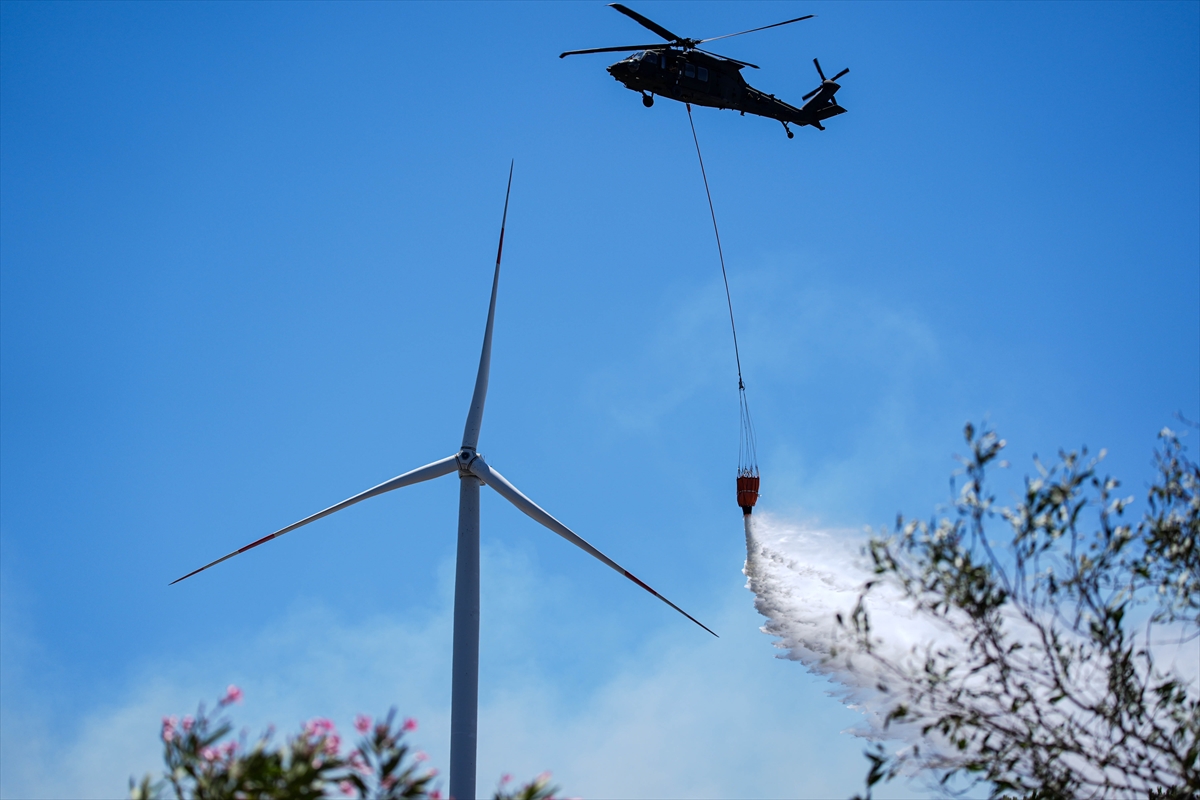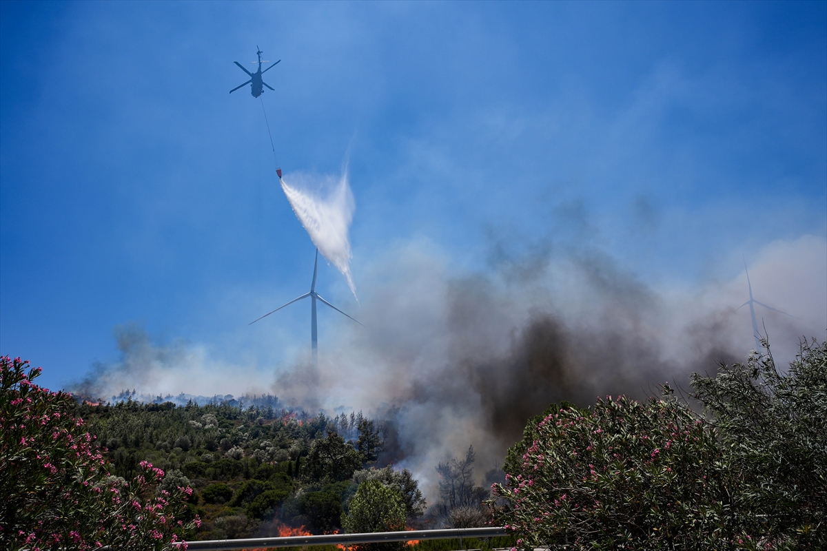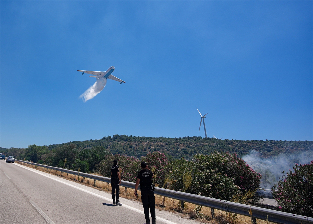 İzmir'in Çeşme ilçesinde çıkan orman yangınına ekiplerin havadan ve karadan müdahalesi devam ediyor.