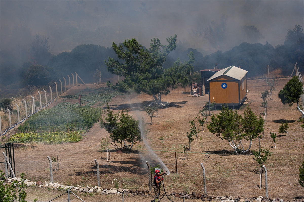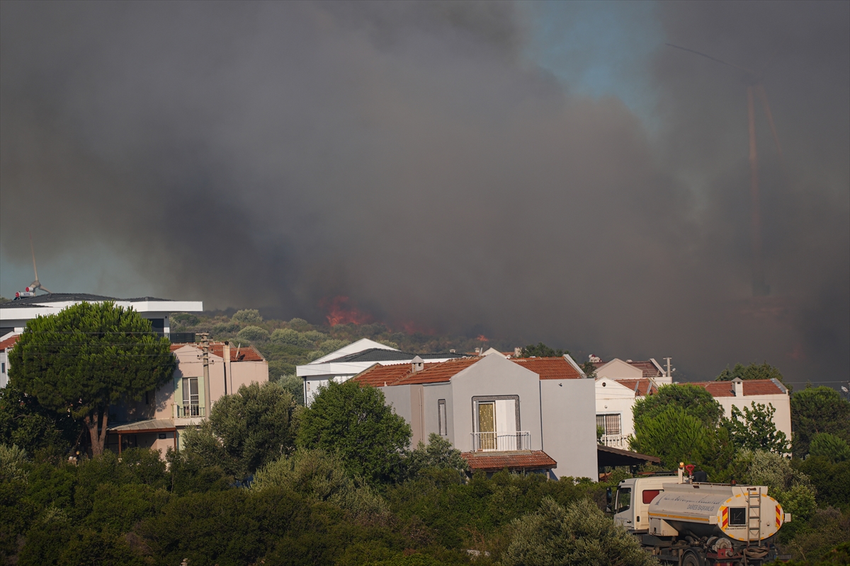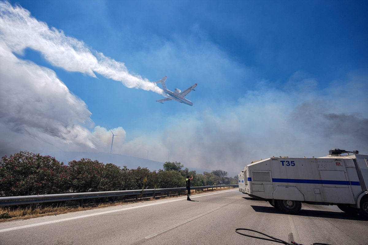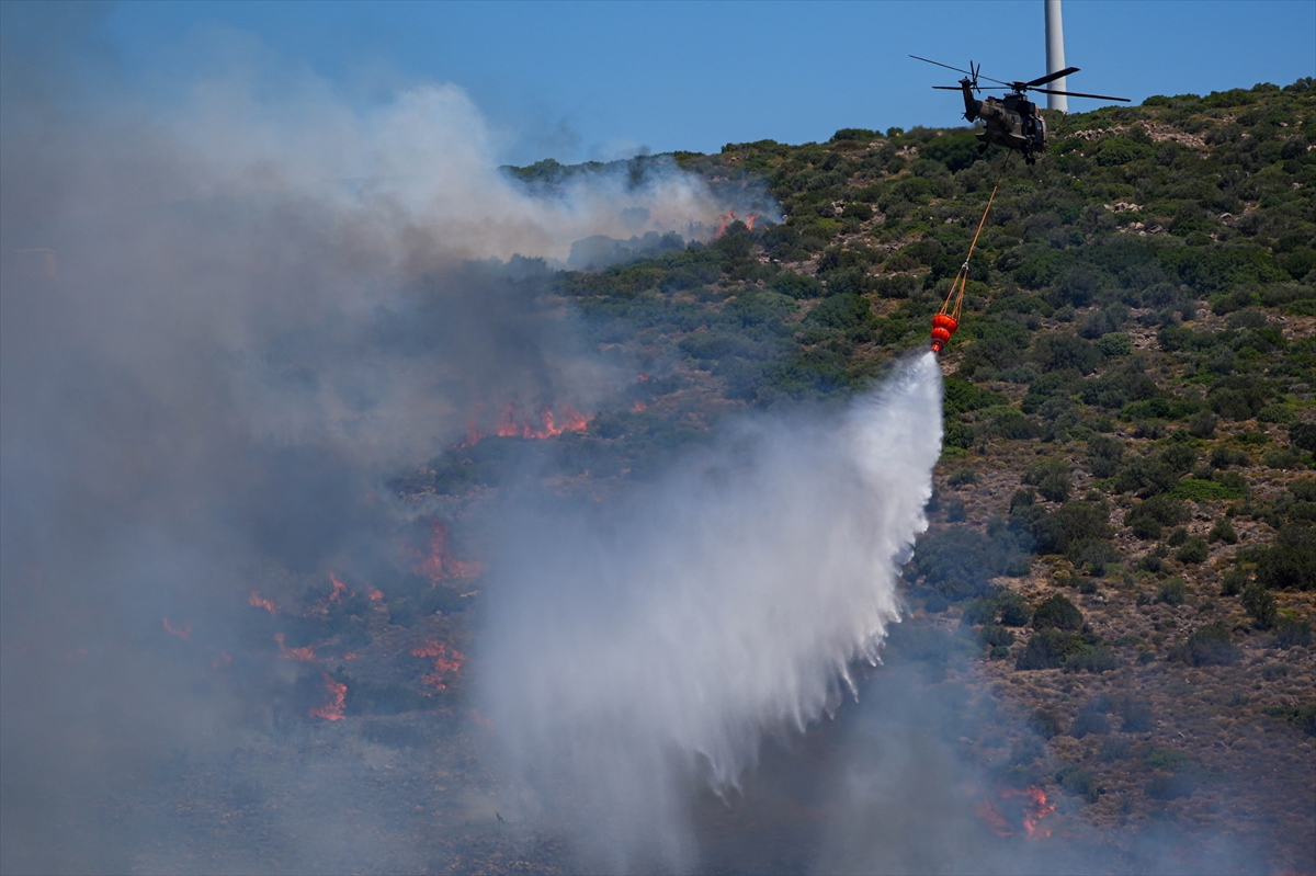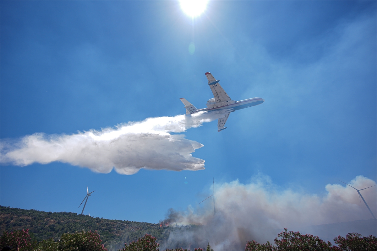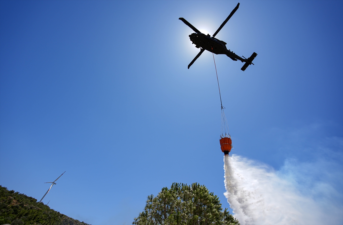 İzmir'in Çeşme ilçesinde çıkan orman yangınına ekiplerin havadan ve karadan müdahalesi devam ediyor.