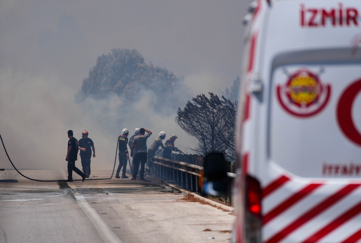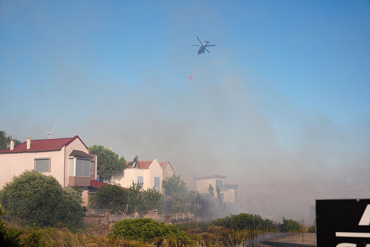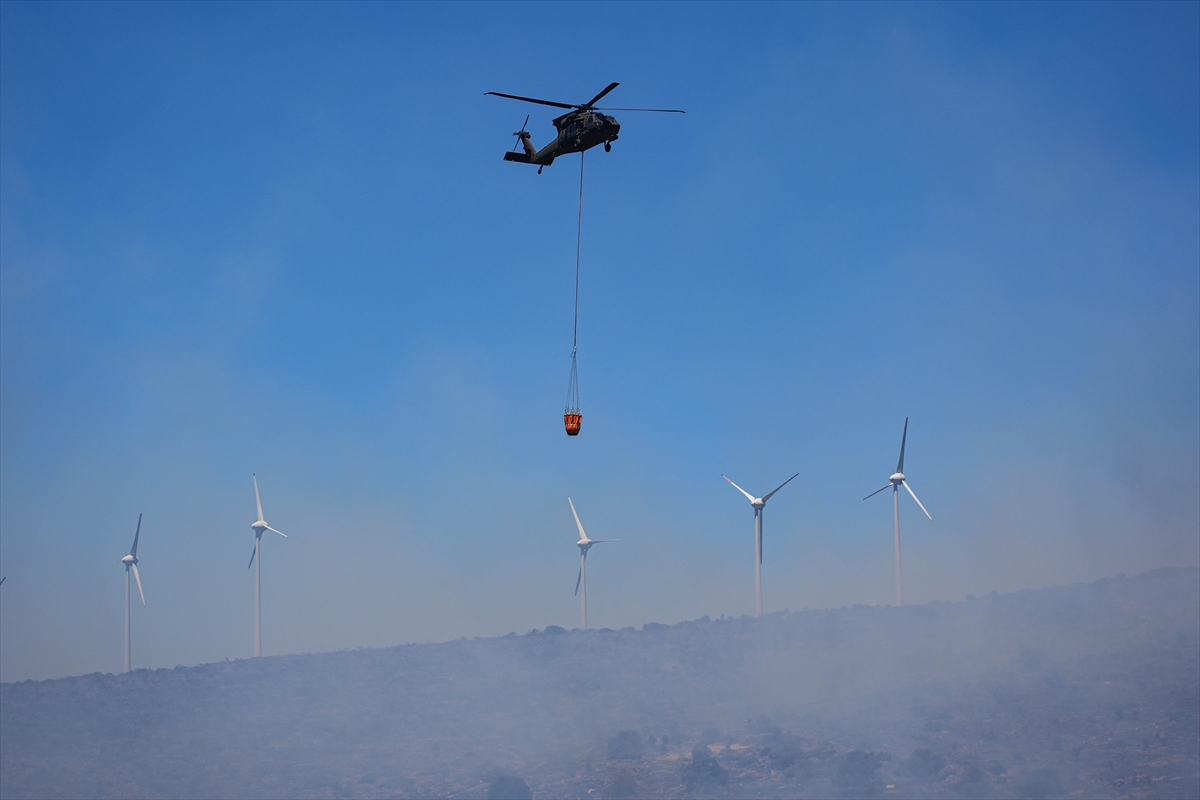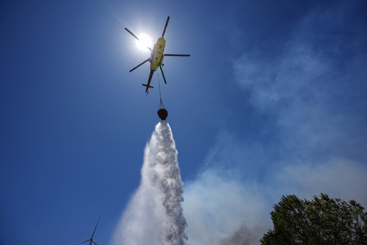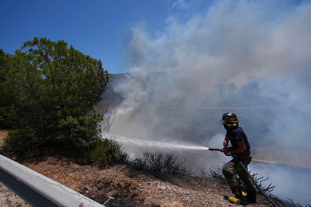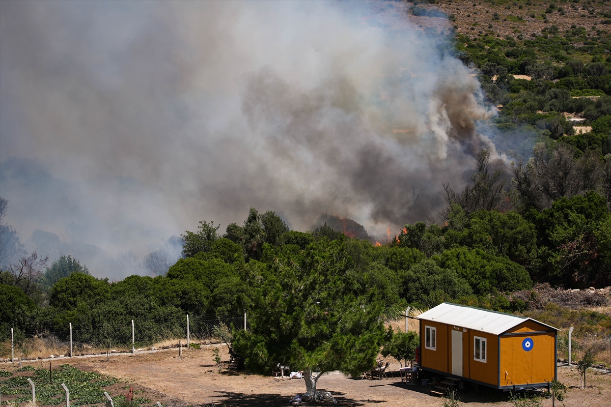 İzmir'in Çeşme ilçesinde çıkan orman yangınına ekiplerin havadan ve karadan müdahalesi devam ediyor.
