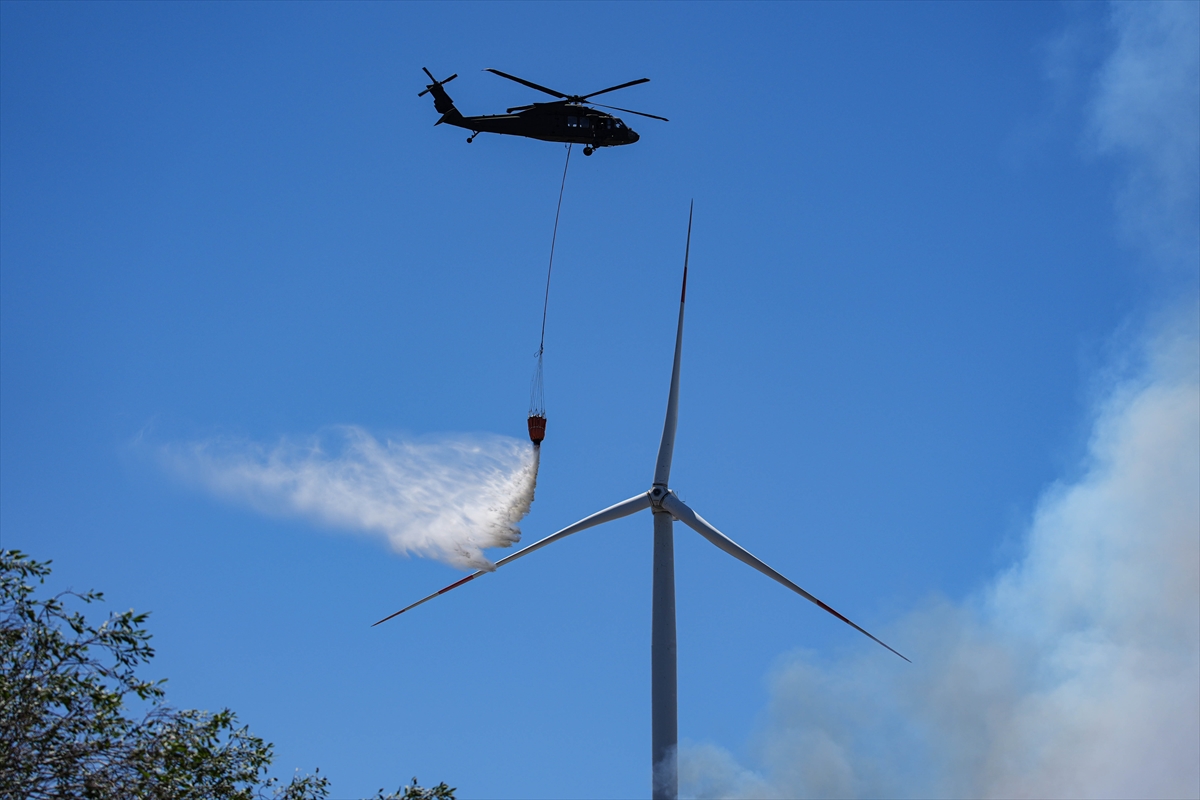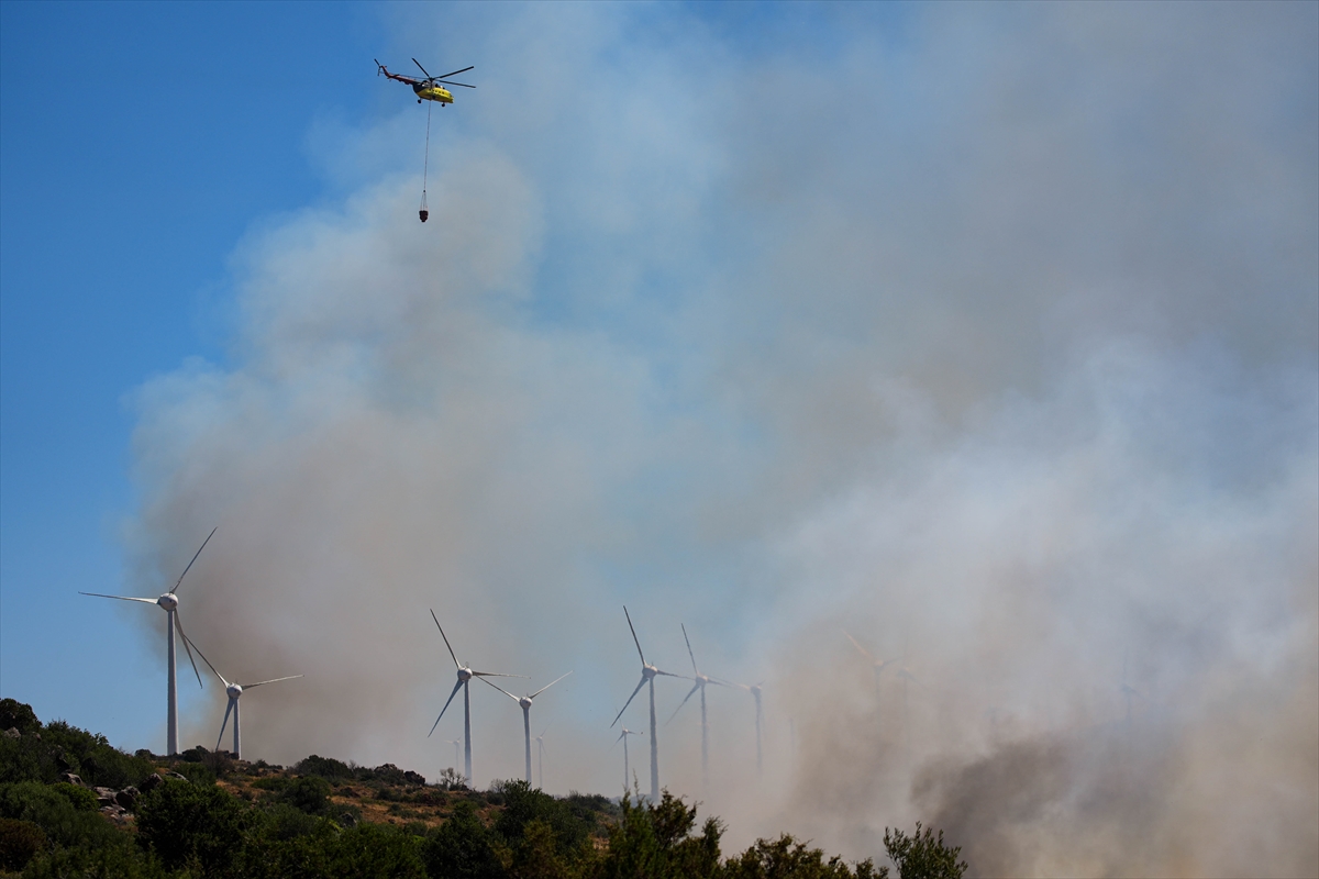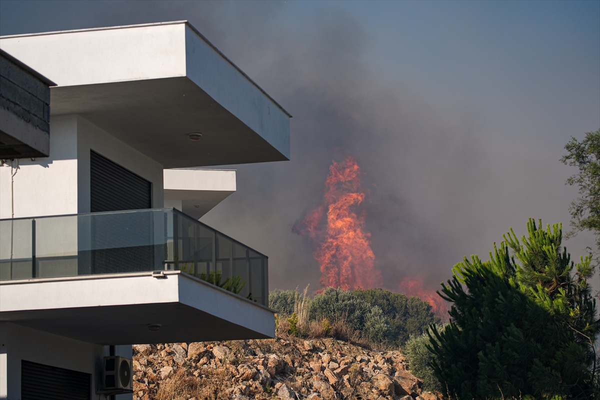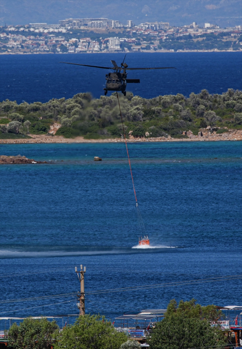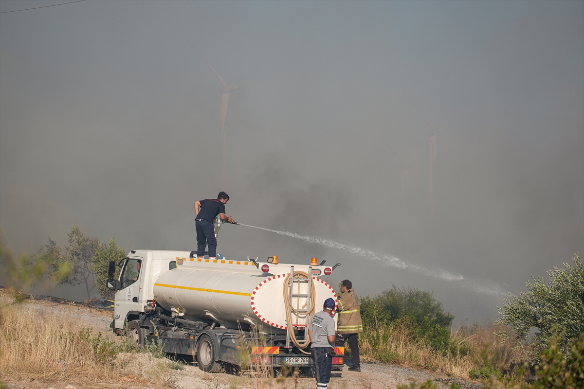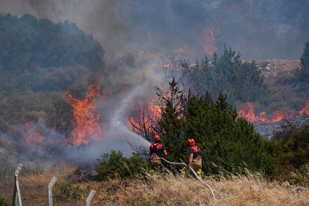 İzmir'in Çeşme ilçesinde çıkan orman yangınına ekiplerin havadan ve karadan müdahalesi devam ediyor.