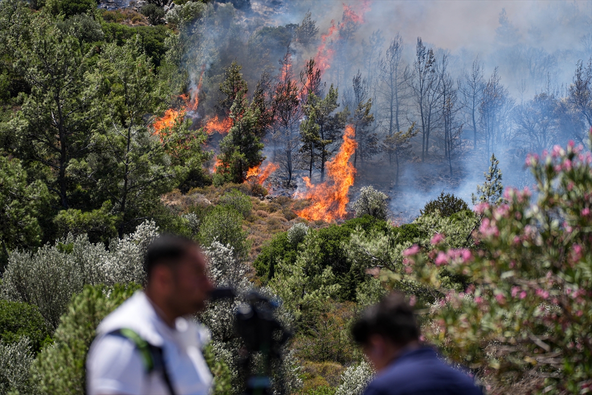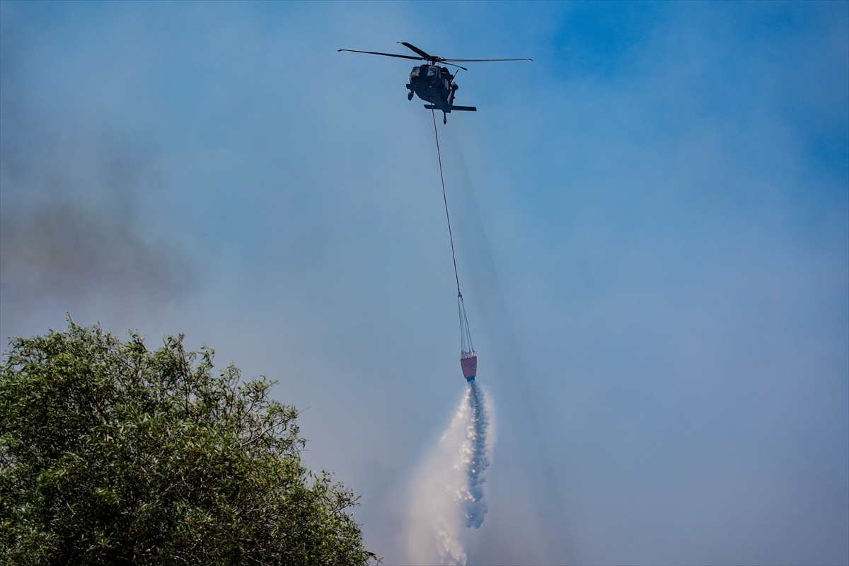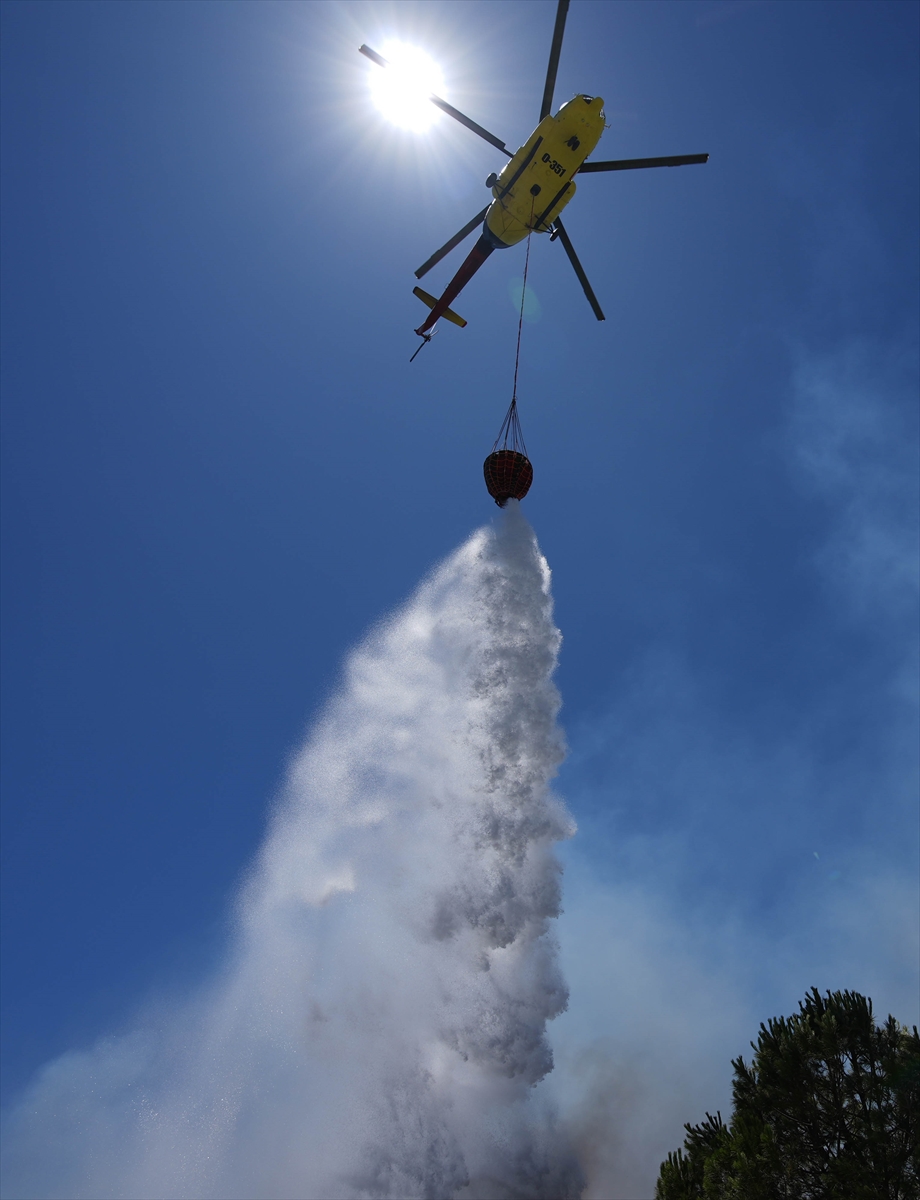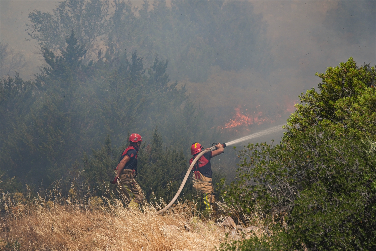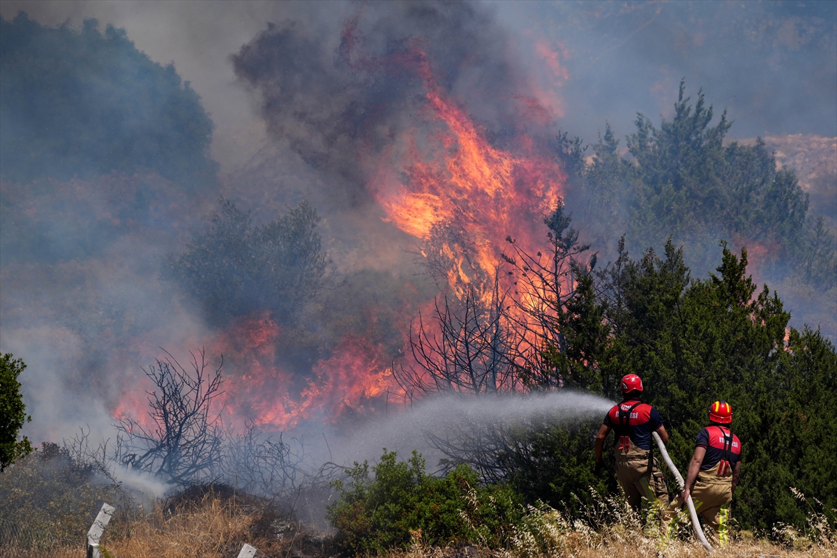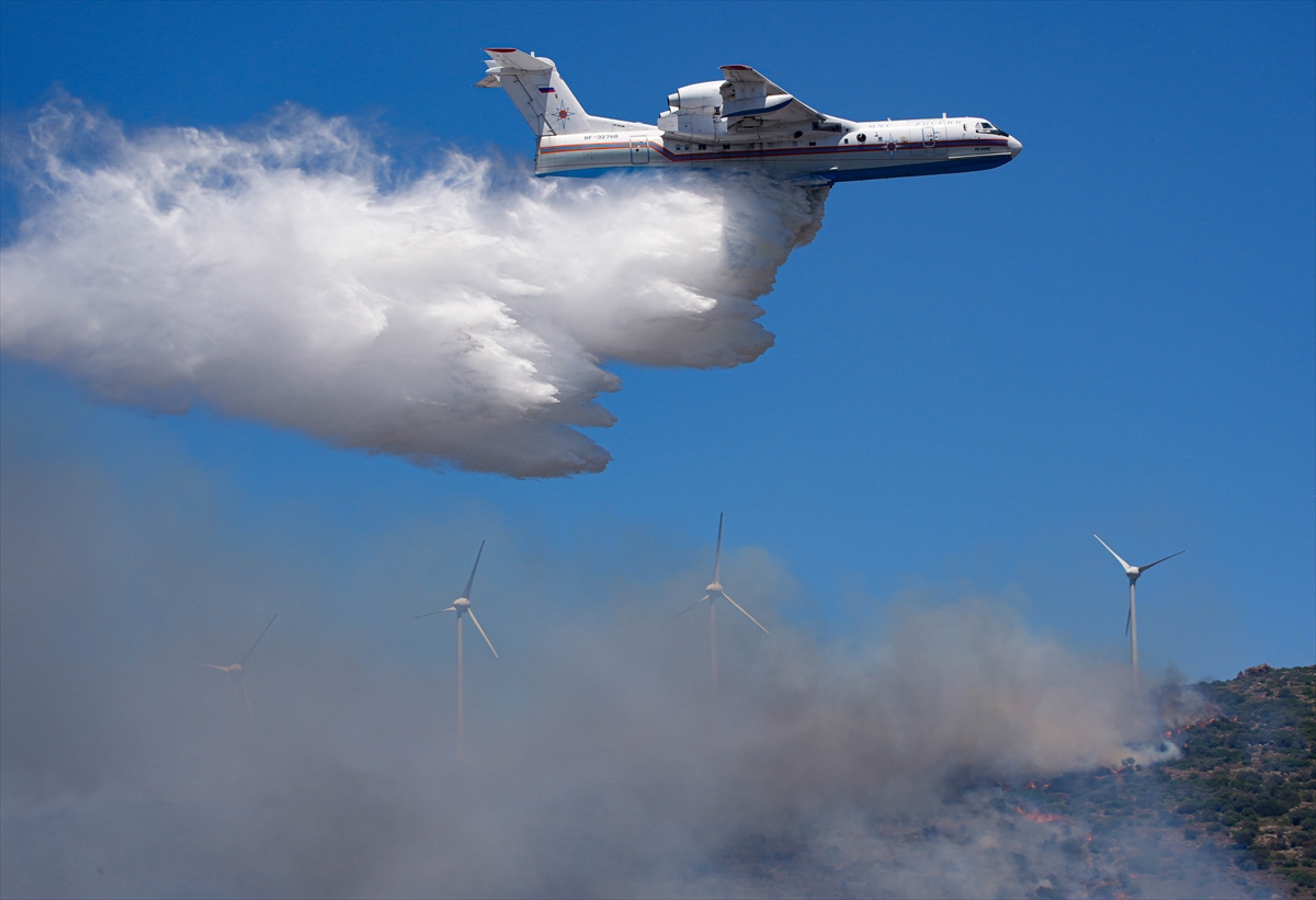 İzmir'in Çeşme ilçesinde çıkan orman yangınına ekiplerin havadan ve karadan müdahalesi devam ediyor.