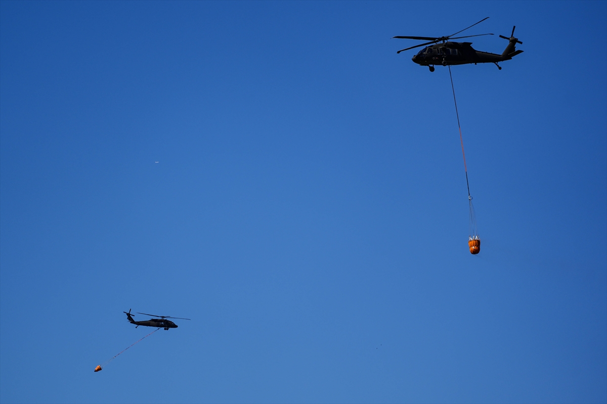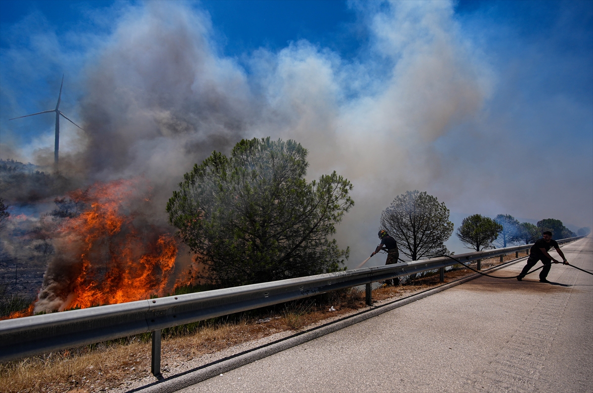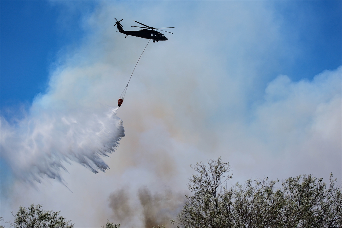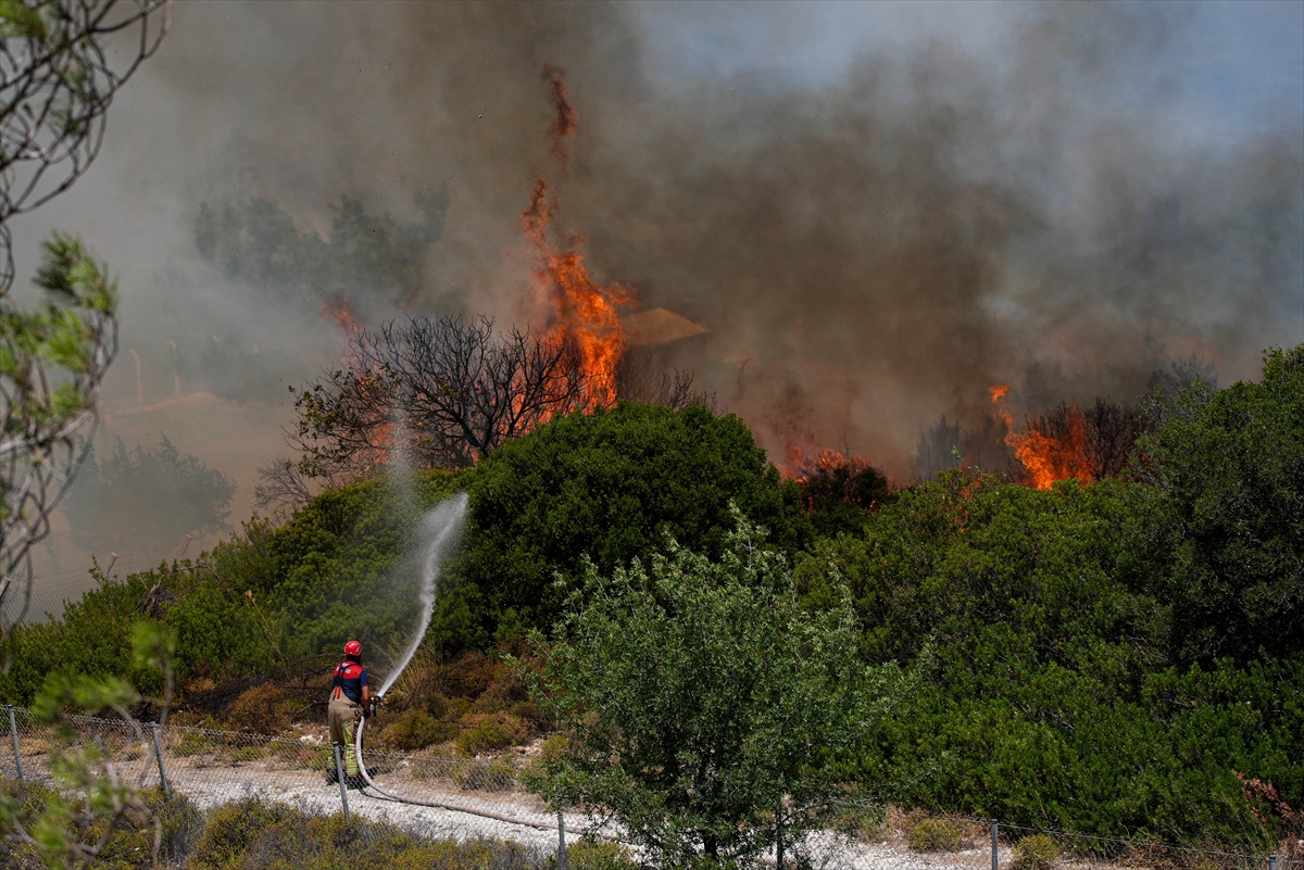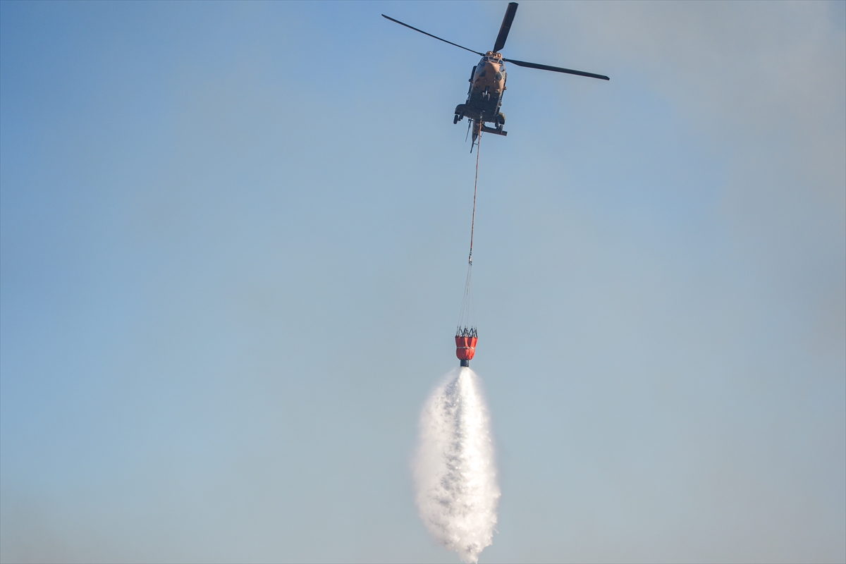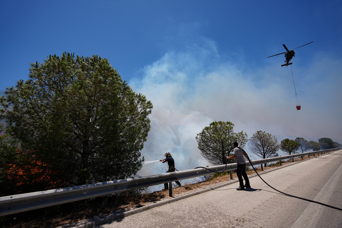 İzmir'in Çeşme ilçesinde çıkan orman yangınına ekiplerin havadan ve karadan müdahalesi devam ediyor.