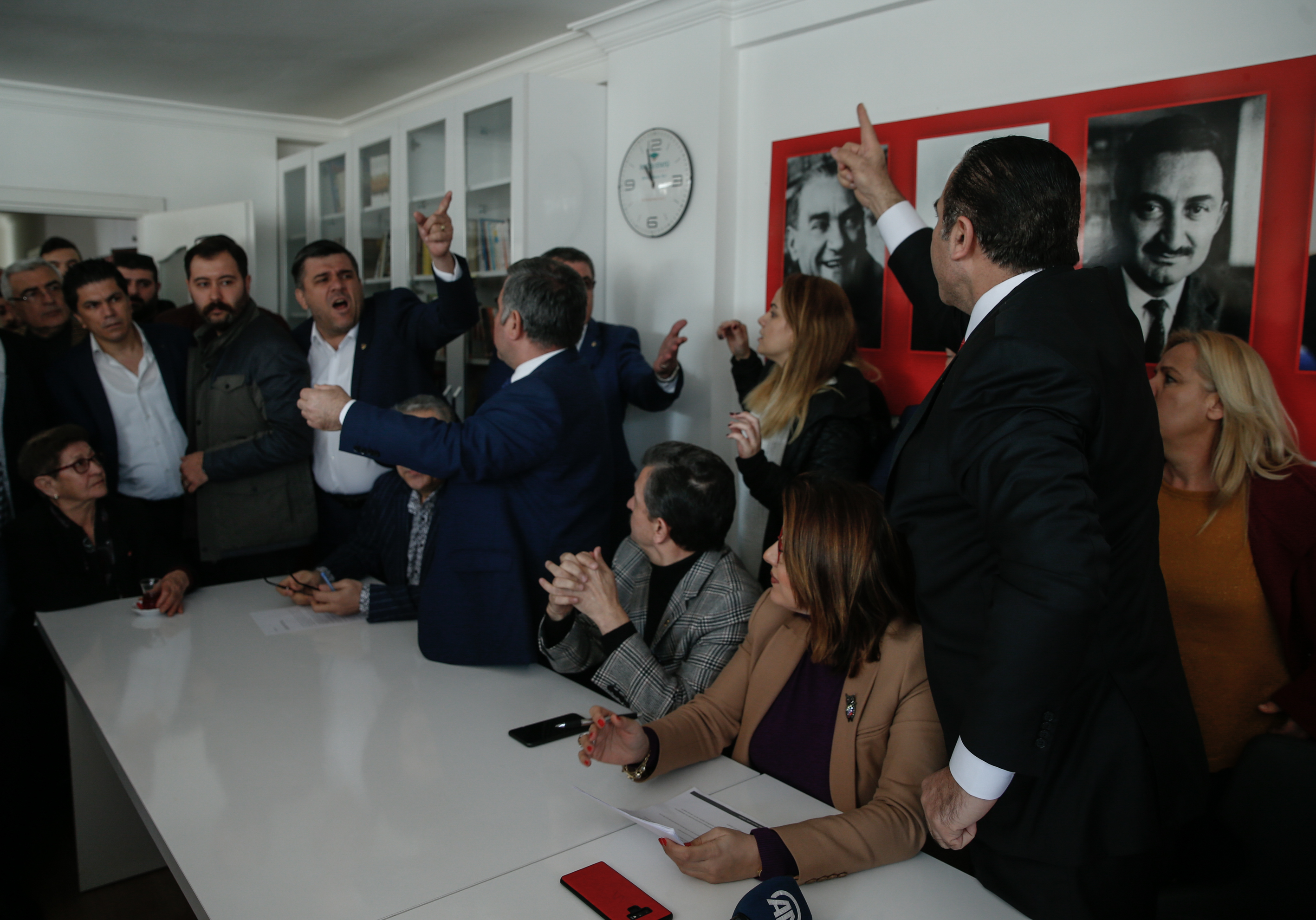 Yaşanan gerginlik nedeniyle basın açıklaması yarıda kalırken, parti yönetiminden kişilerin araya girmesi sonrası taraflar yatıştırıldı.