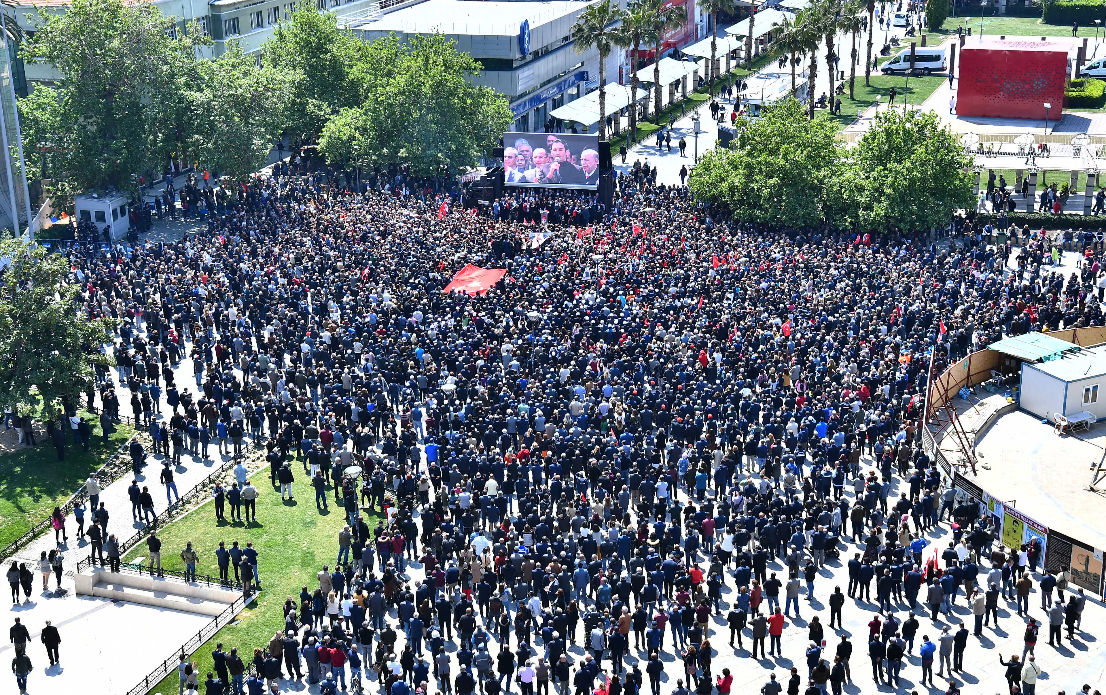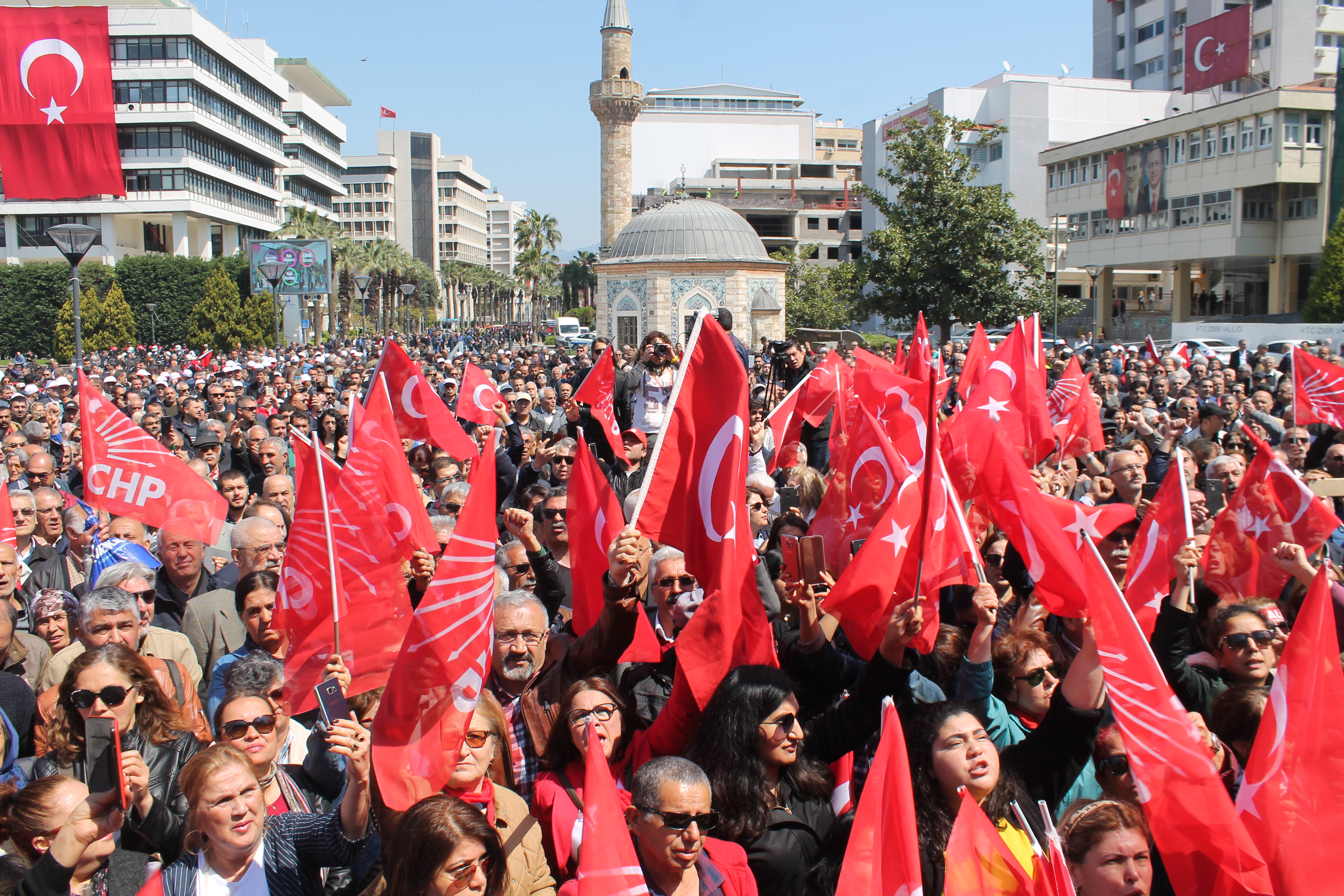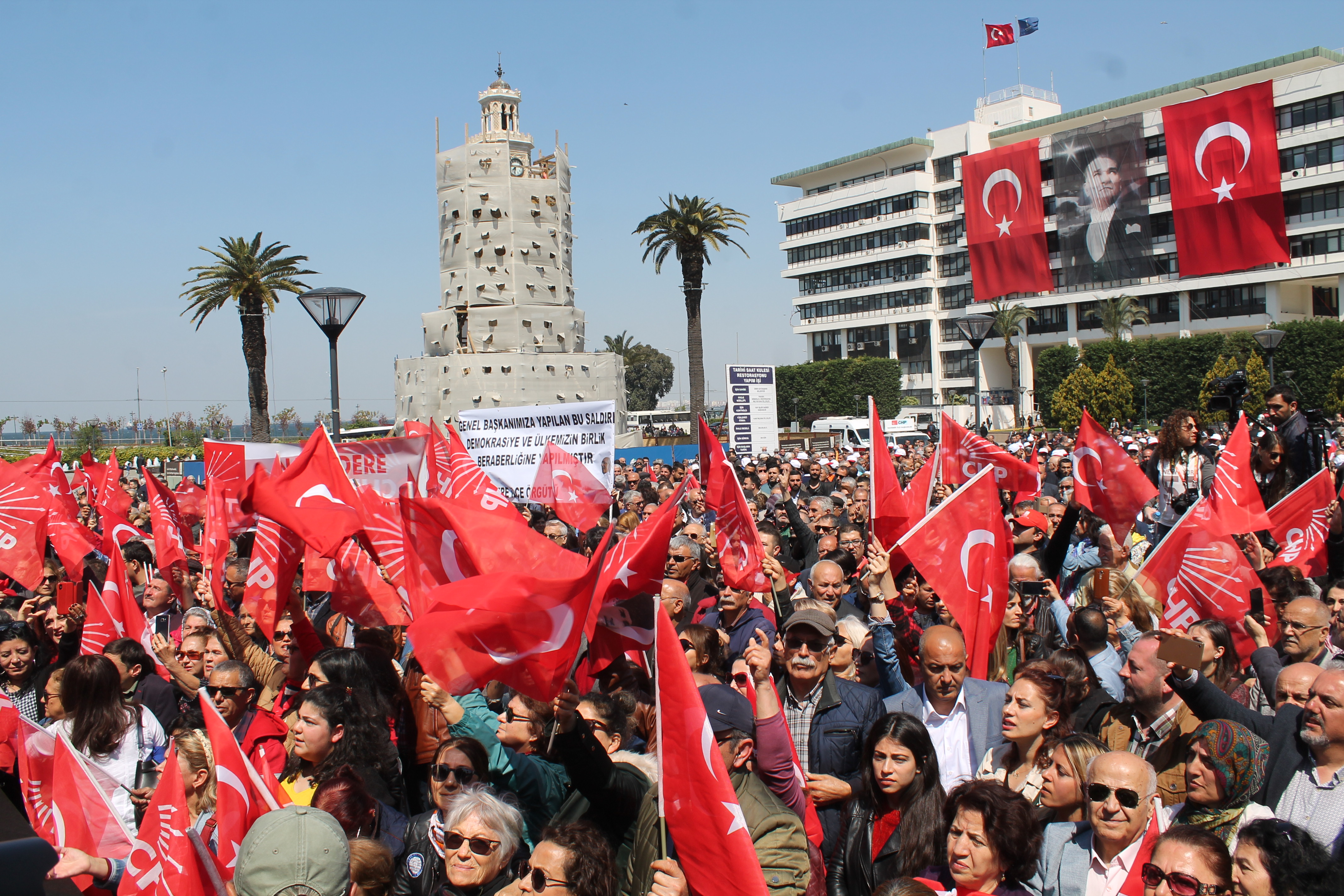 İzmir’de de CHP İl Örgütü de Konak Meydanı’nda binlerce kişiyle bir araya geldi. Programda konuşan İzmir İl Başkanı Deniz Yücel önemli mesajlar verdi. Tepki eylemine İzmir Büyükşehir Belediye Başkanı Tunç Soyer, İYİ Parti İzmir İl Başkanı Hüsmen Kırkpınar, milletvekilleri, ilçe belediye başkanları, kadın ve gençlik kolları, STK, sendika temsilcileri ve çok sayıda İzmirli vatandaş katıldı.