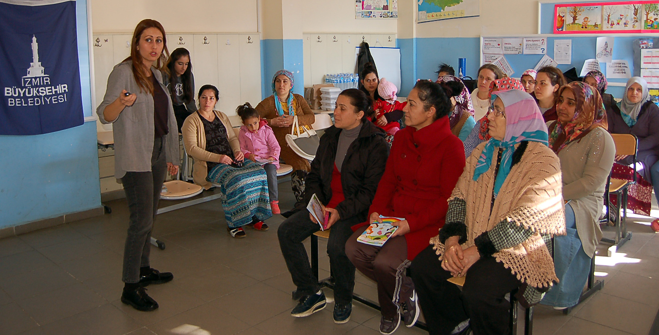 Bu bölgede çocukları okul öncesi ile tanıştıran İzmir Büyükşehir Belediyesi, ailelere yönelik eğitimlere de başladı.