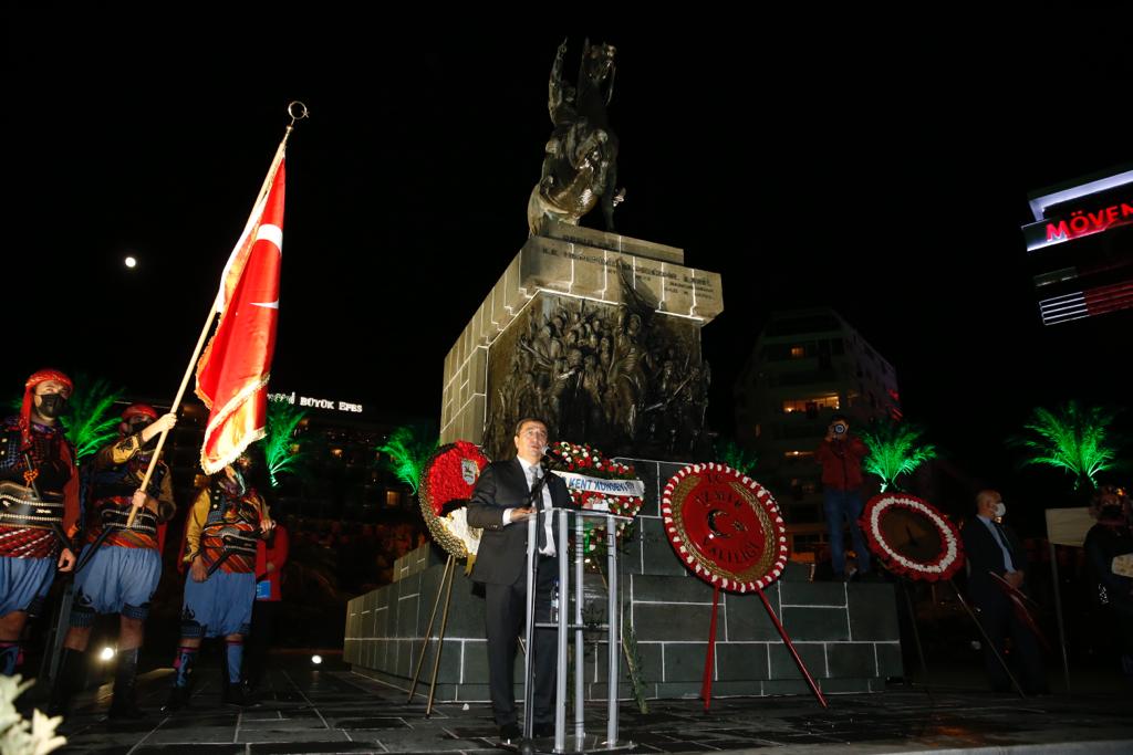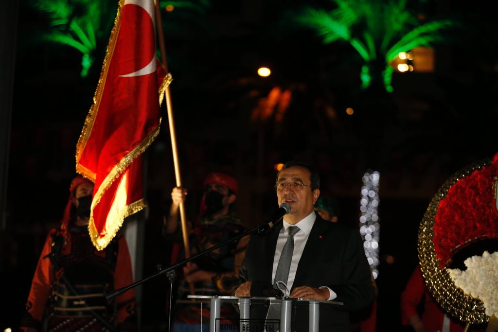 Gösterinin ardından bir konuşma gerçekleştiren Konak Belediye Başkanı Abdül Batur, “Sizleri Cumhuriyetin ve Atatürk sevgimizin coşkusuyla selamlıyorum” sözleri ile başladığı konuşmasında Milli bayramların önemini bir kez daha hatırlattı.
