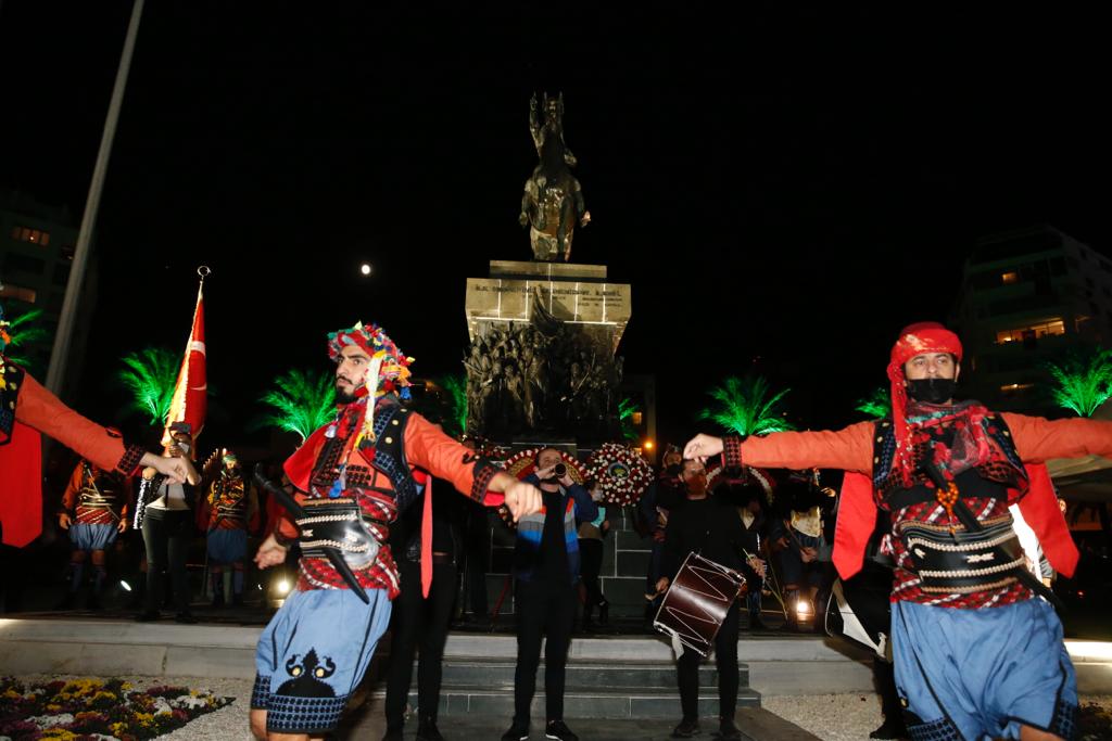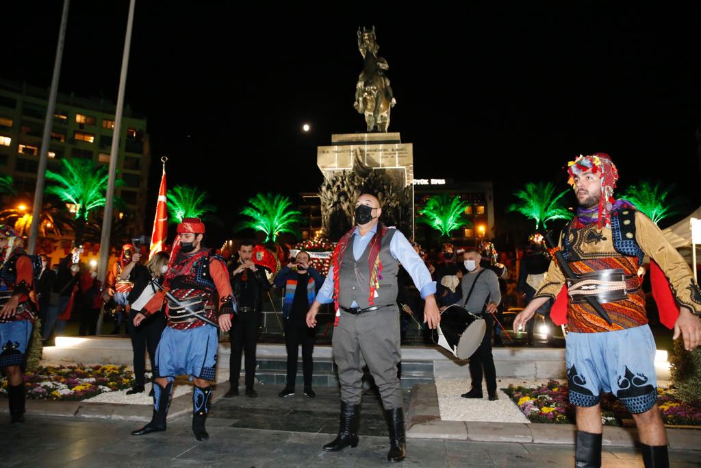 Konak’ta 29 Ekim Cumhuriyet Bayramı Konak Belediyesi’nin pandemi kurallarına uygun olarak düzenlediği kortej ve zeybek gösterisi ile kutlandı.